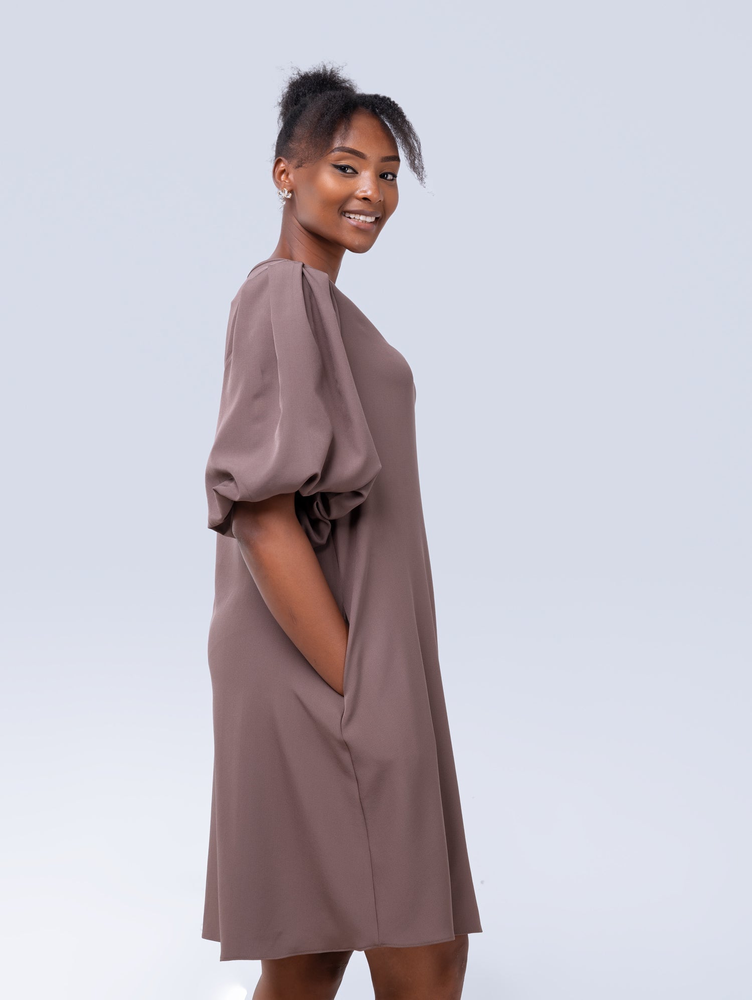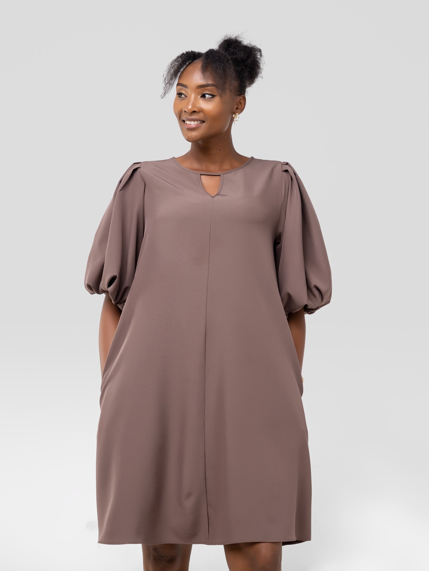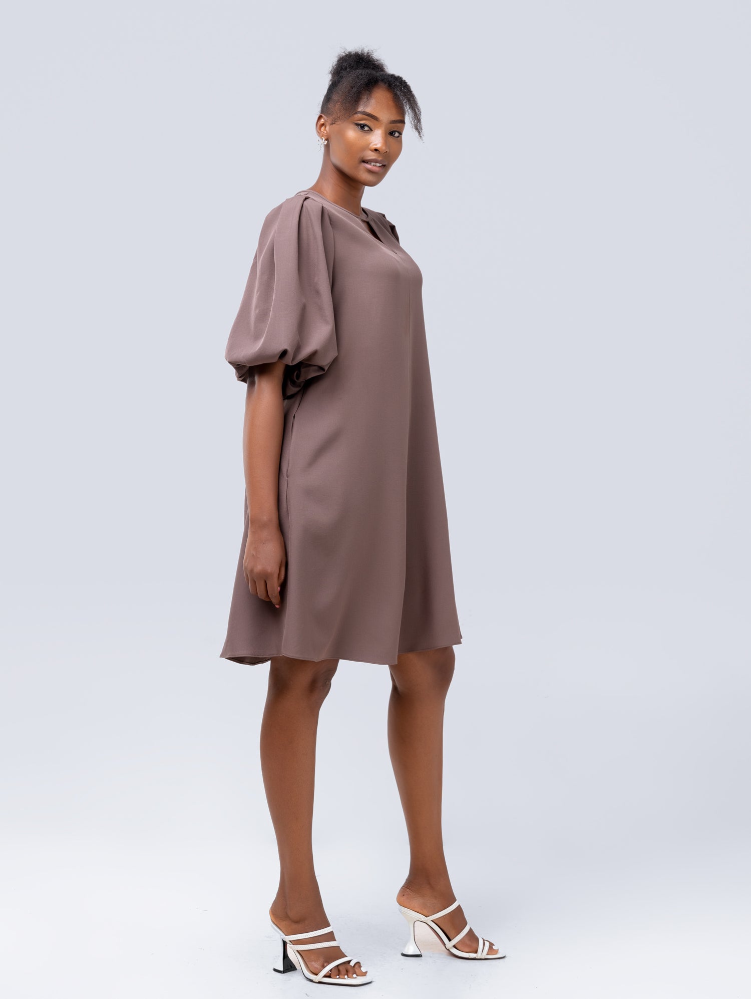 Vivo Esna Puff Sleeve Tent Dress - Dark Taupe