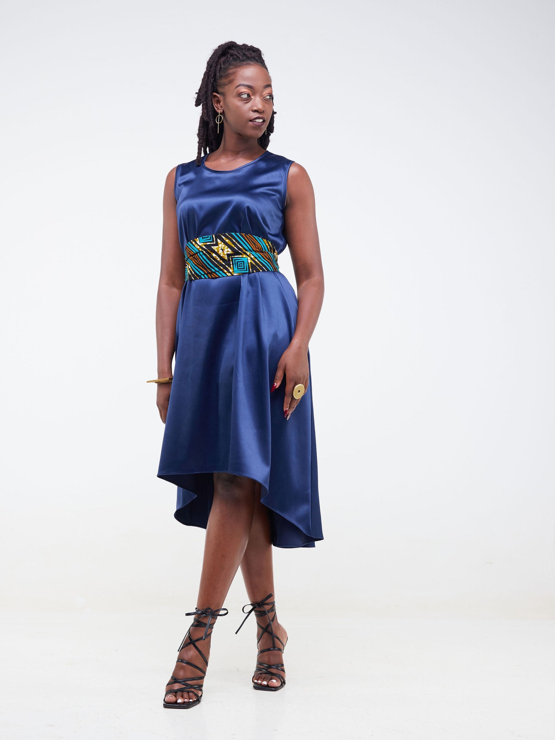 Vivo Fara Sleeveless High Low Dress - Navy Blue