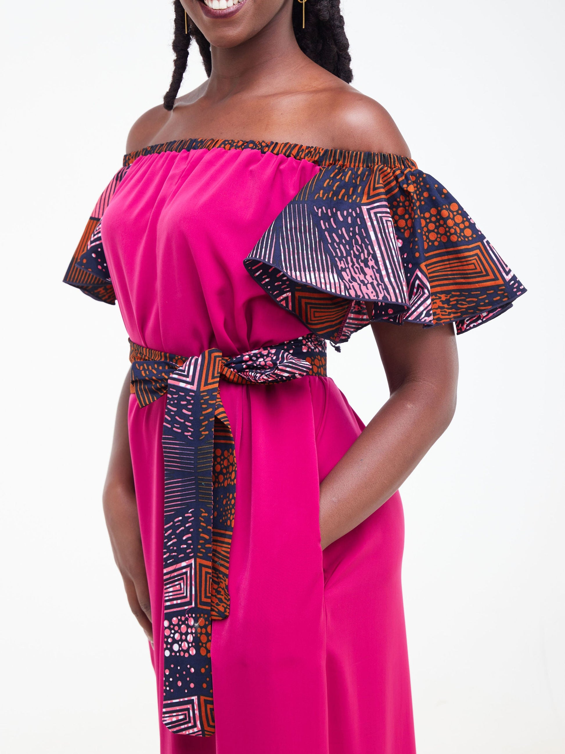 Vivo Fara Off Shoulder Flounce Sleeve Jumpsuit - Pink