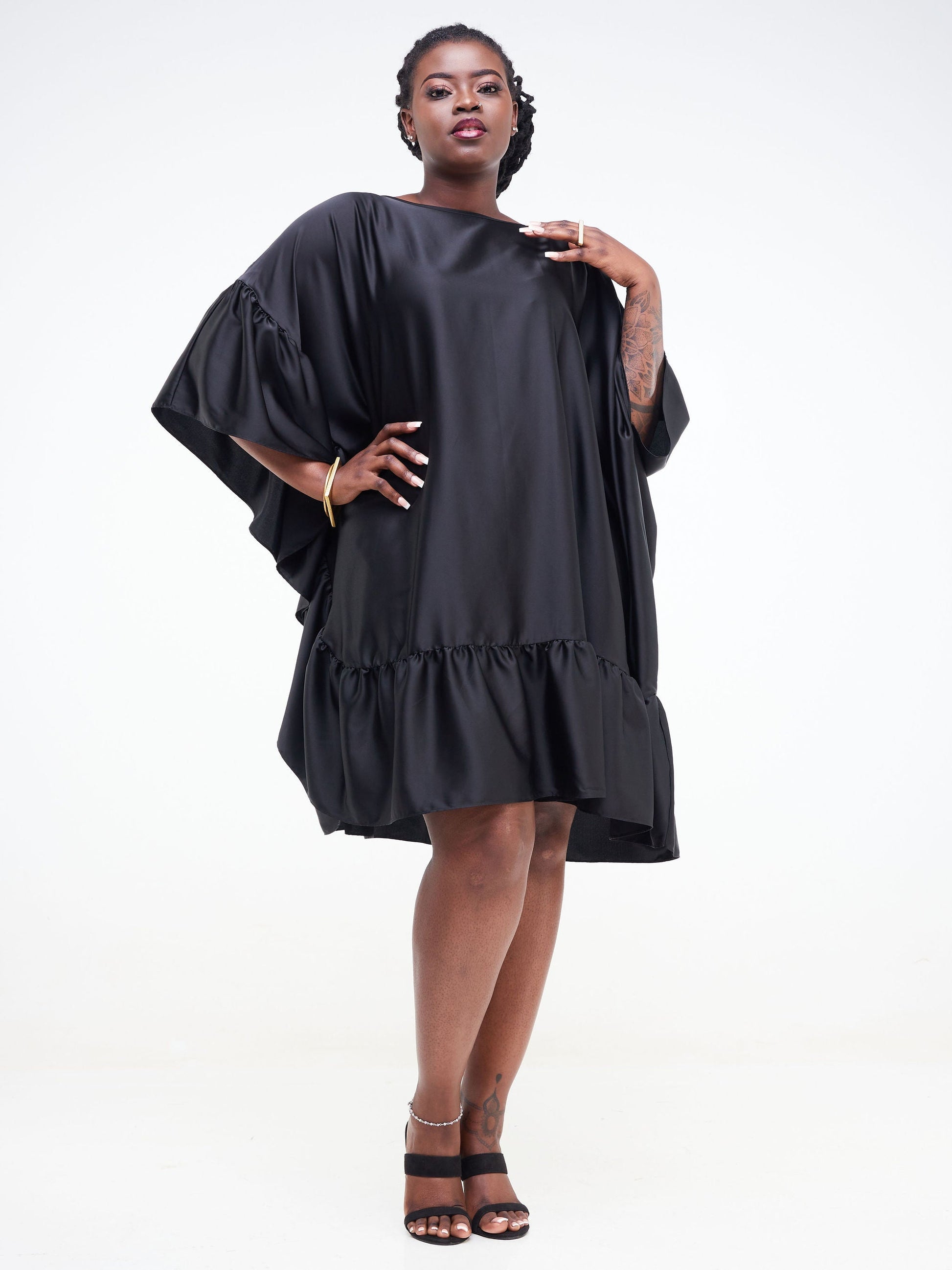 Vivo Fara Side Flounce Knee Length Kaftan - Black