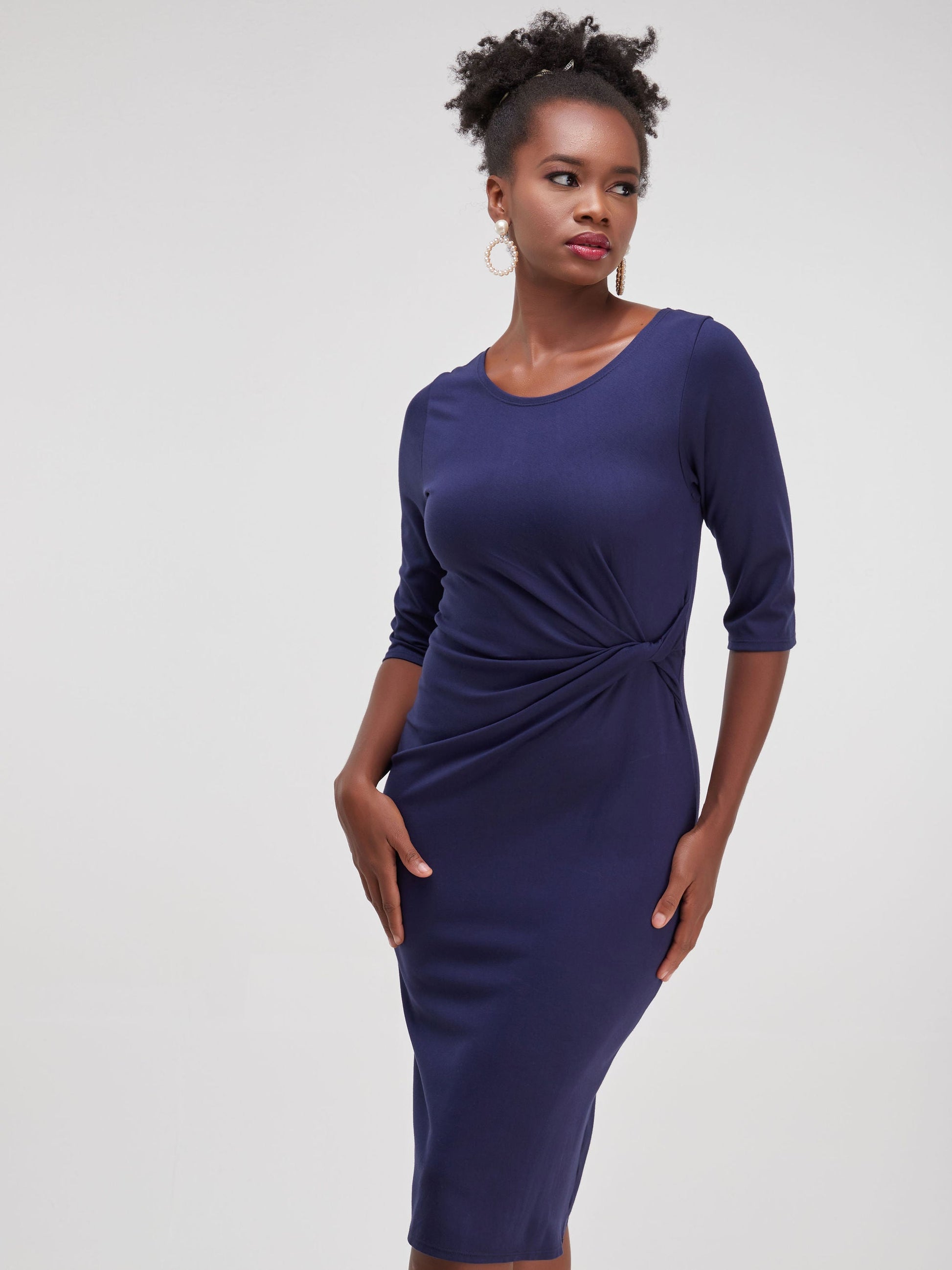 Vivo Faraji 3/4 Sleeve Side Twist Dress - Navy Blue