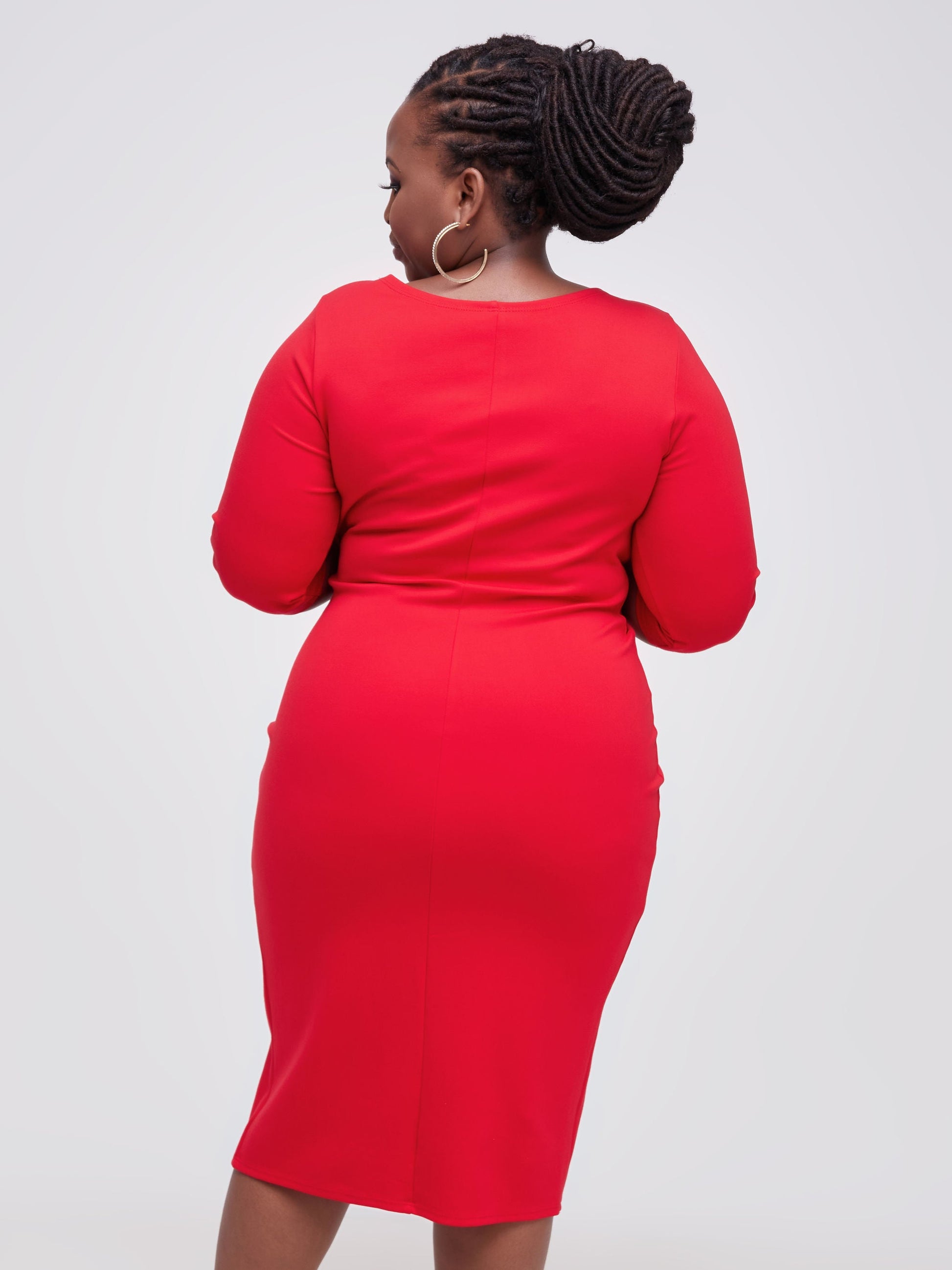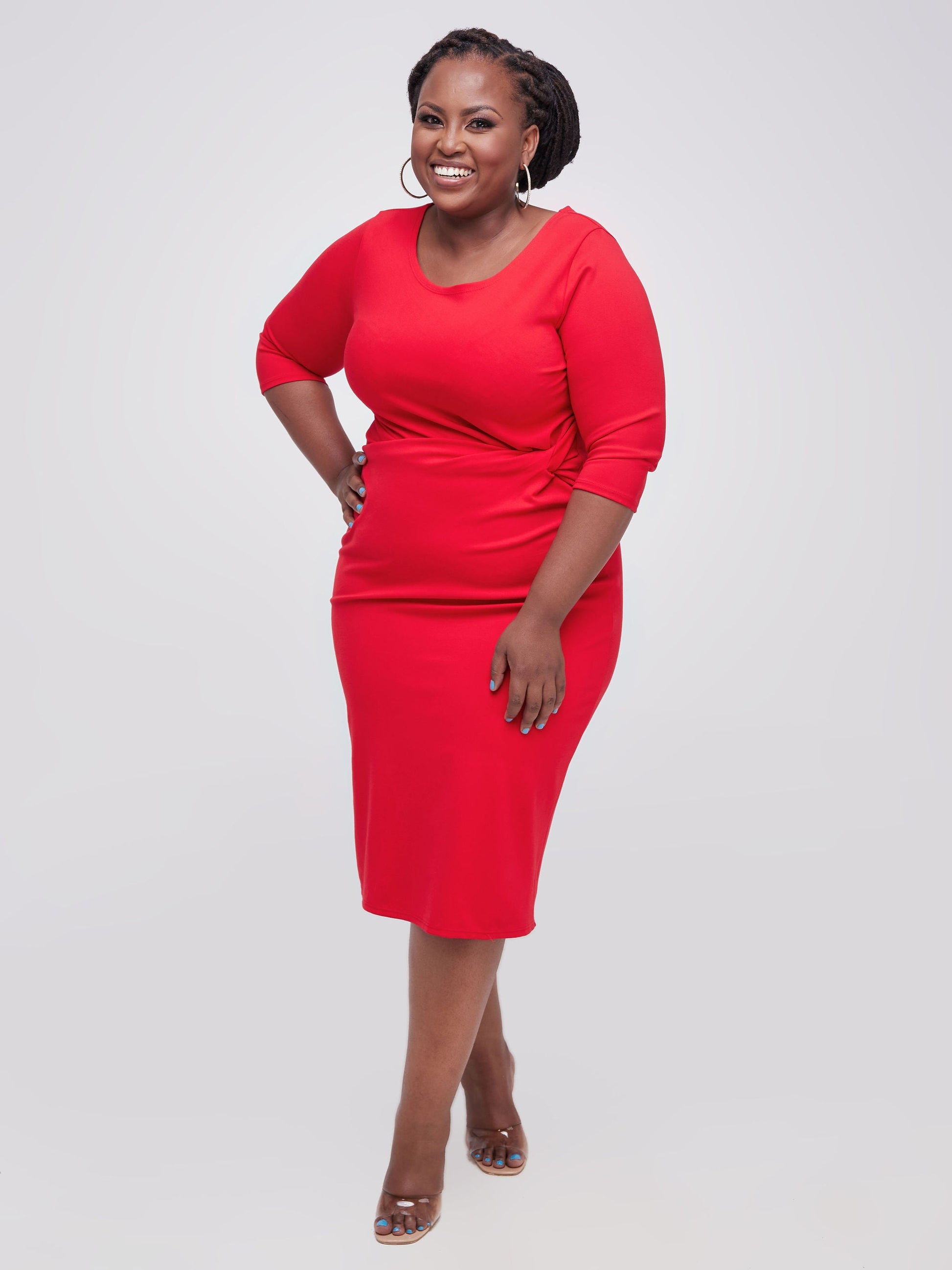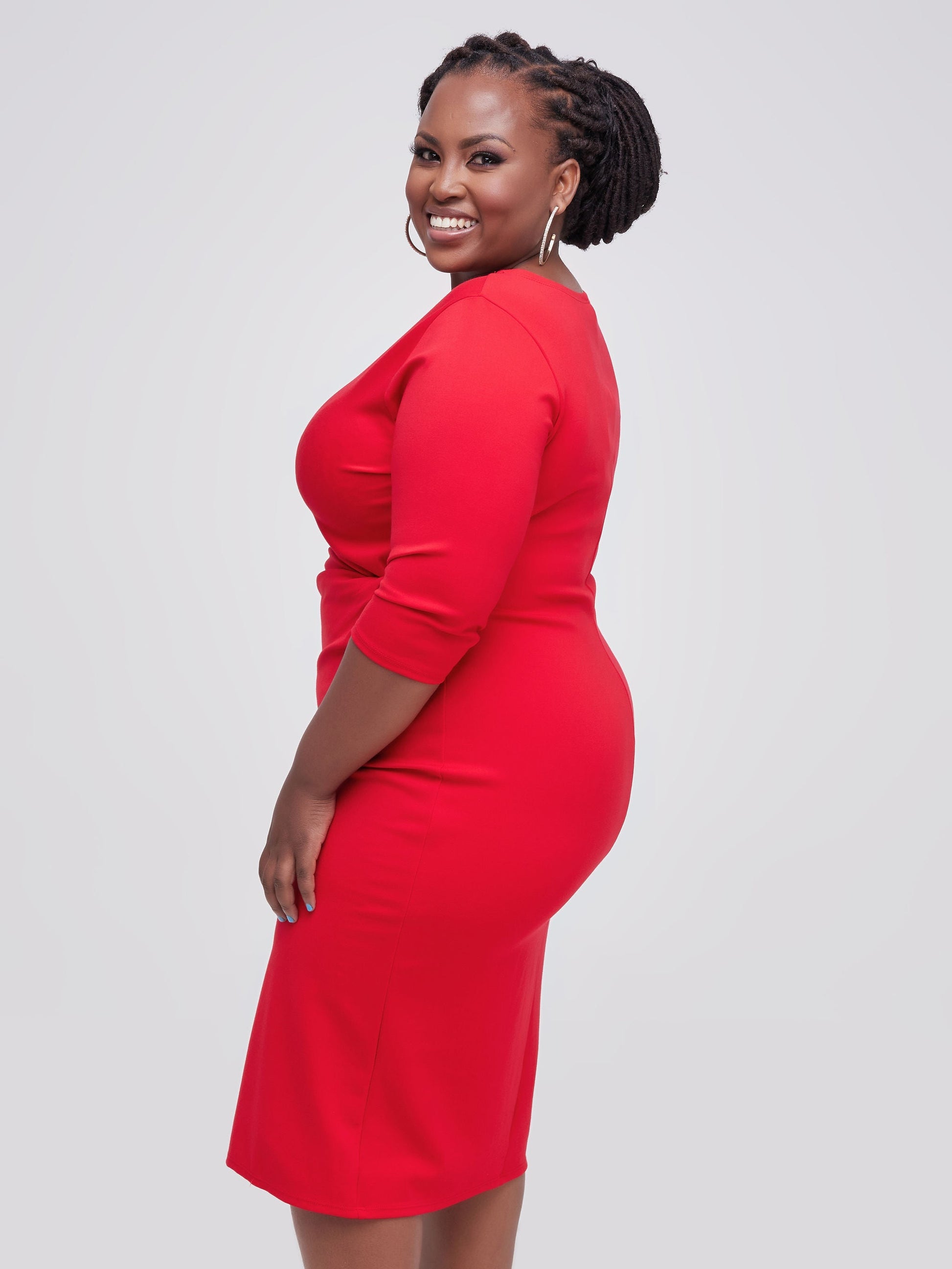 Vivo Faraji 3/4 Sleeve Side Twist Dress - Red