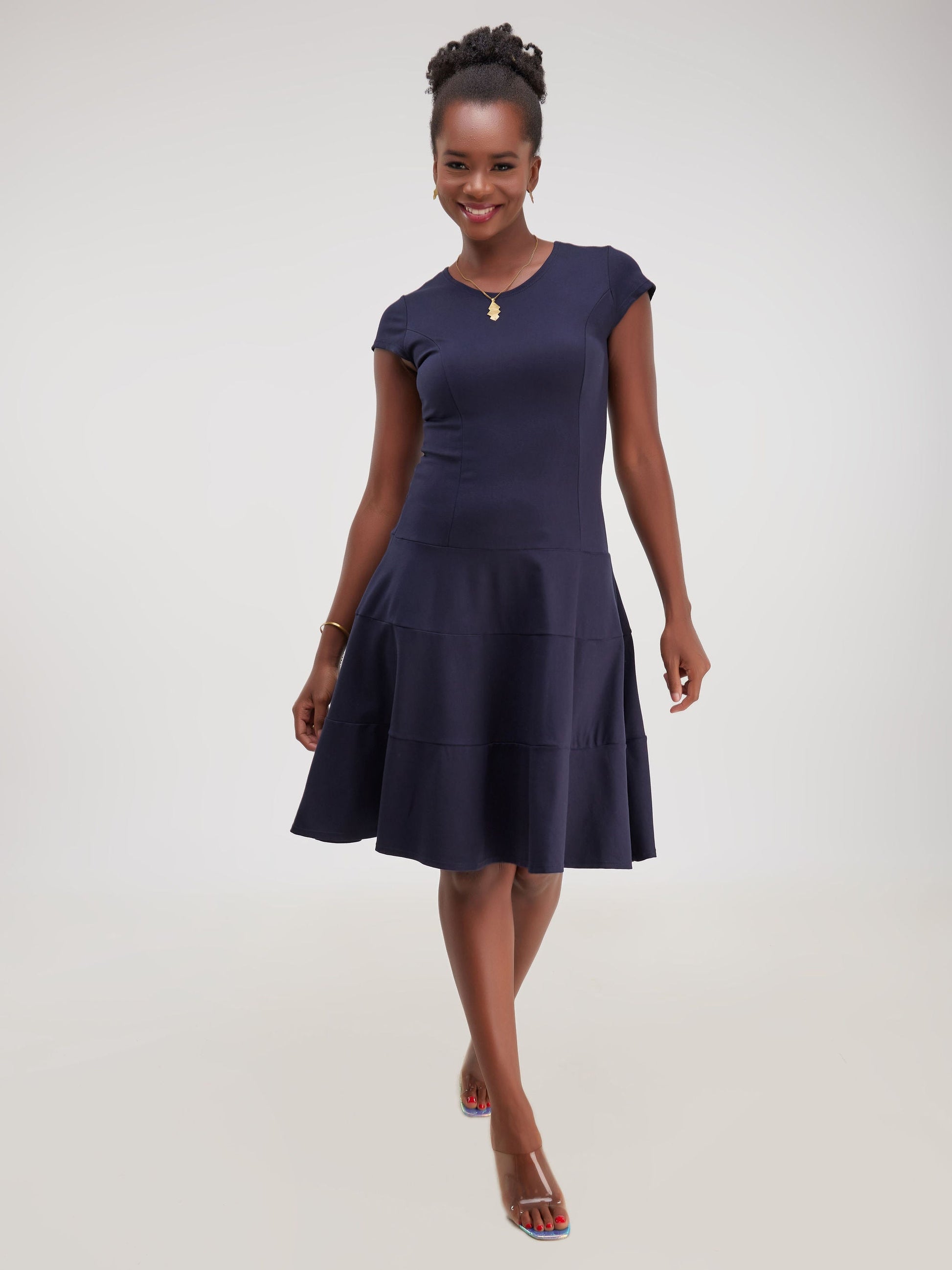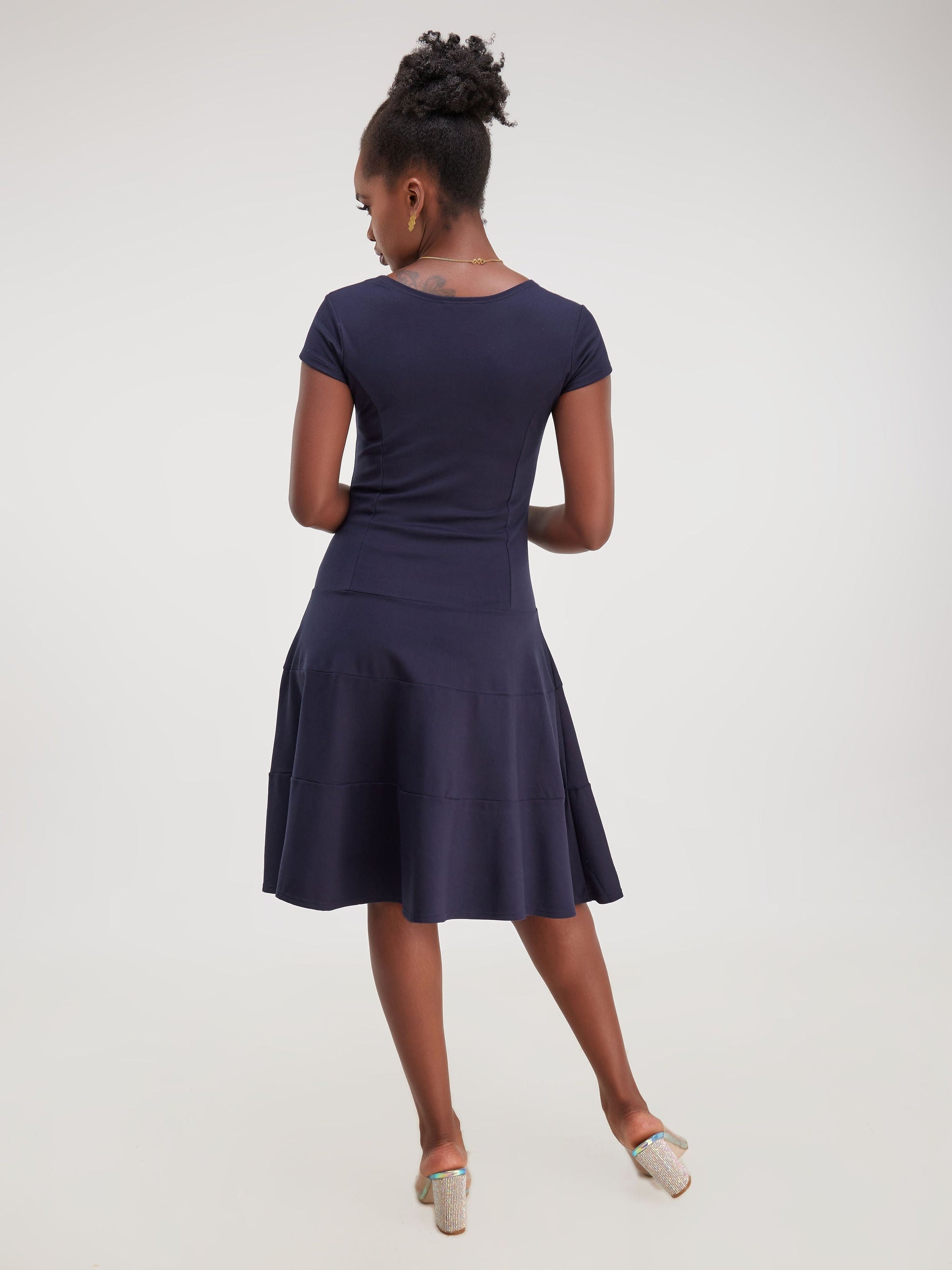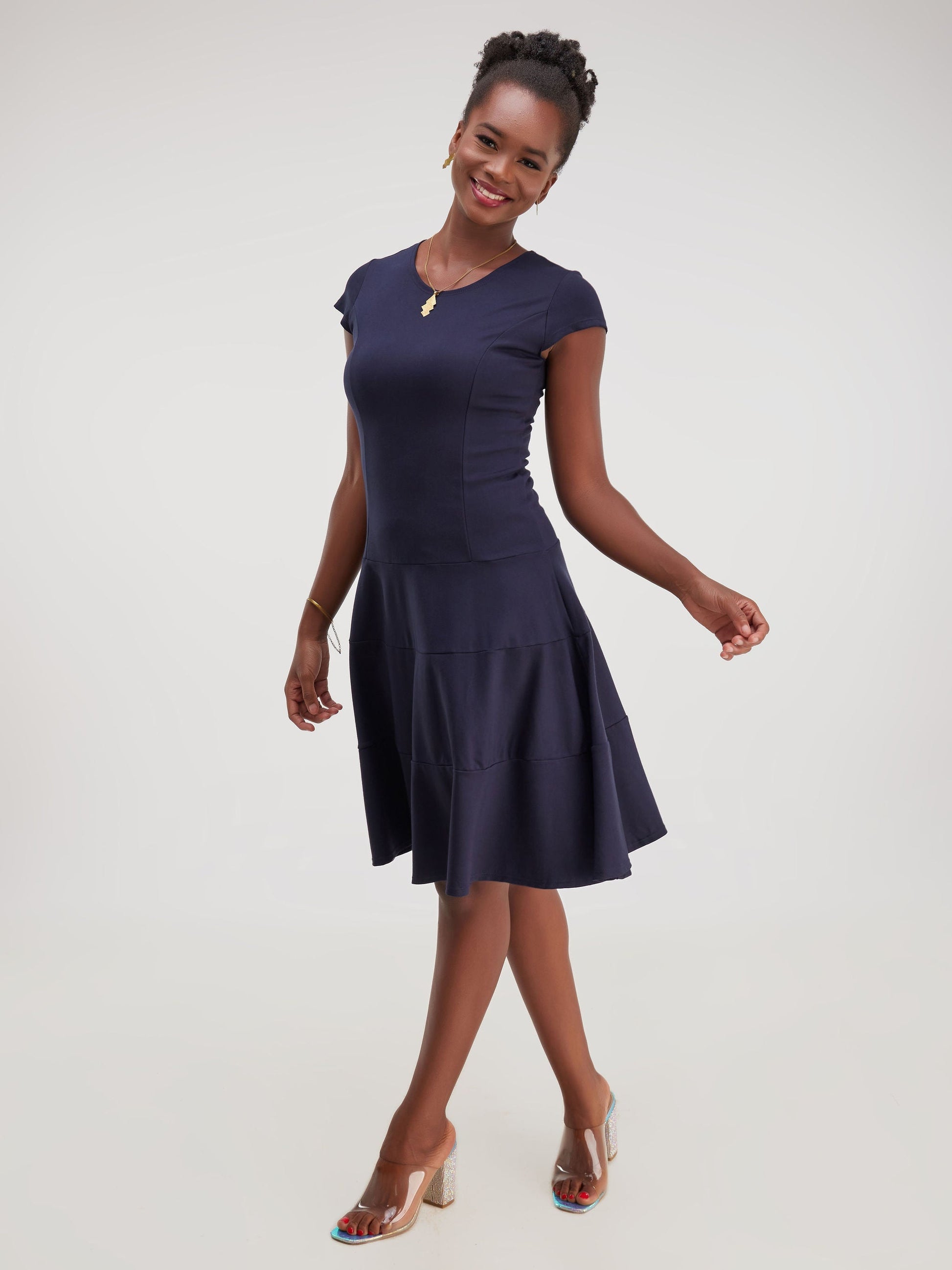 Vivo Faraji Cap Sleeved Three Tiered A-Line Dress - Navy Blue