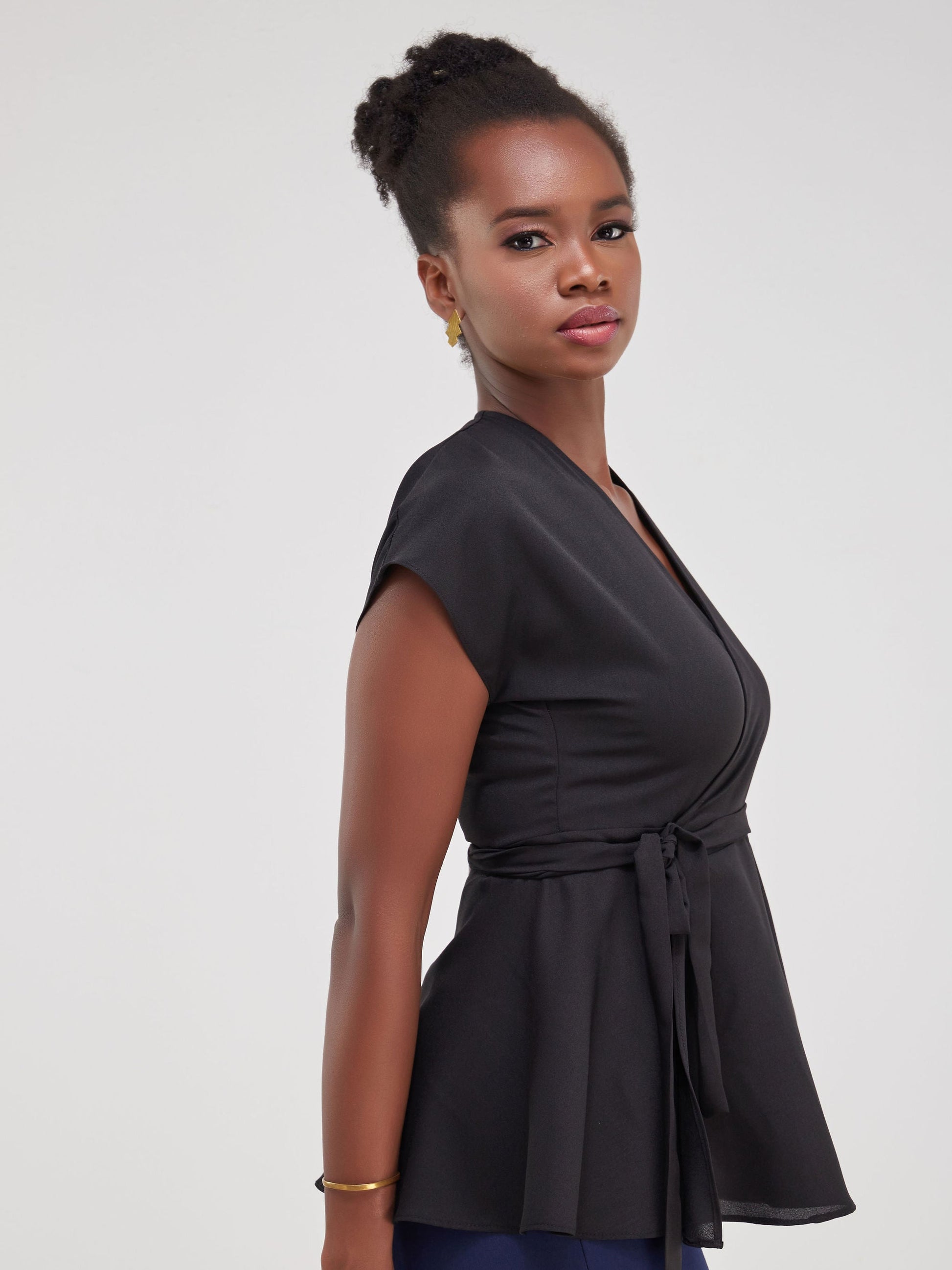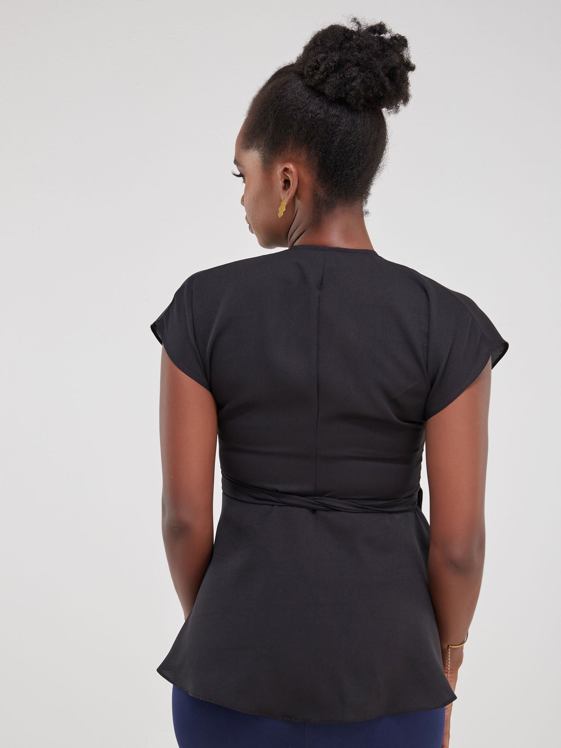 Vivo Faraji Drop Shoulder Wrap Top - Black