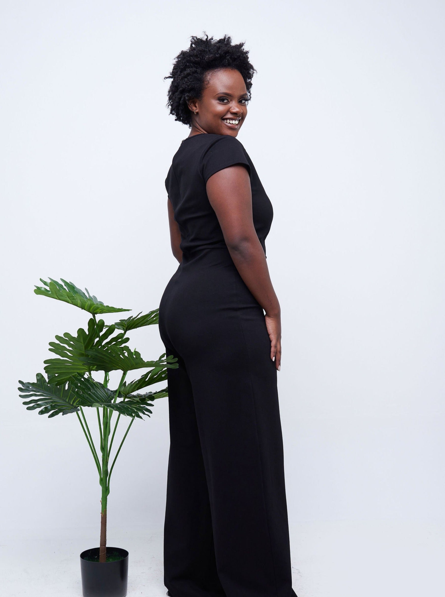 Vivo Fasi Diamond Cut Cap Sleeve Jumpsuit- Black