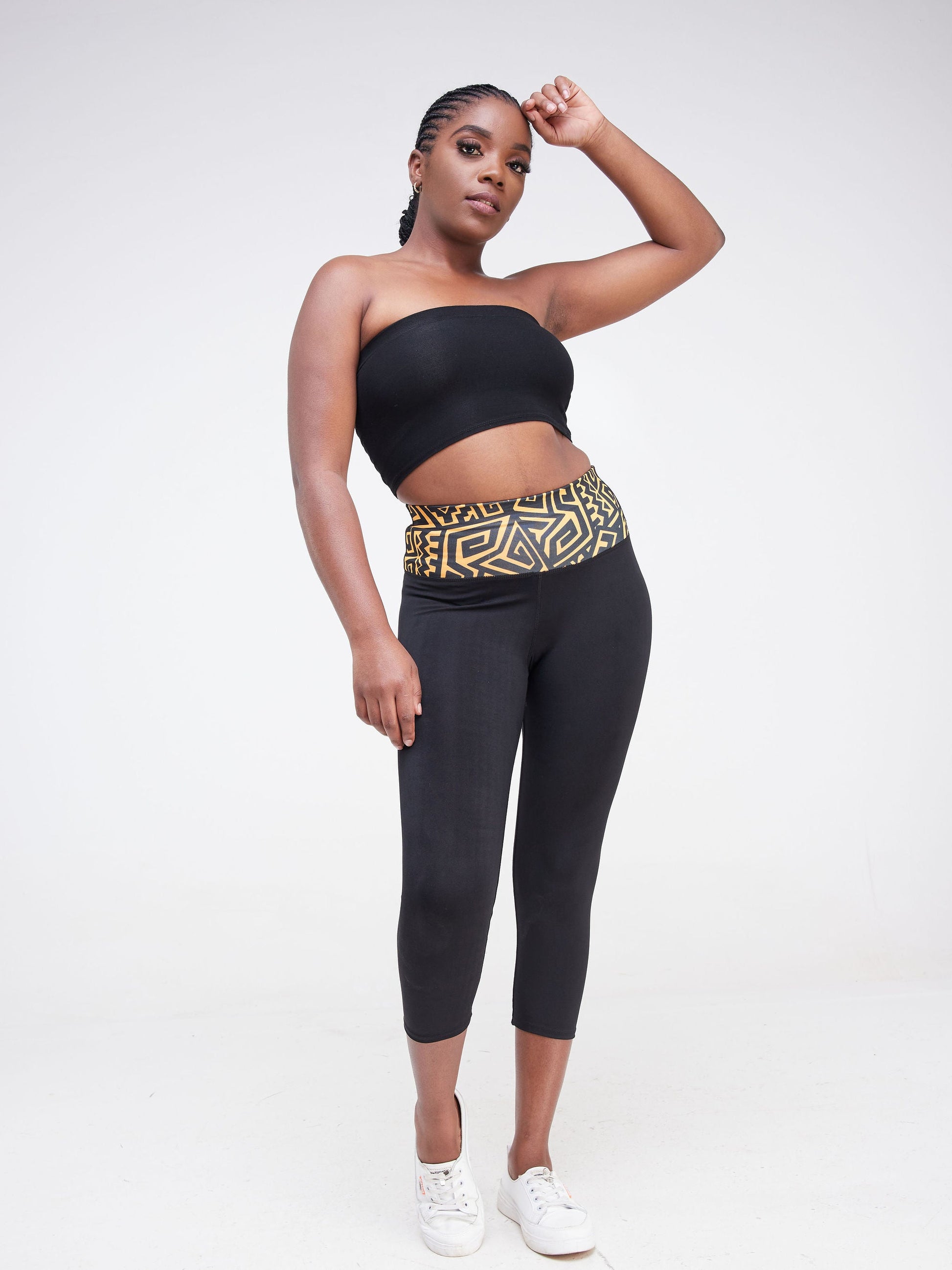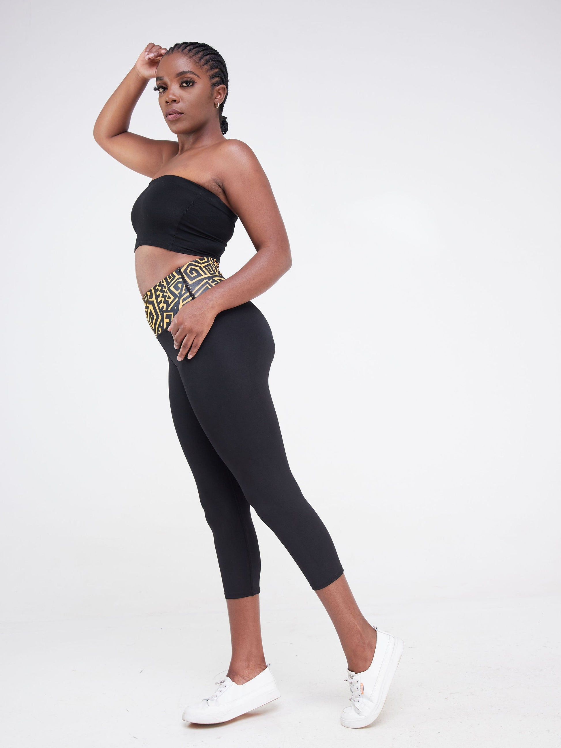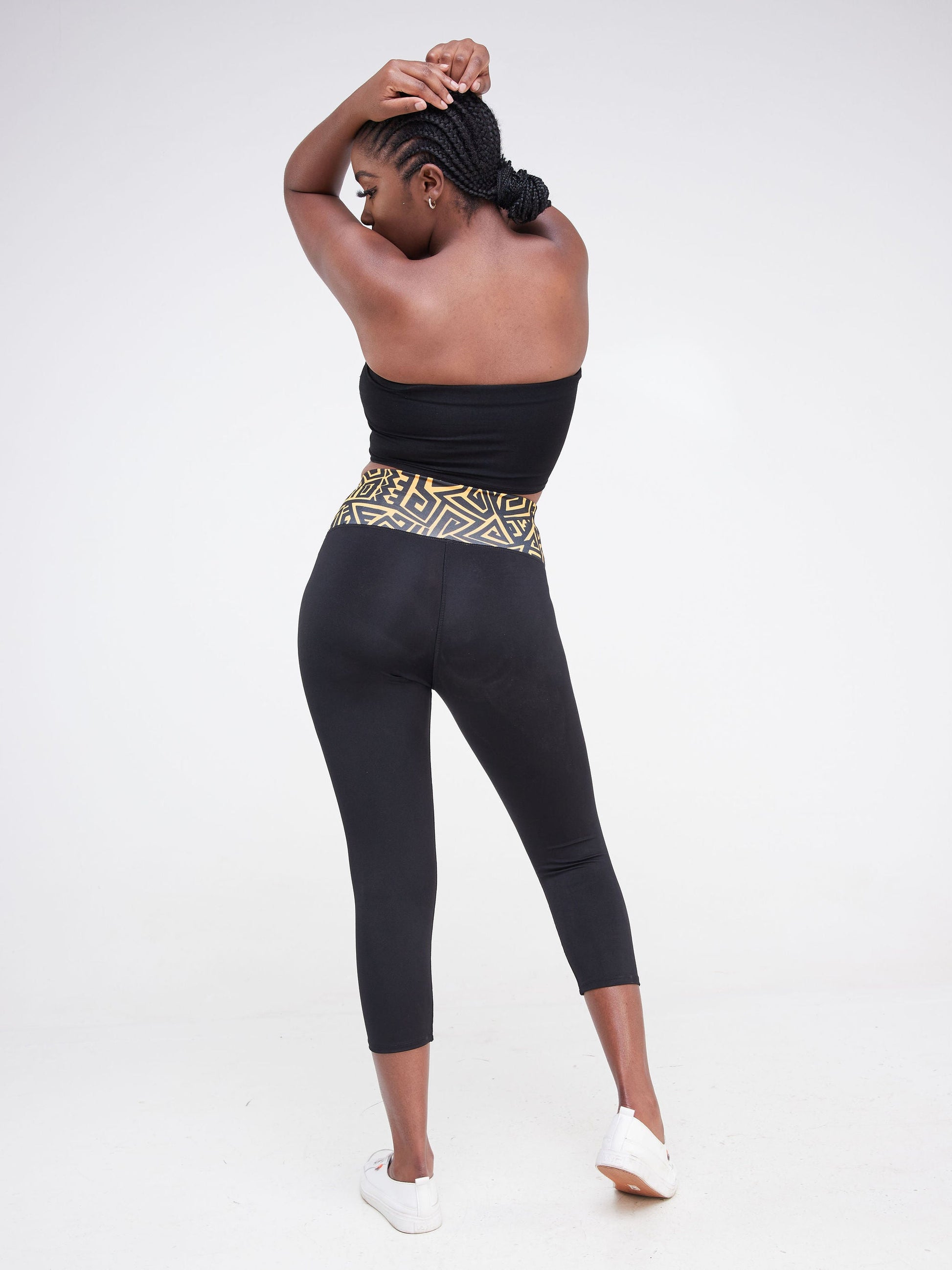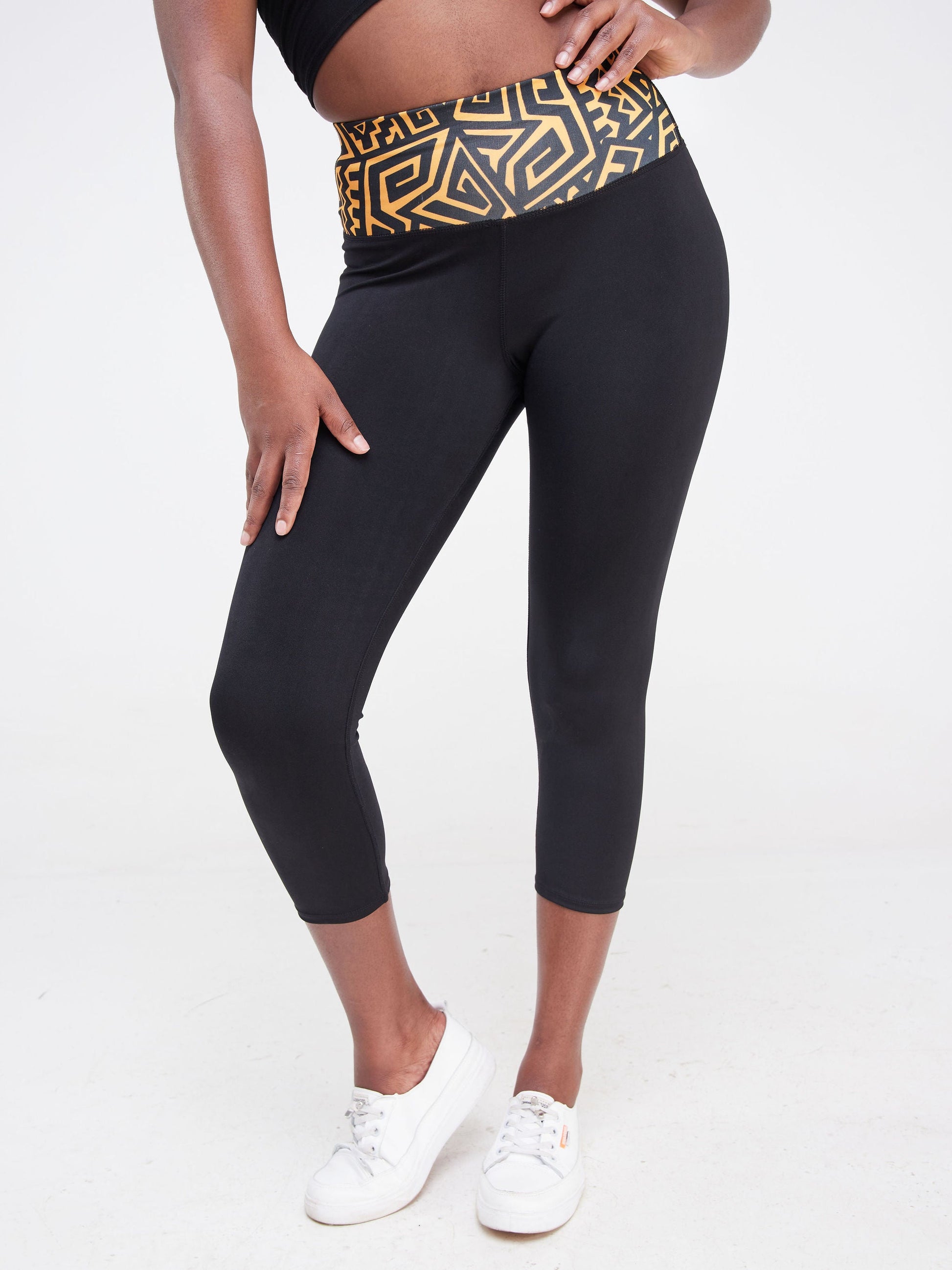 Vivo Fitness Leggings - Black / Mustard Geometric Print