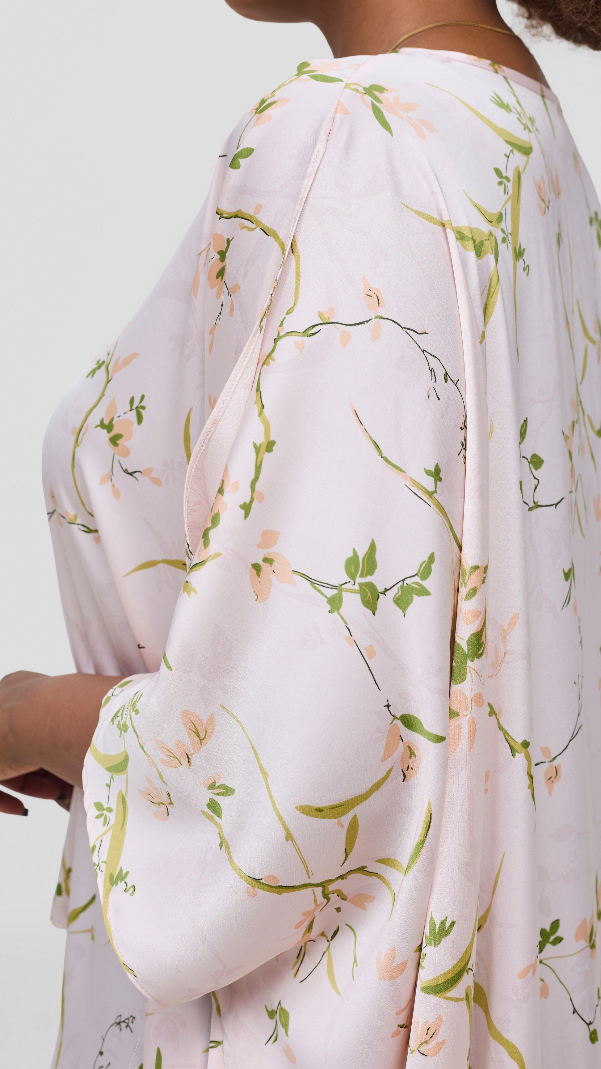 Vivo Hanabi Satin High Low Top - Light Pink / Olive Print