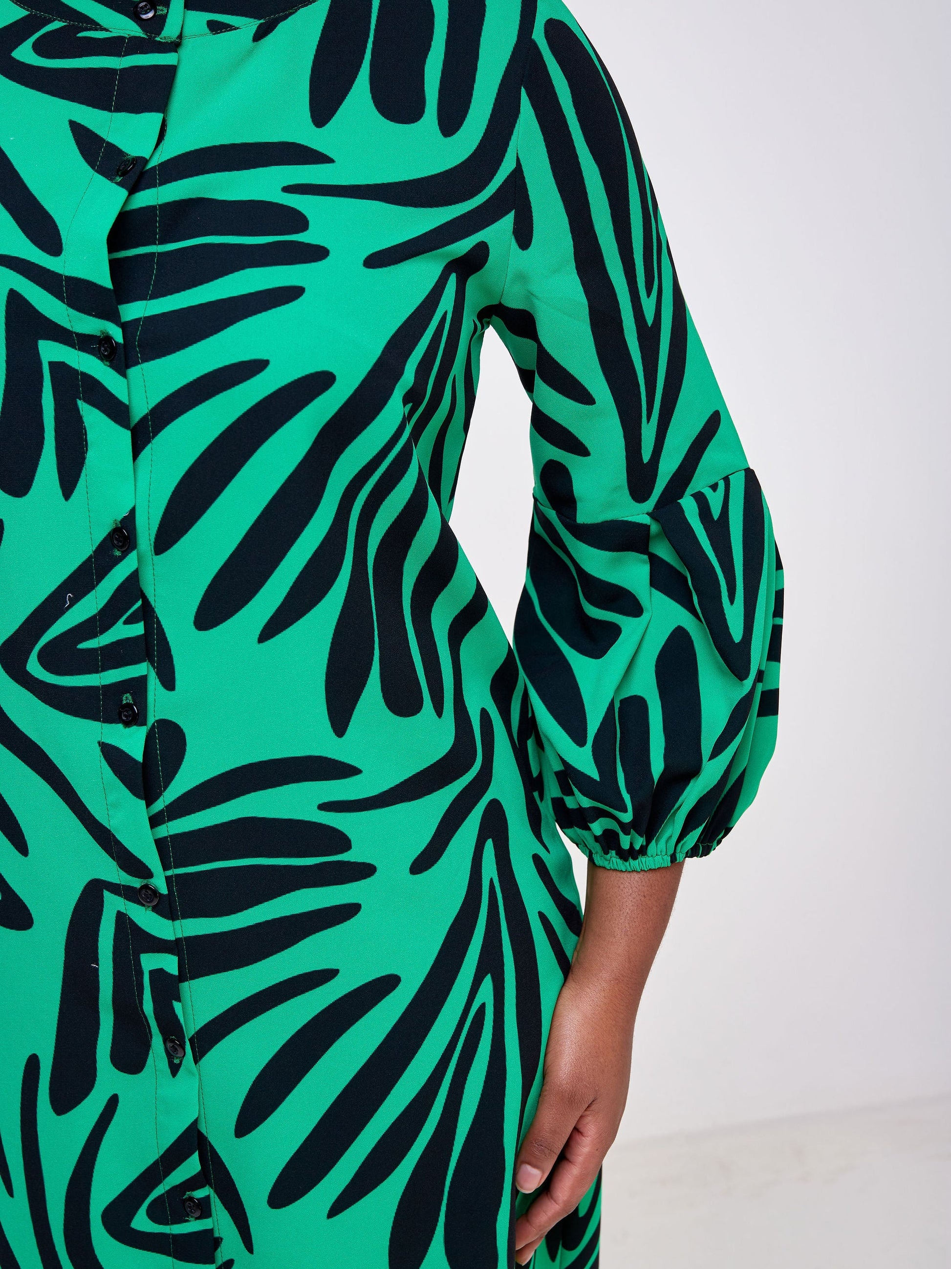 Vivo Imali Bishop Sleeve High Low Knee Length Dress - Green / Black Abstract Print