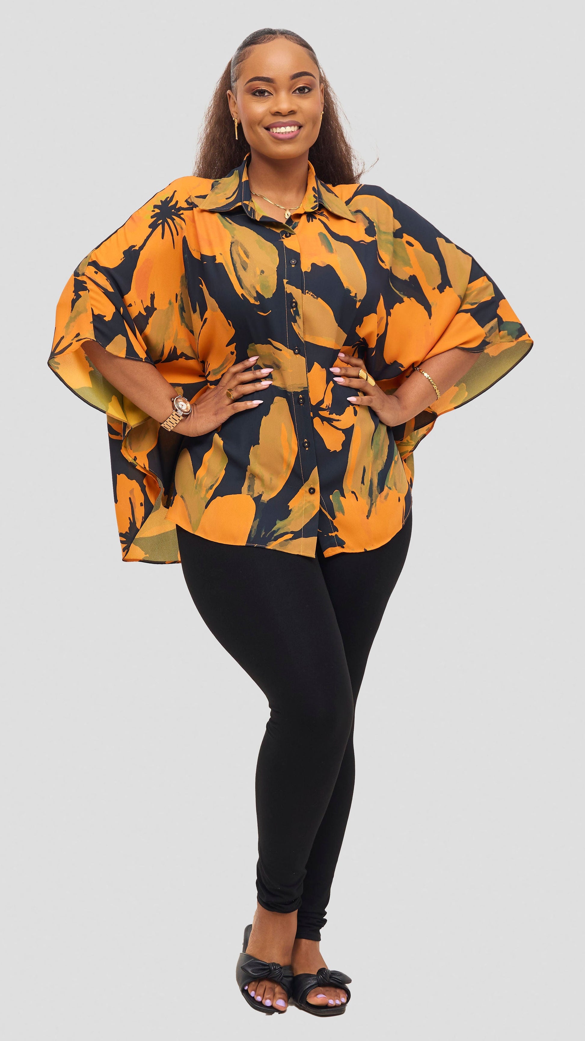Vivo Iyana Cape Top - Mustard / Navy Iya Print