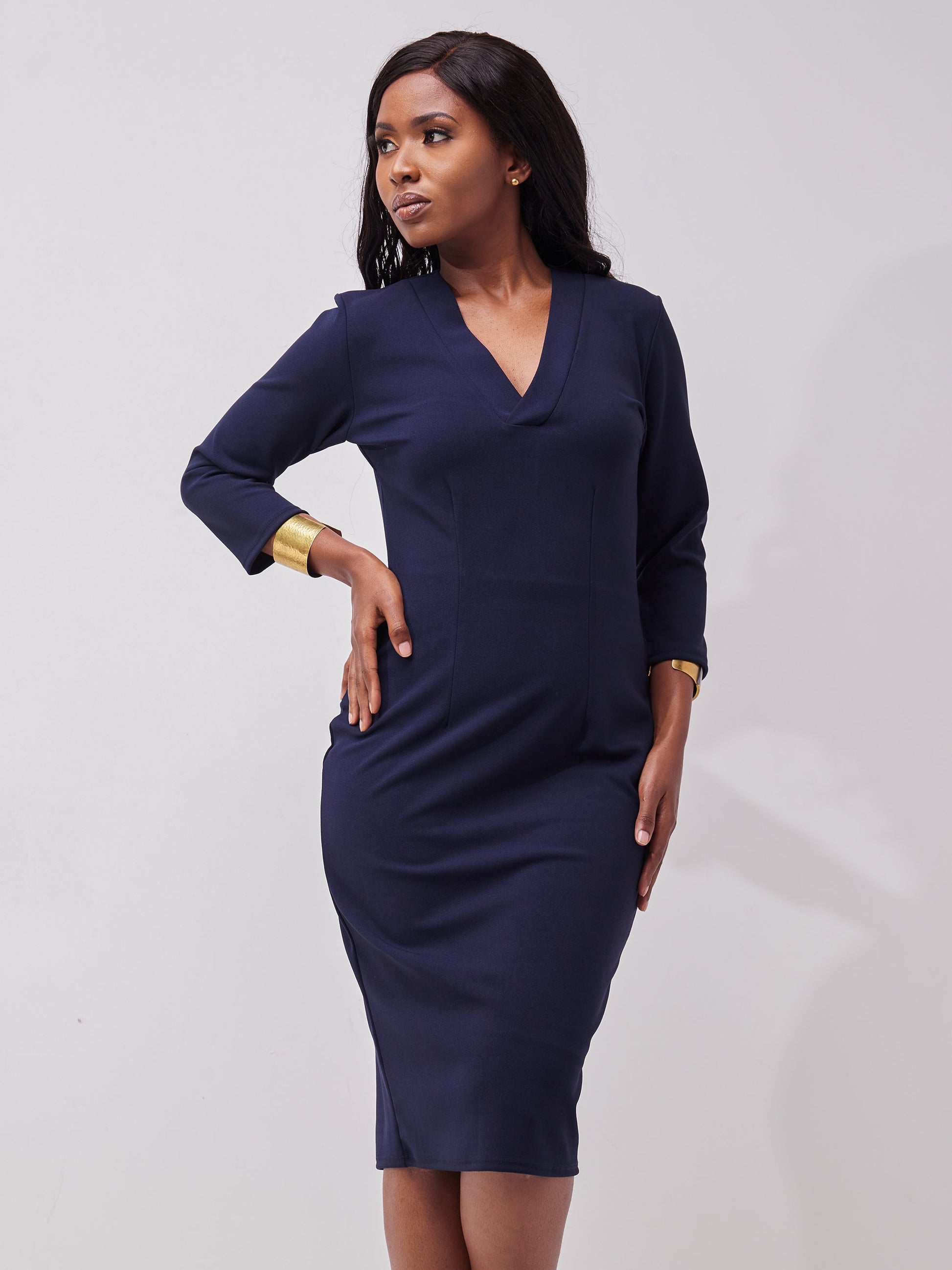 Vivo J.O V-Neck Sheath Dress - Navy Blue