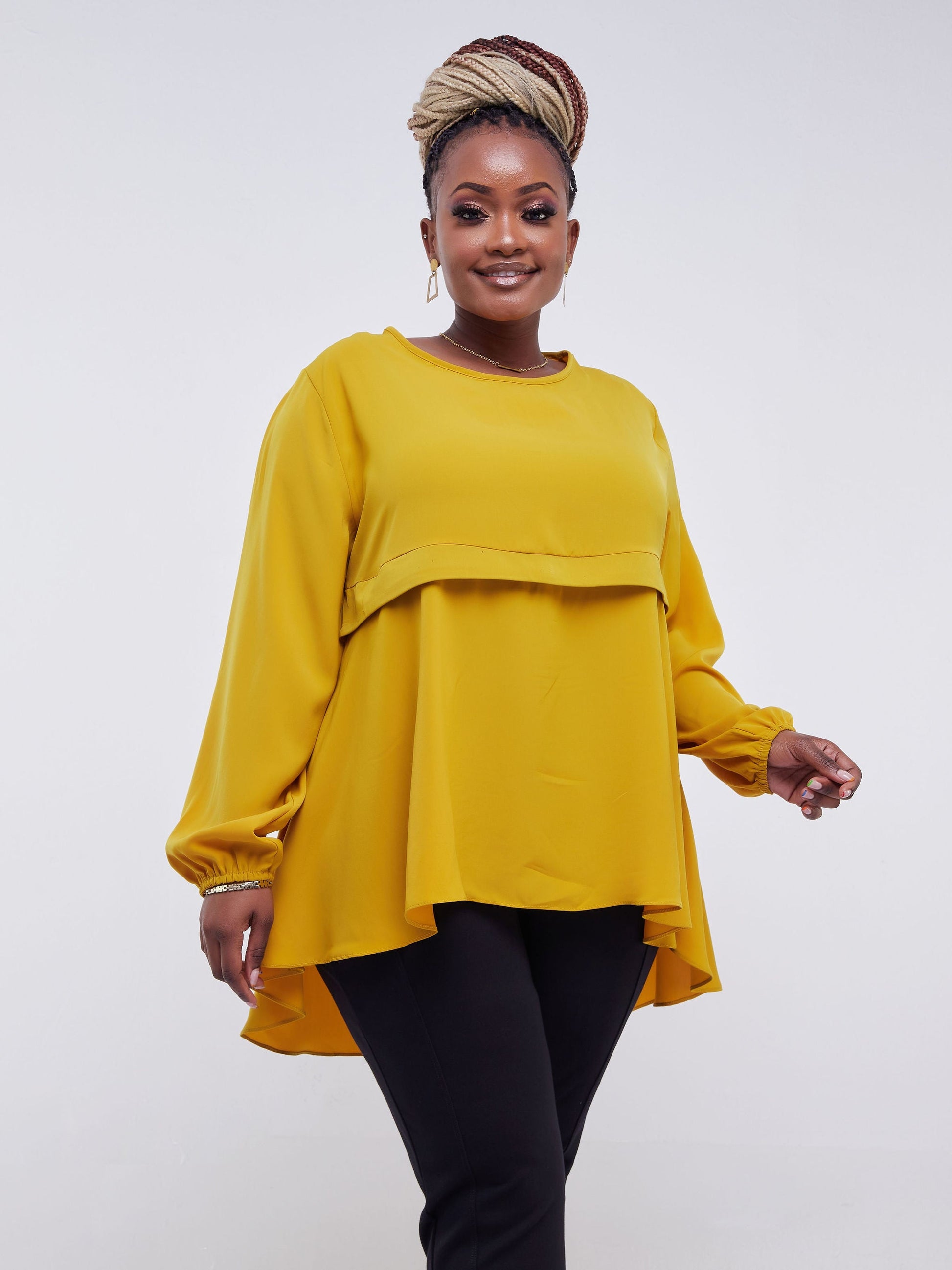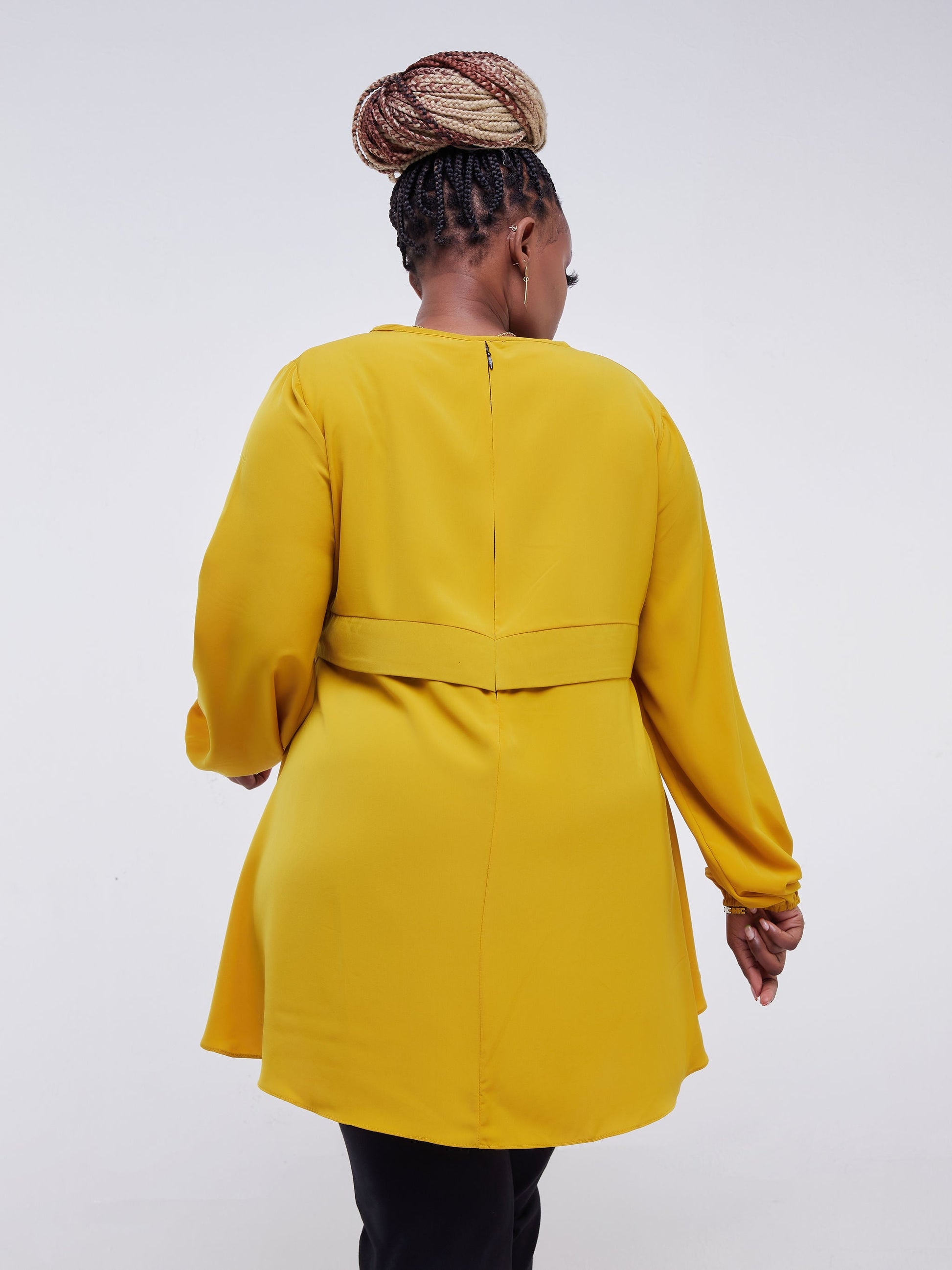 Vivo Jasiri Bishop Sleeve Cross Pleat Top - Mustard