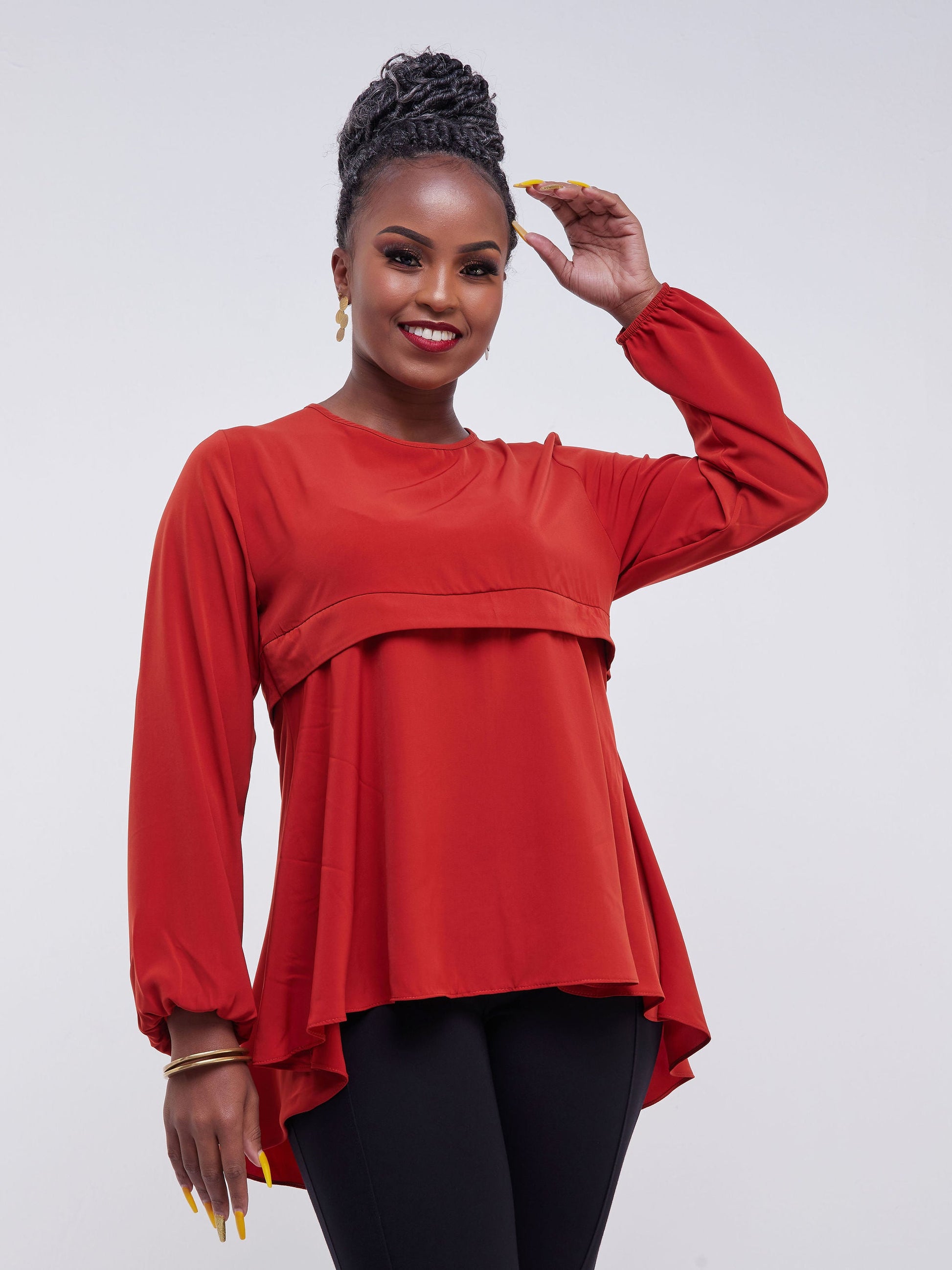 Vivo Jasiri Bishop Sleeve Cross Pleat Top - Rust