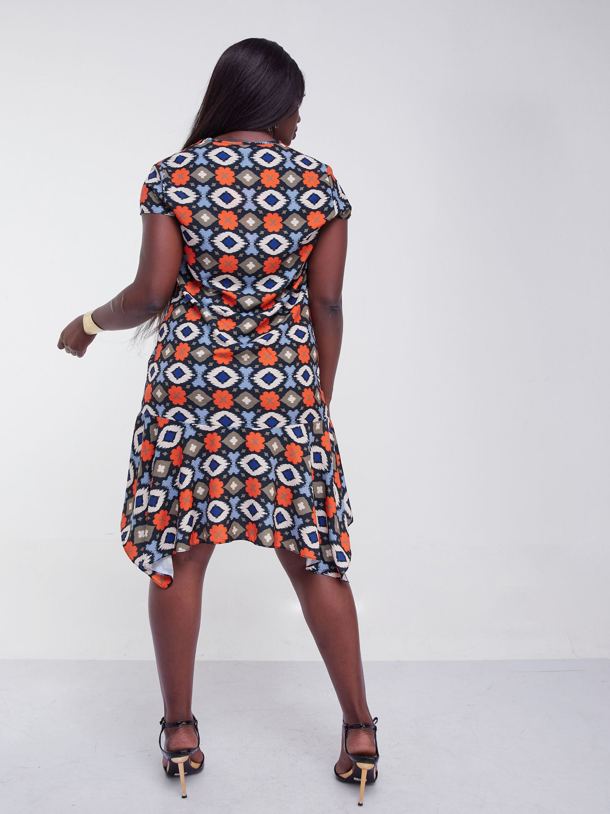 - Item: Vivo Jasiri Cap Sleeve Handkerchief Drape Knee Length Dress