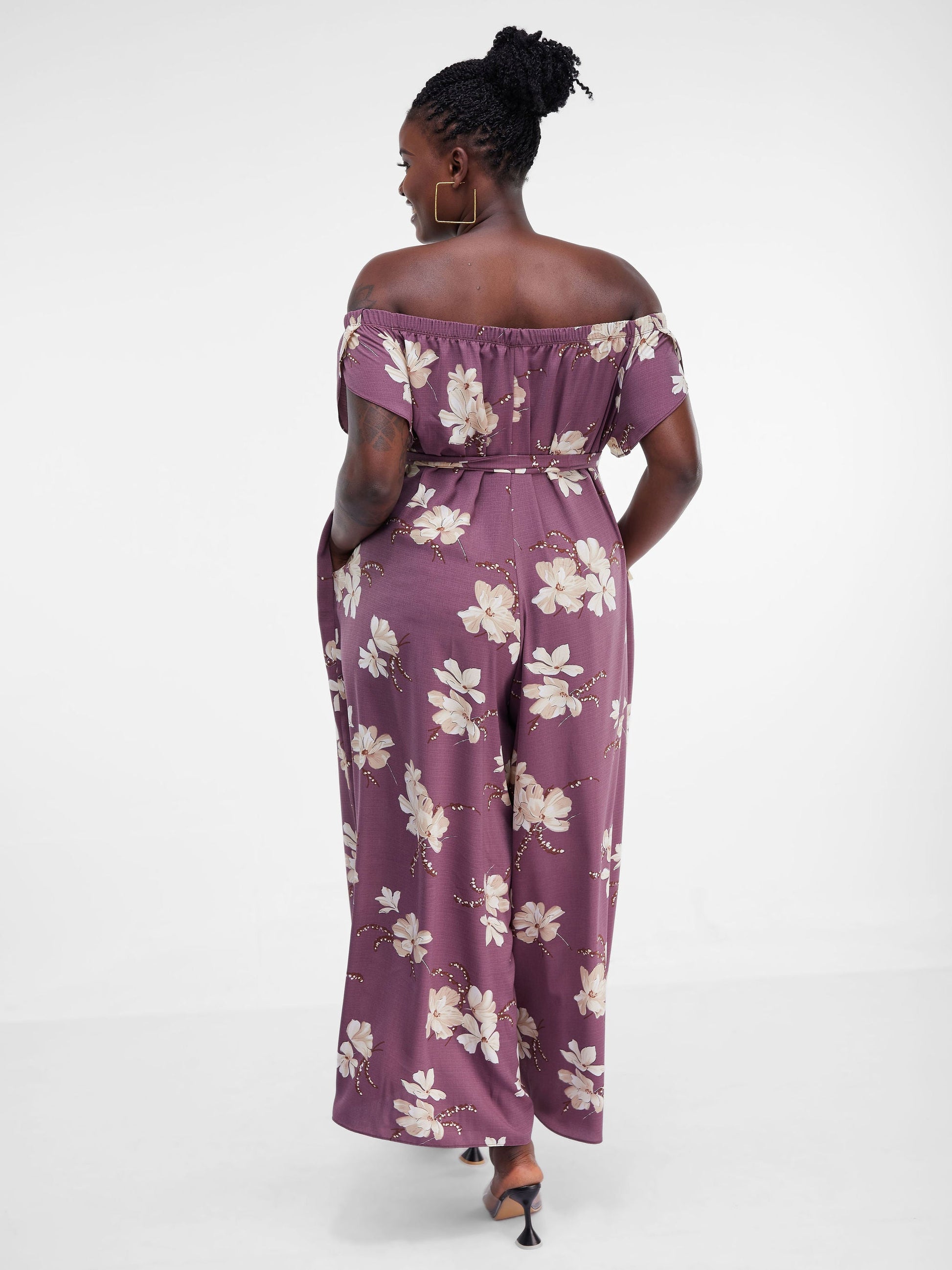 Vivo Dalia Off Shoulder Jumpsuit - Burgundy Floral Print