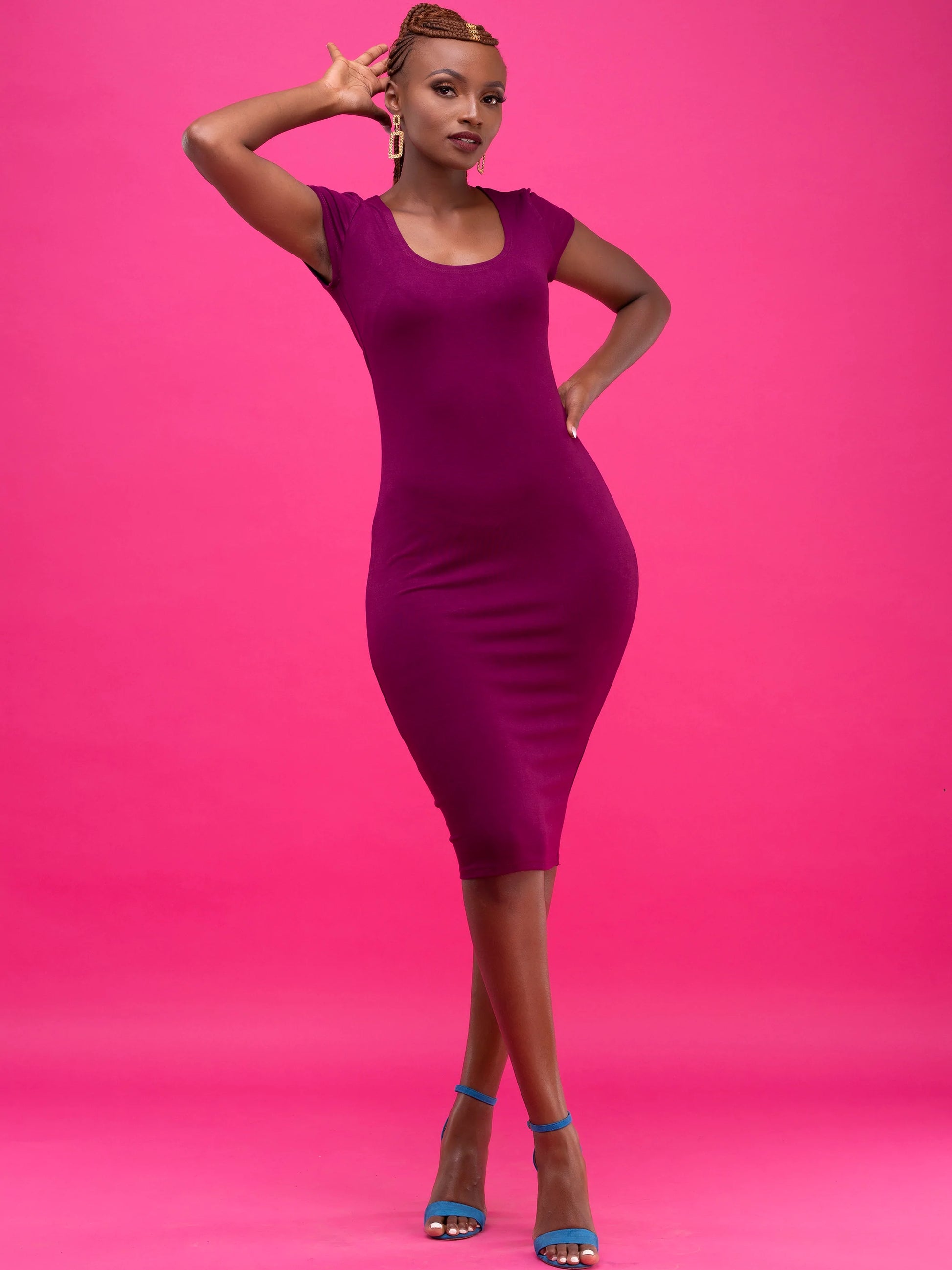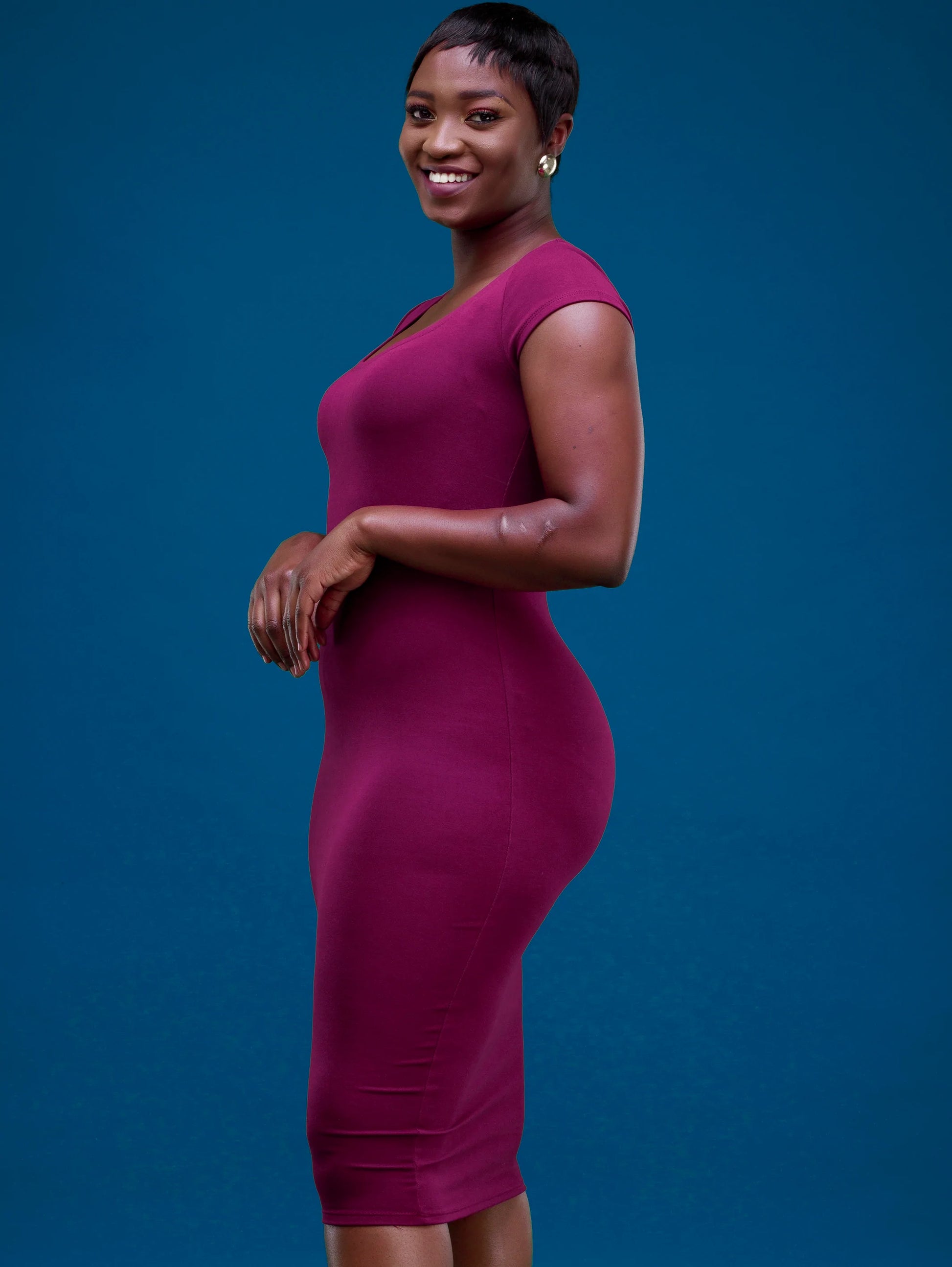 Vivo Basic Cap Sleeved Leila Dress - Burgundy