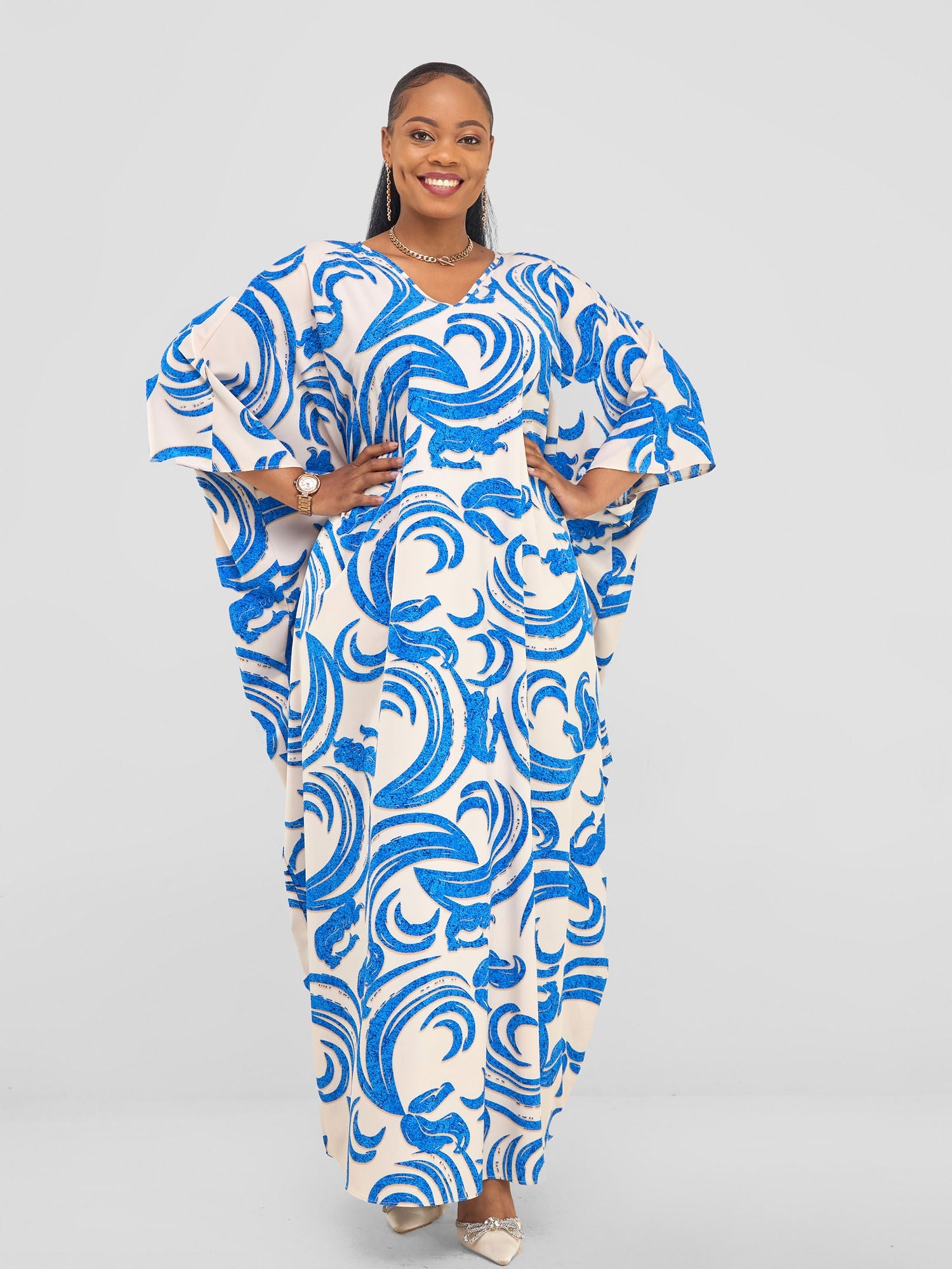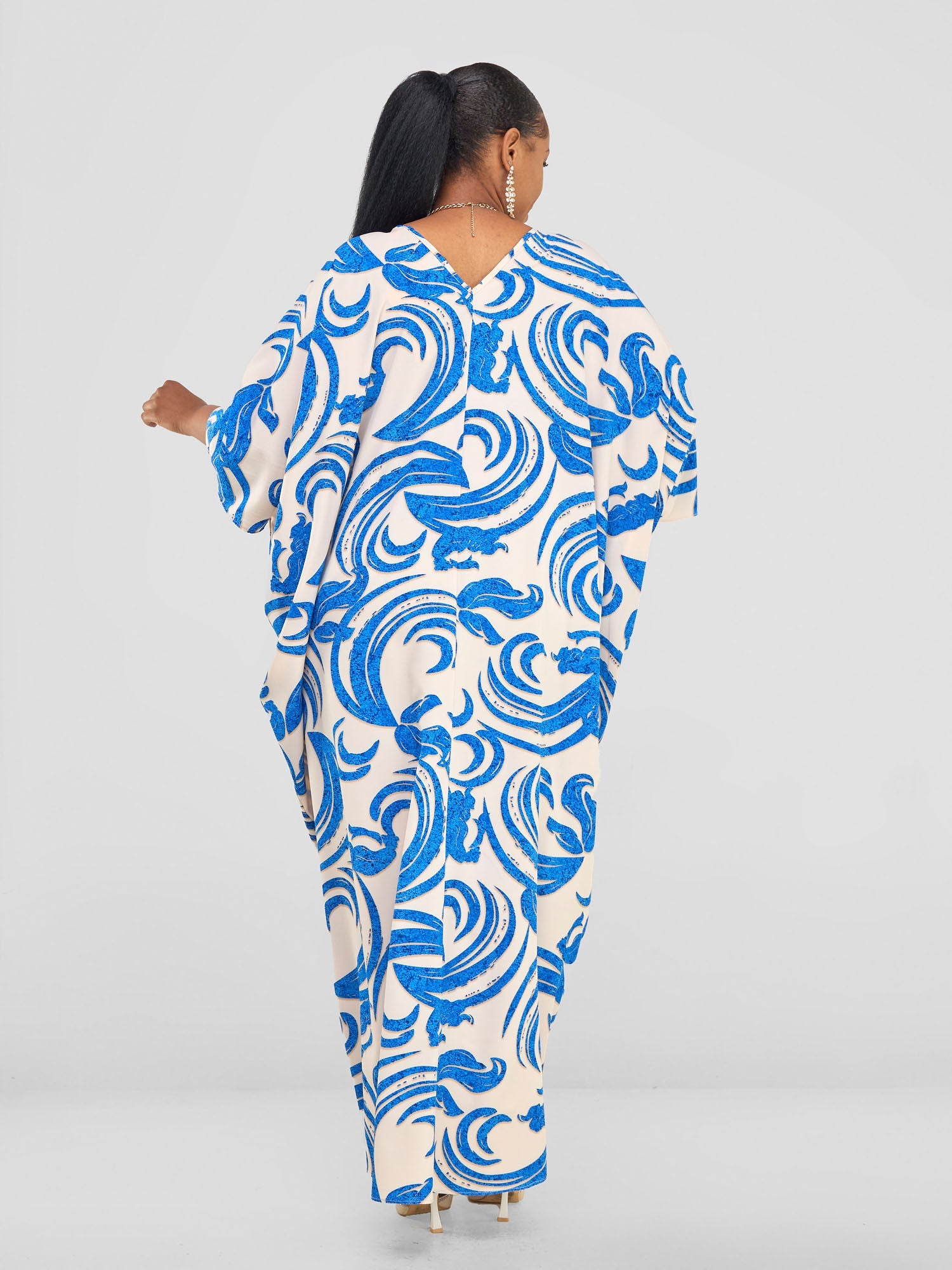 Vivo Maisha Dolman Maxi Kaftan - Blue Abstract Print