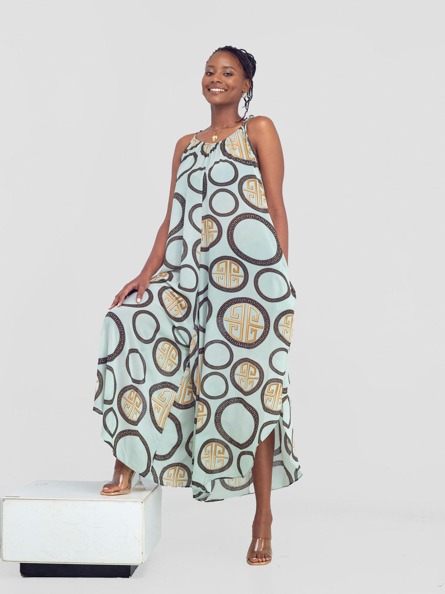 Vivo Maisha Strappy Culotte Jumpsuit - Sea Green Pingu Print