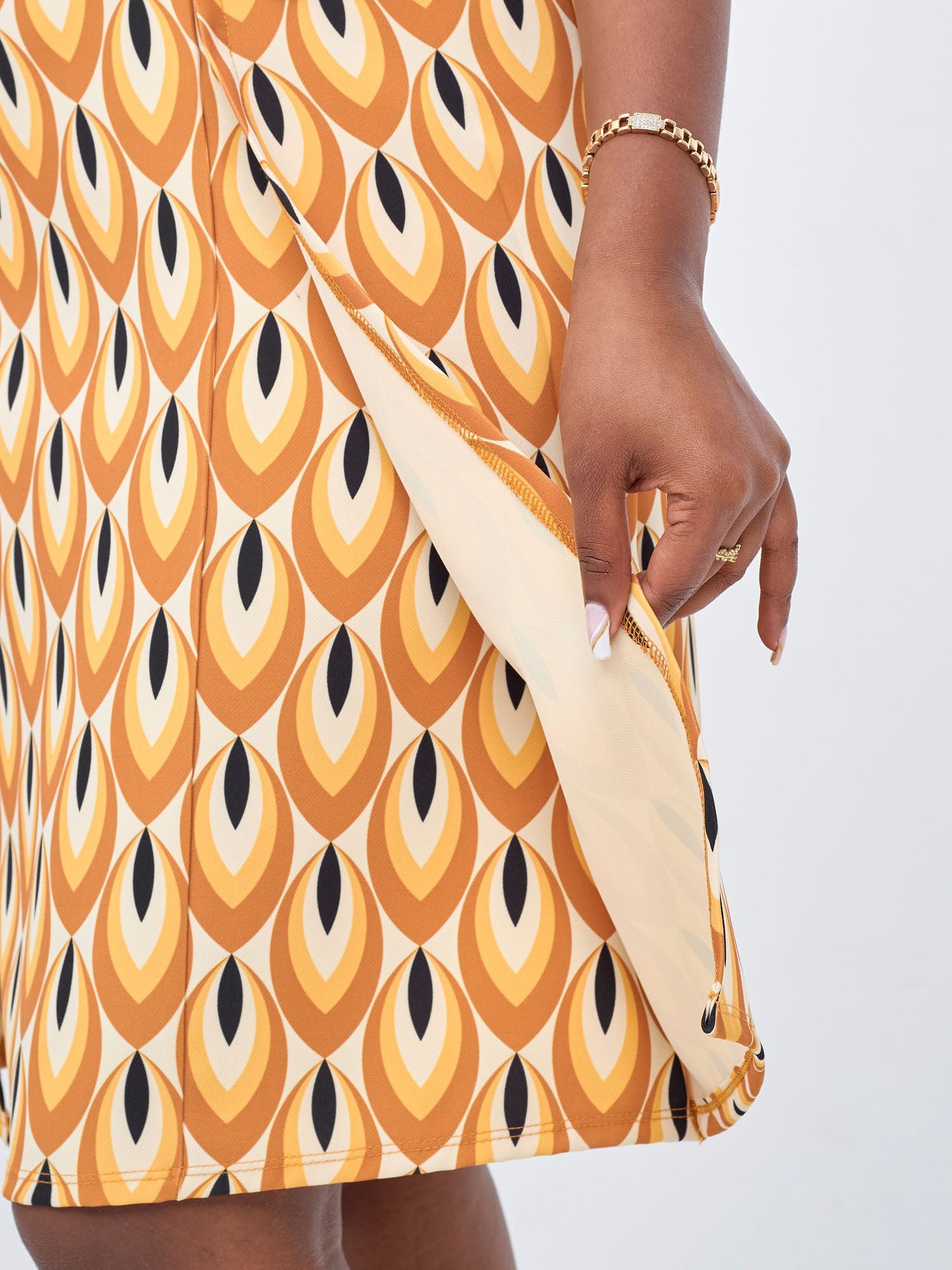 Vivo Mandla Side Flap A-Line Dress - Beige / Rust Manla Print