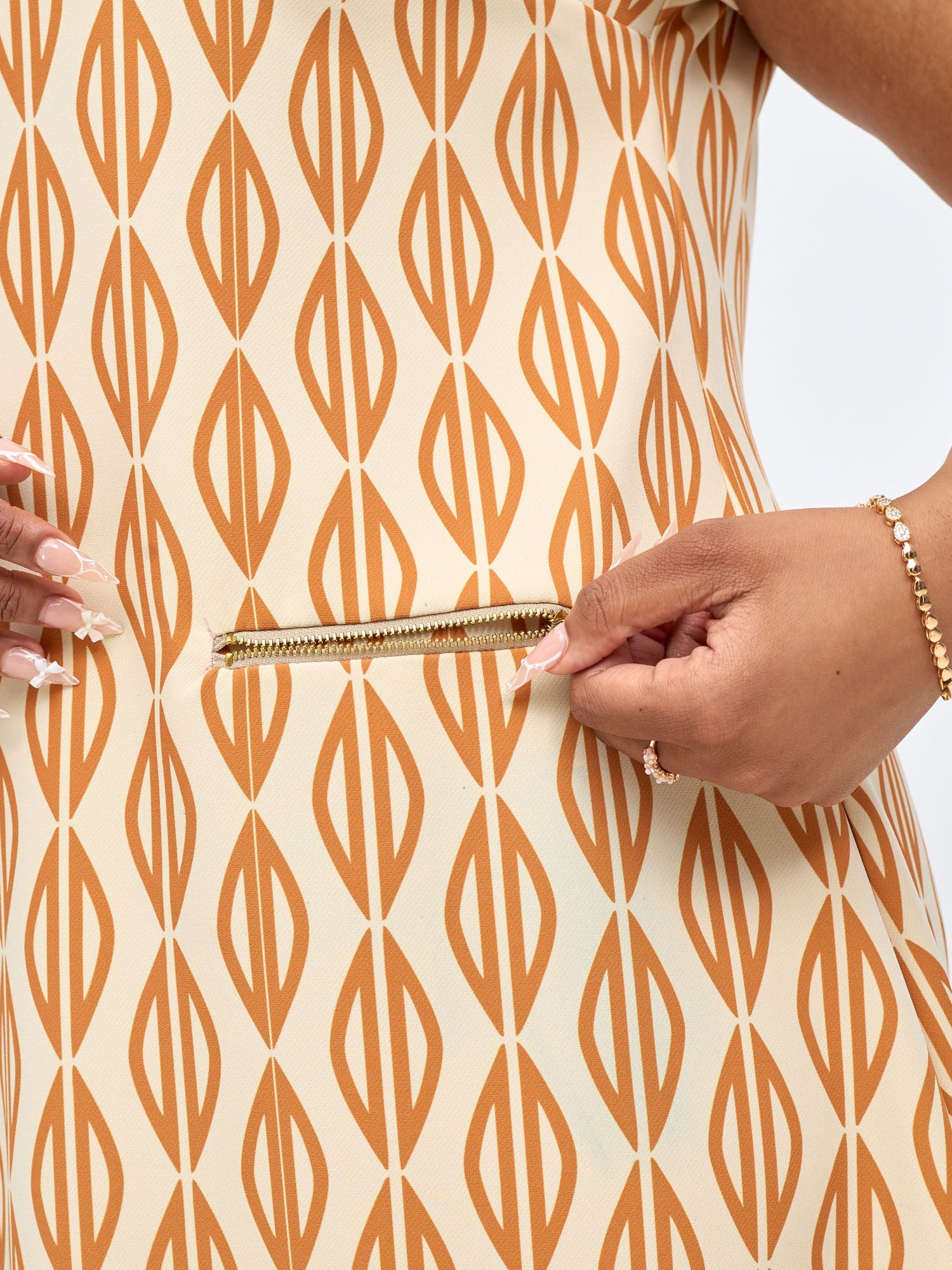 Vivo Mandla Side Zipper Dress - Beige / Rust Anila Print