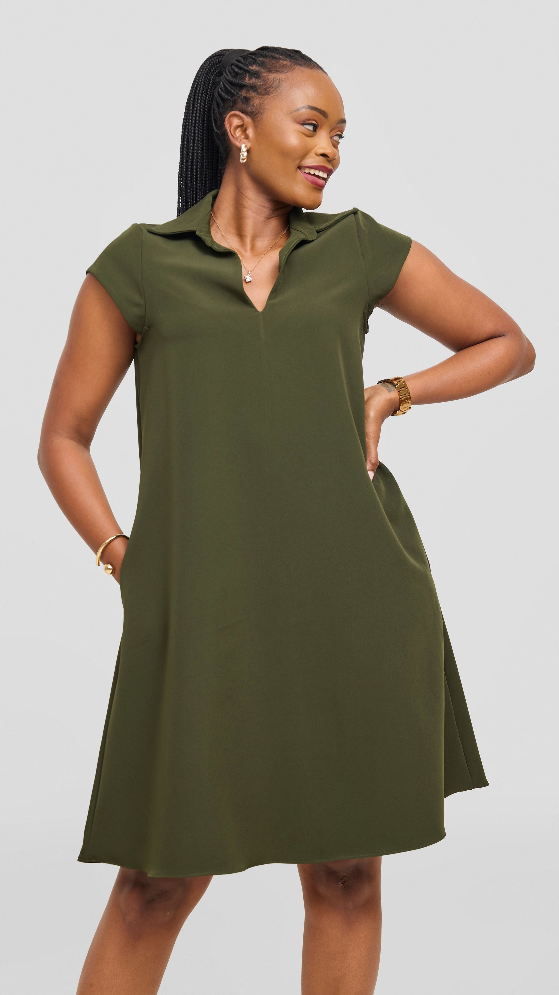 The Vivo Mandla Tent Dress in Dark Hunters is a versatile piece designed to flatter and comfort. This relaxed silhouette features a flowing tent cut that moves with you throughout your day, making it perfect for both casual outings and laid-back gatherings. The rich dark hunters tone adds sophistication to your wardrobe while remaining easy to style with your favorite accessories. Whether you're looking for effortless elegance or comfortable everyday wear, this dress delivers both with understated charm.