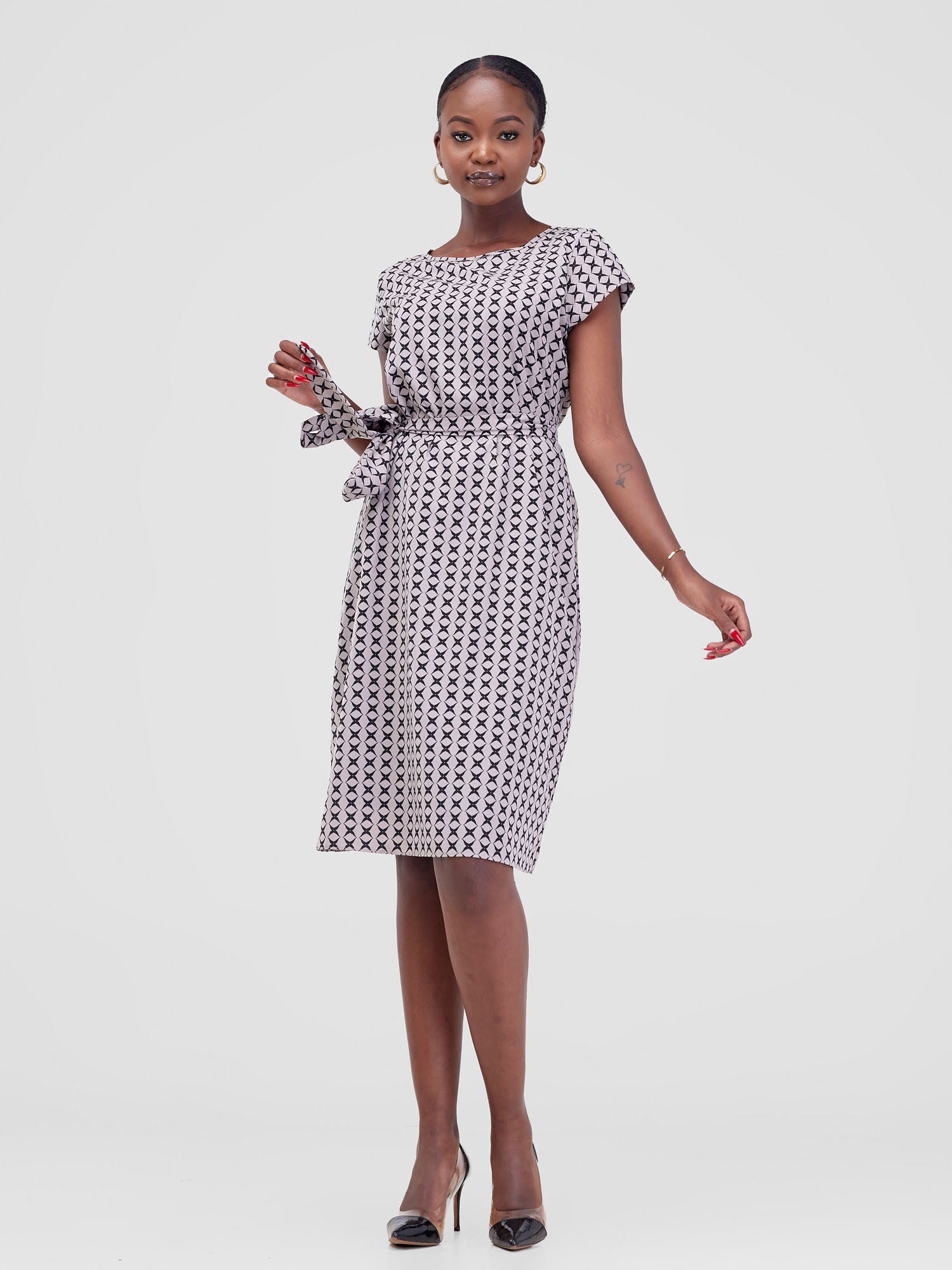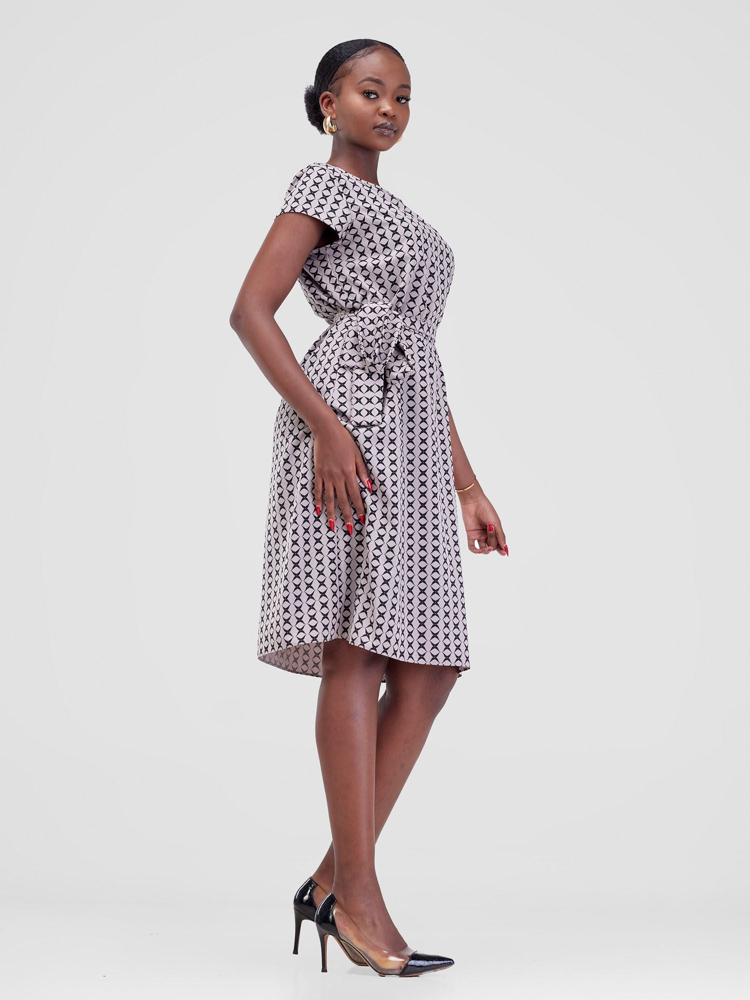 Vivo Muna Cap Sleeved Knee Length Dress - Grey / Black Clover Print