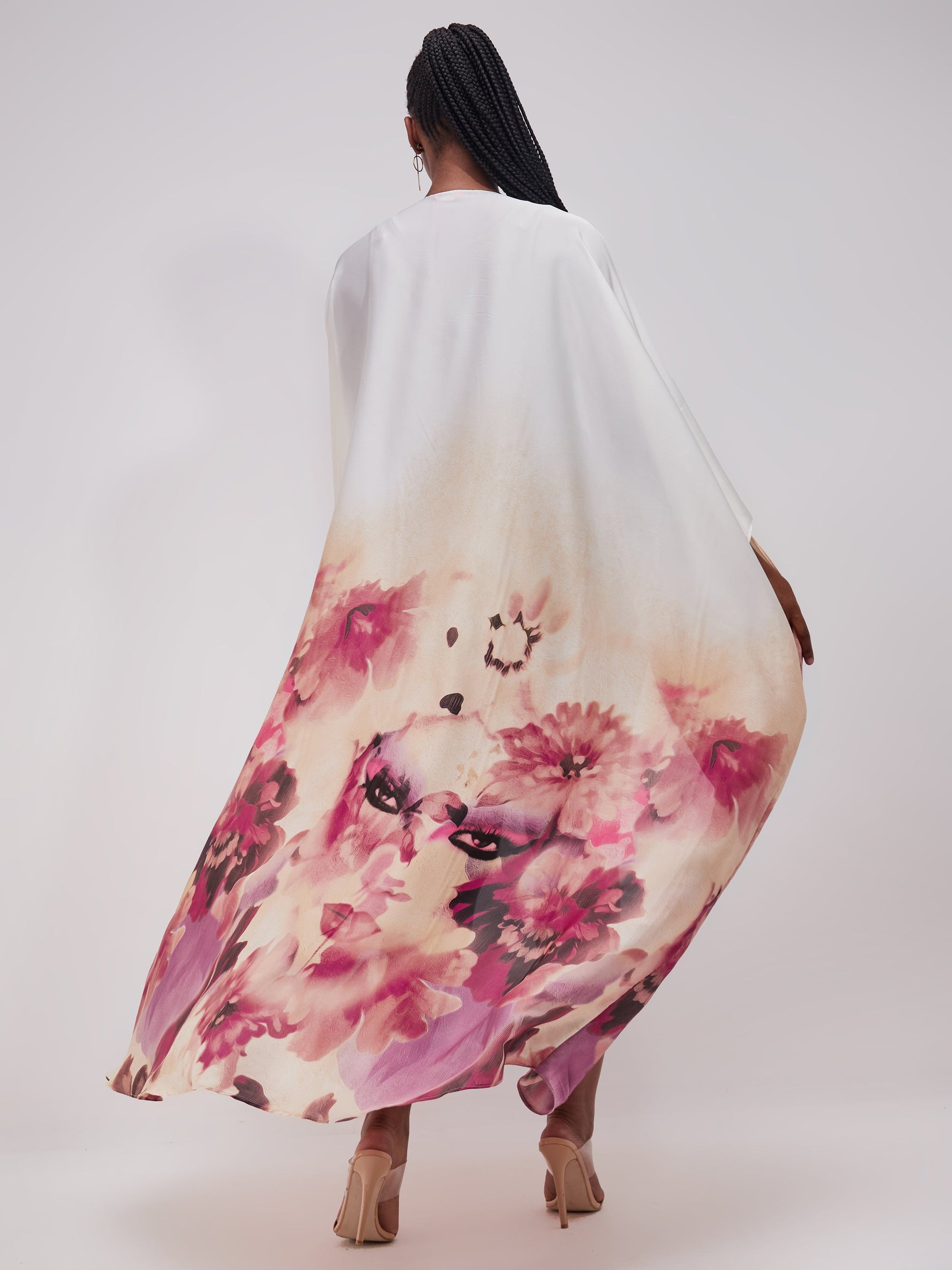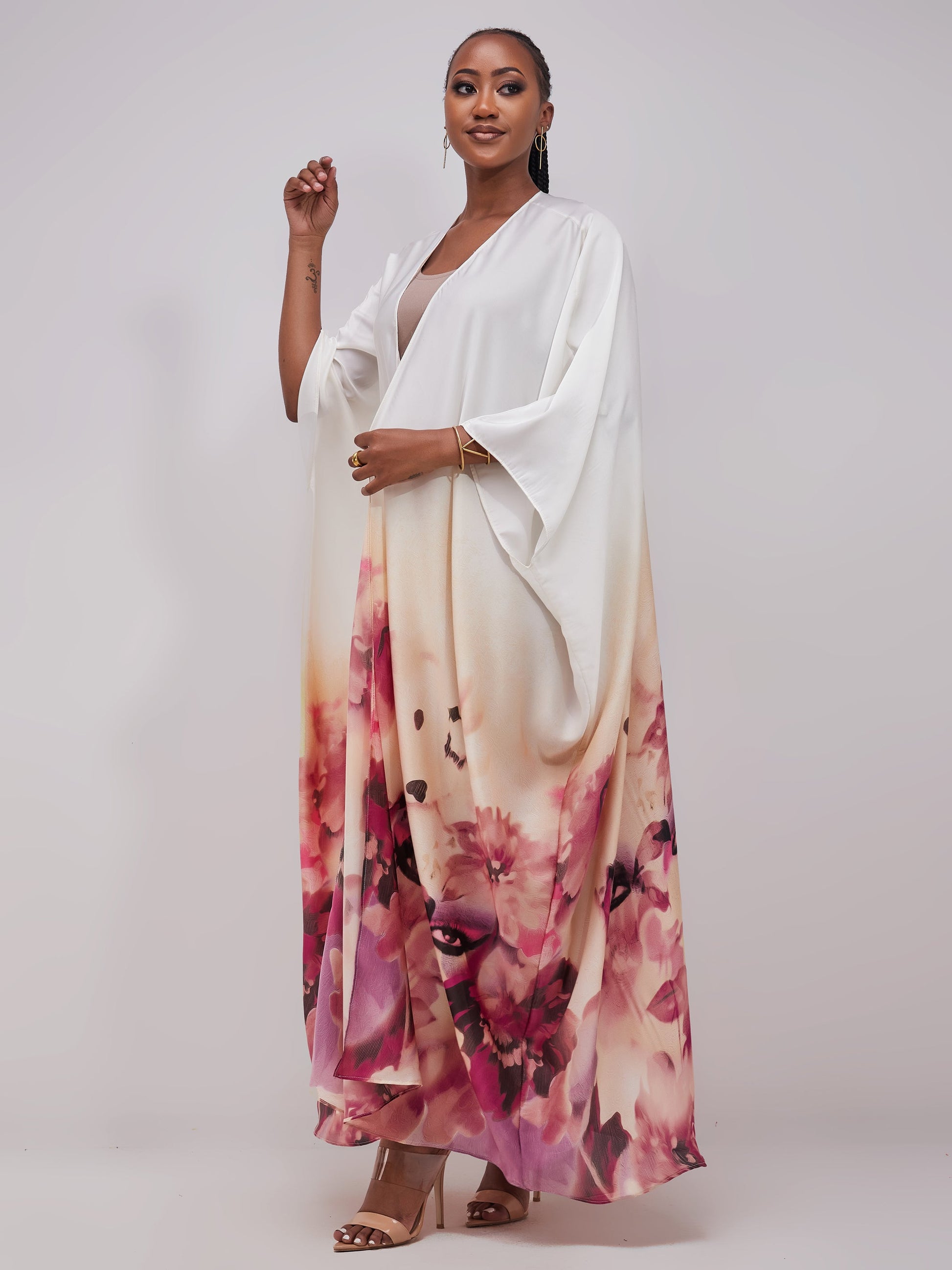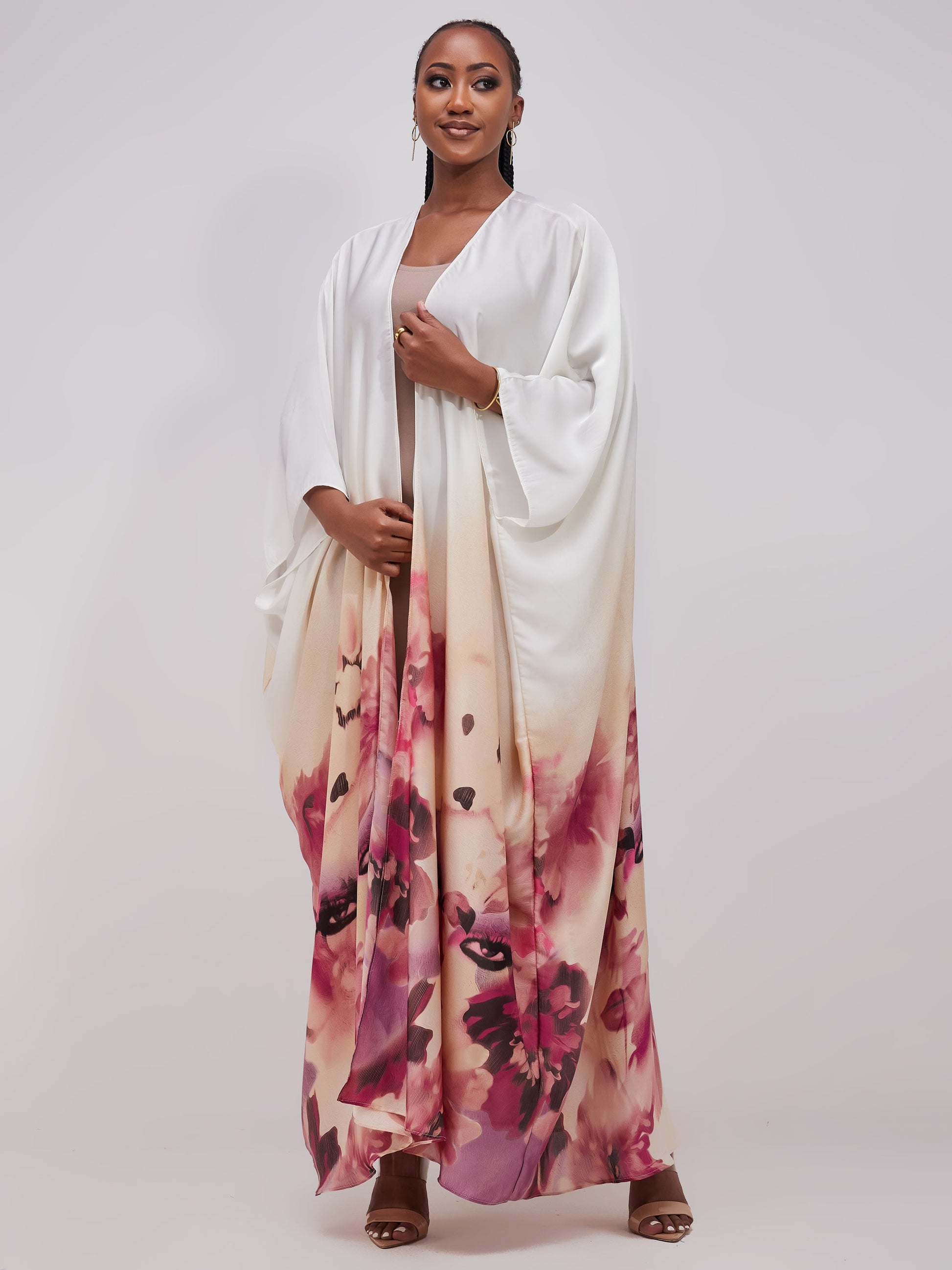 Vivo Muna Chiffon Kimono - Pink / Off White Print