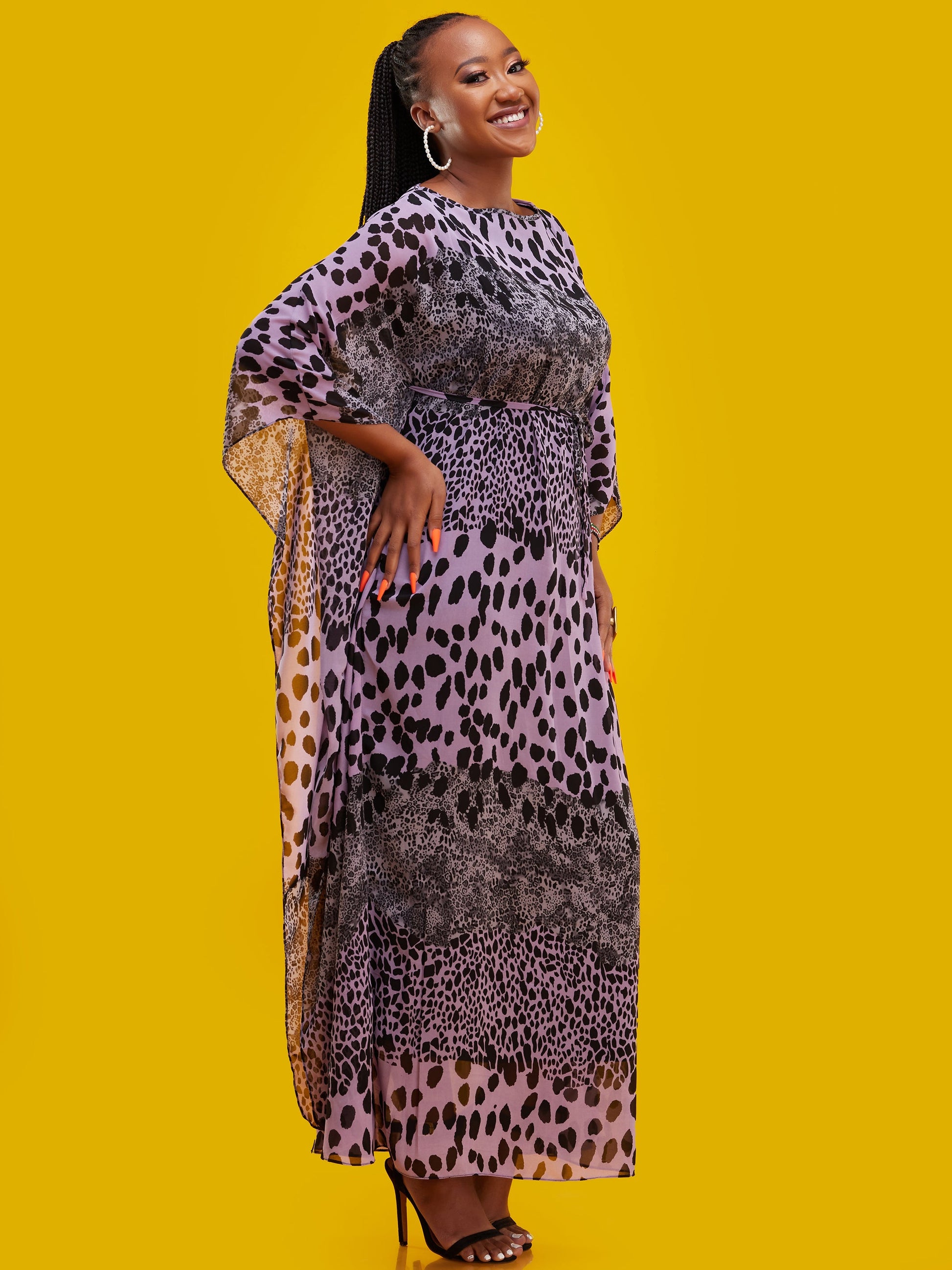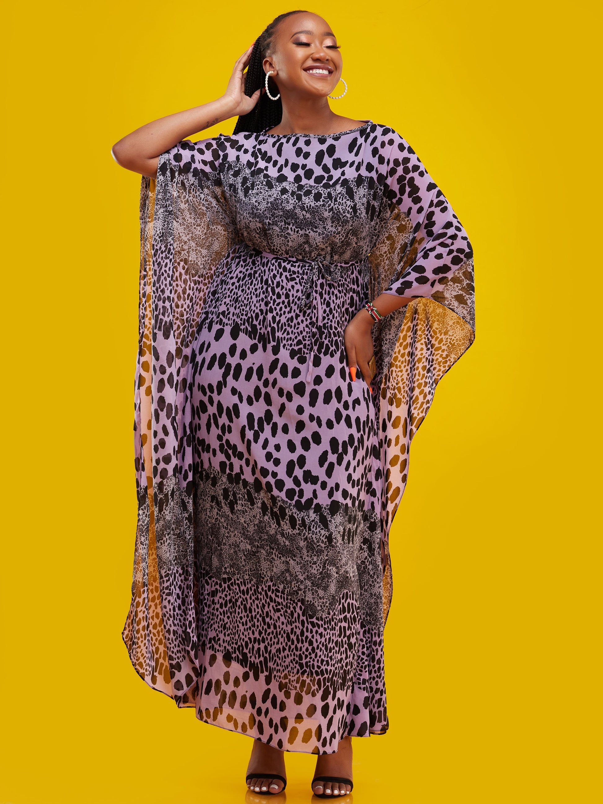 Vivo Muna Maxi Kaftan - Black / Purple Print