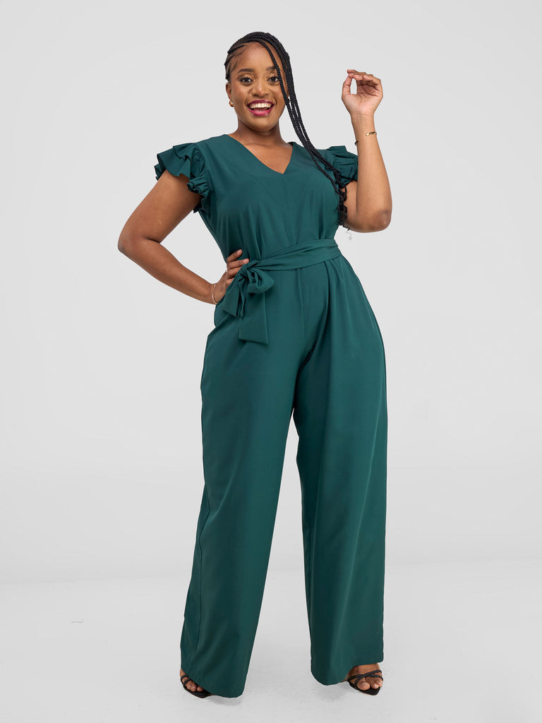 Vivo Nasinka Ruffle Sleeve Jumpsuit - Dark Green