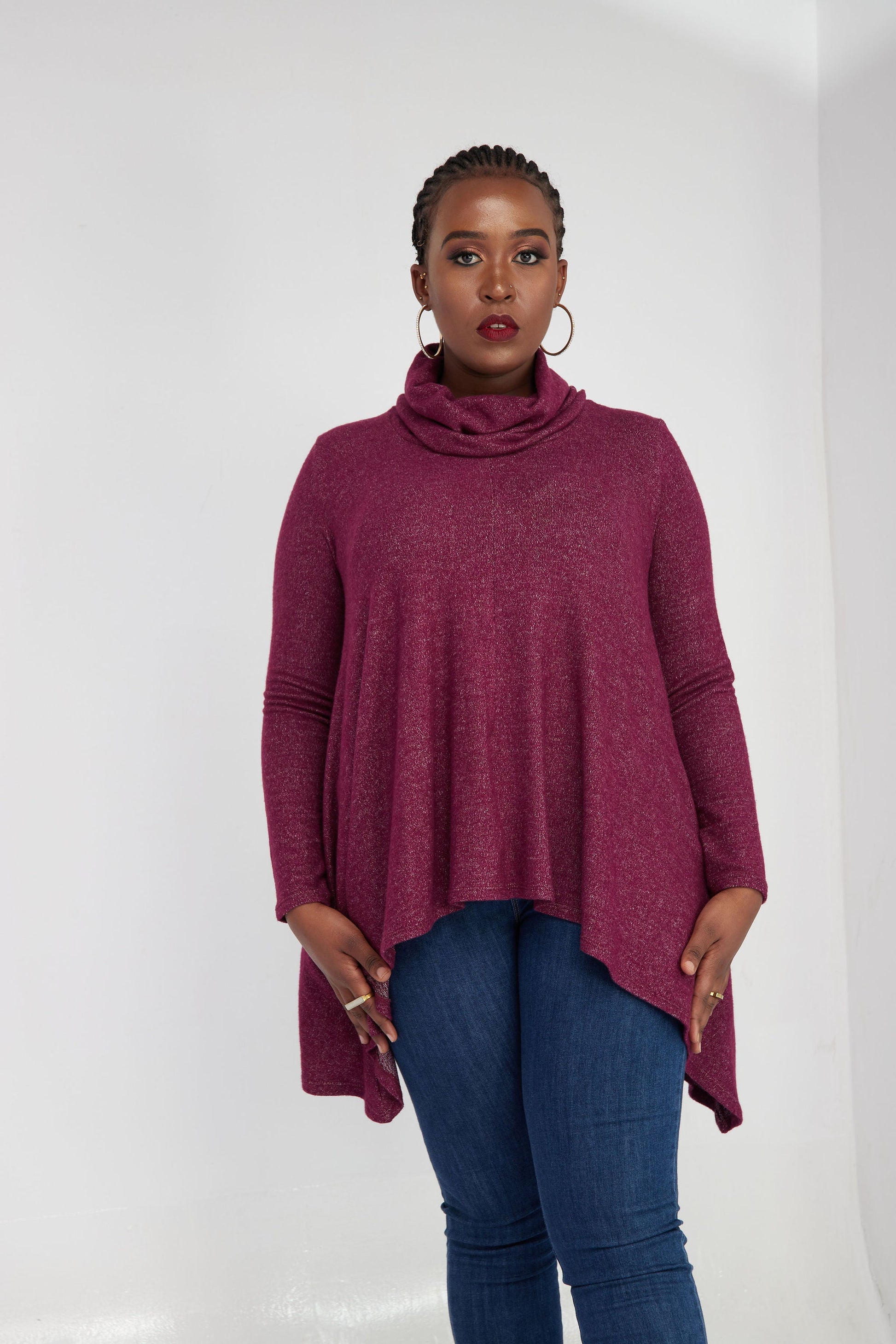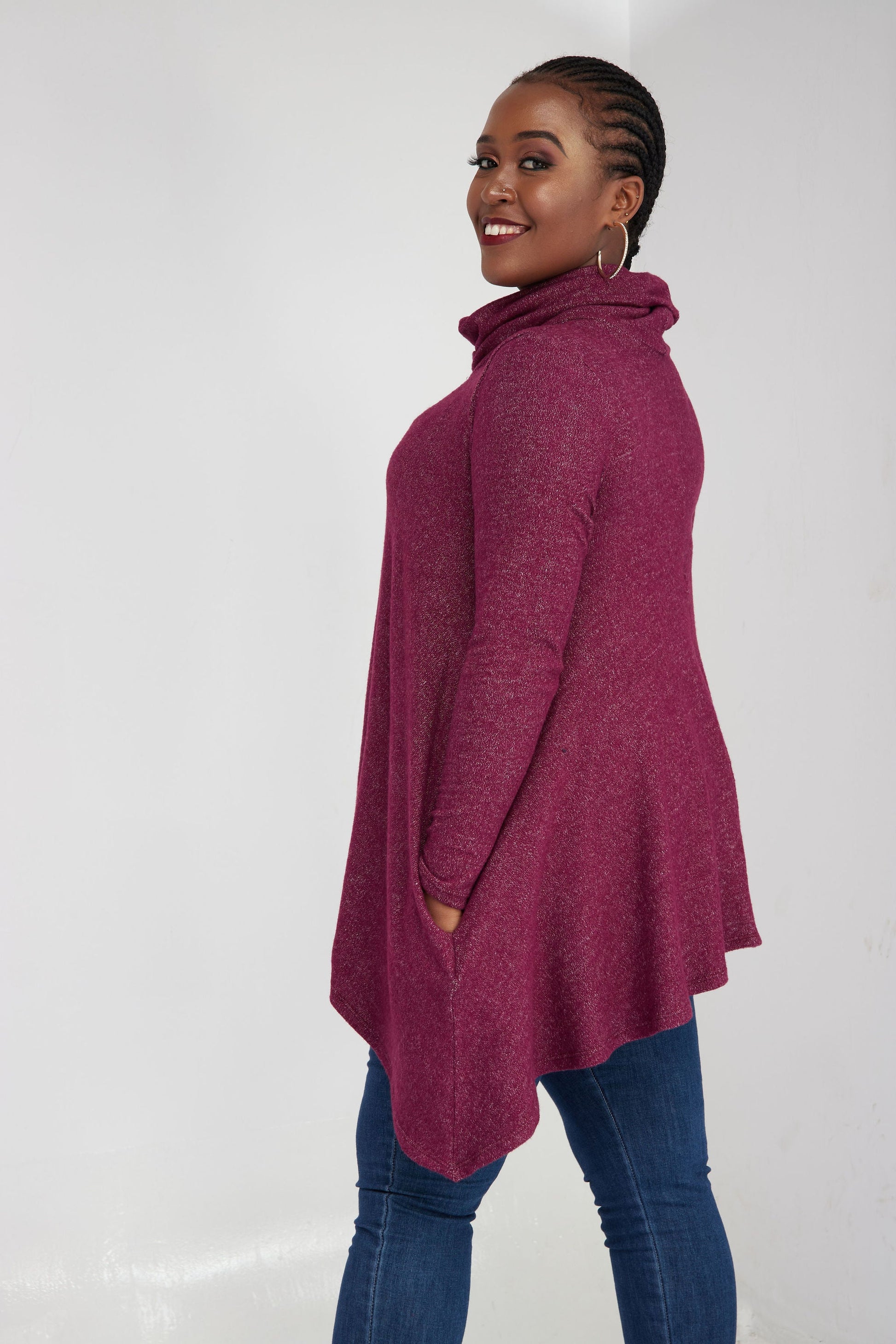 Vivo Neo Imelda Cowl Sweater - Burgundy