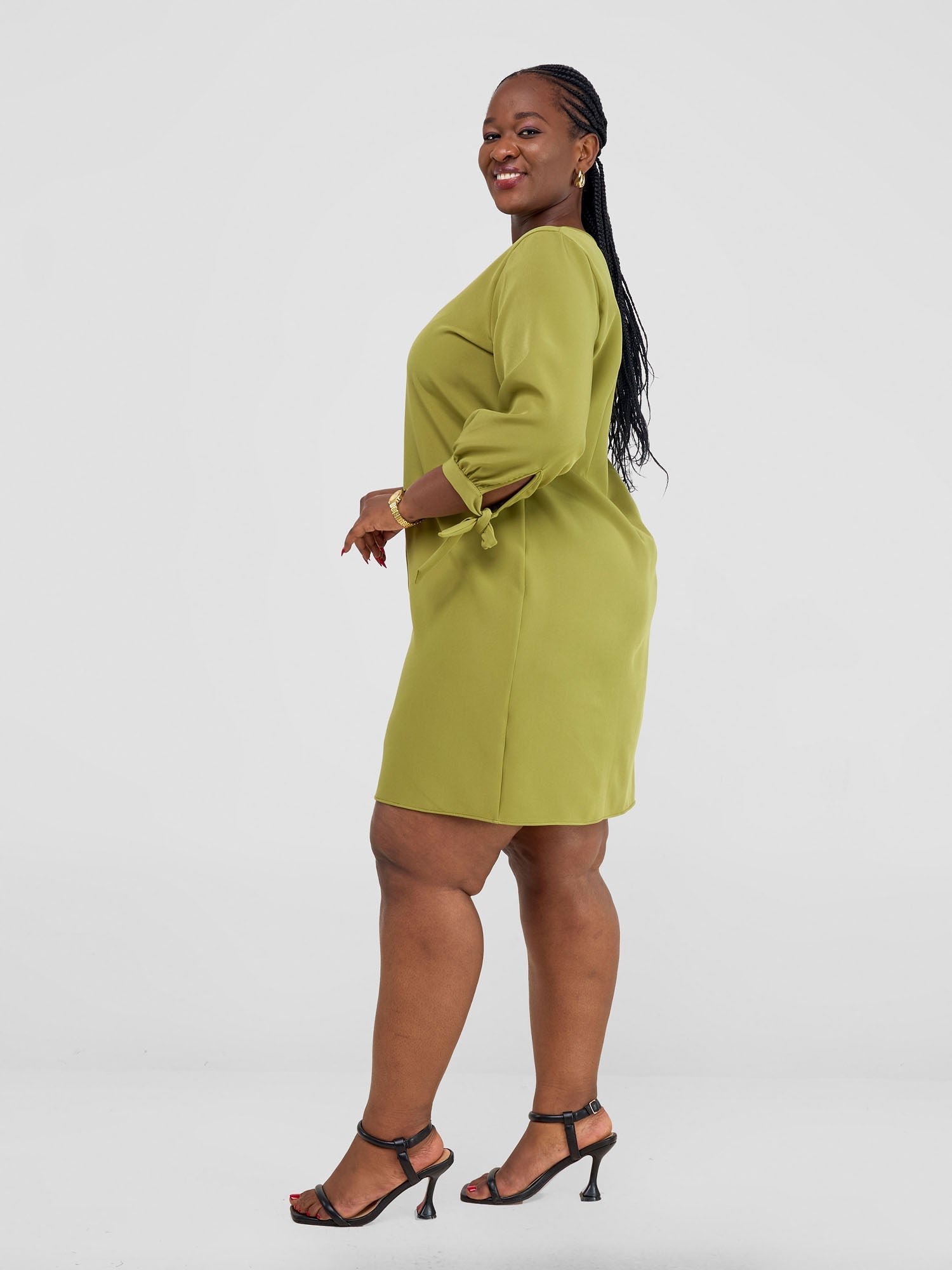 Vivo Paji 3/4 Sleeve Shift Dress (Tall) - Olive