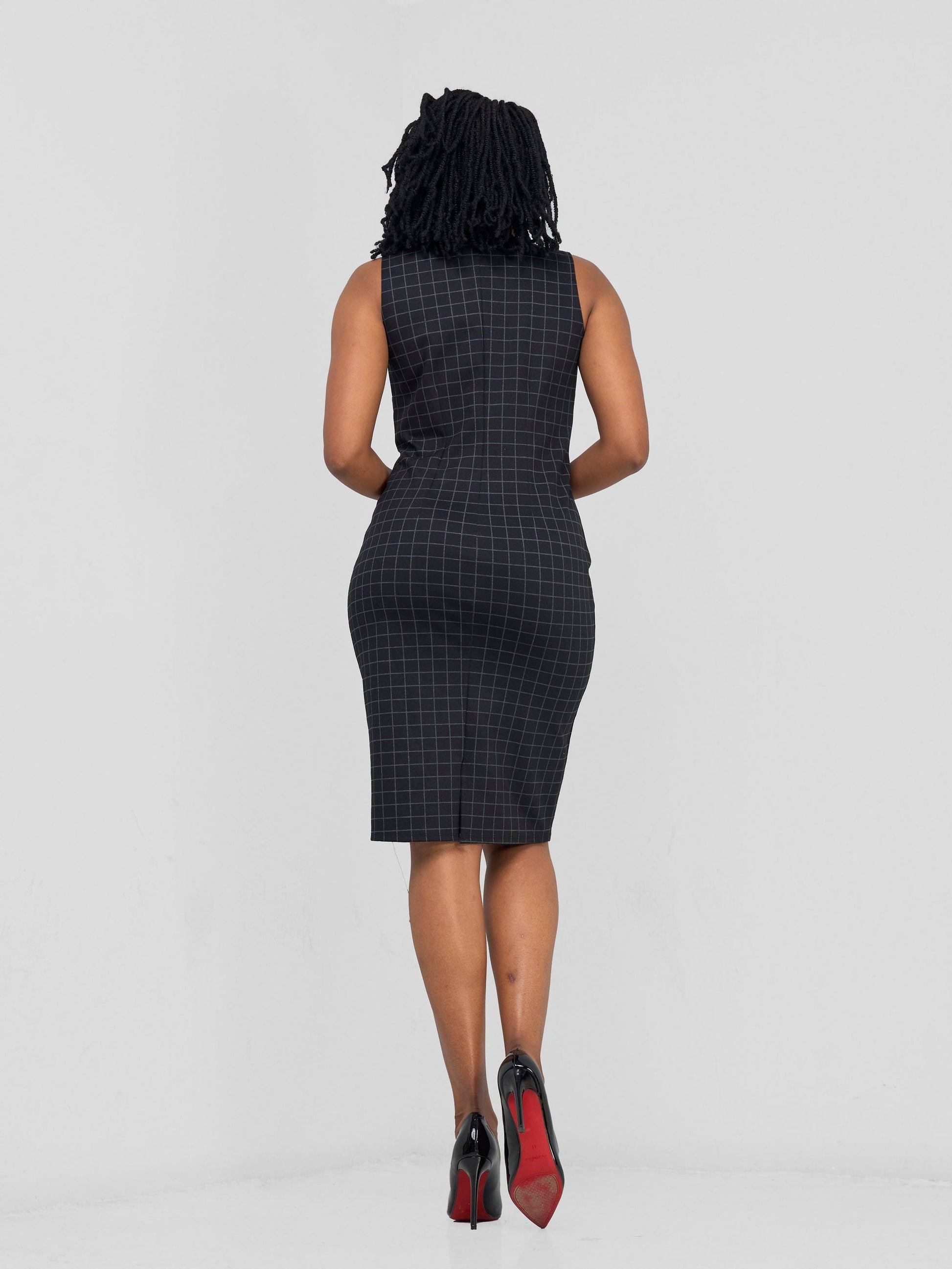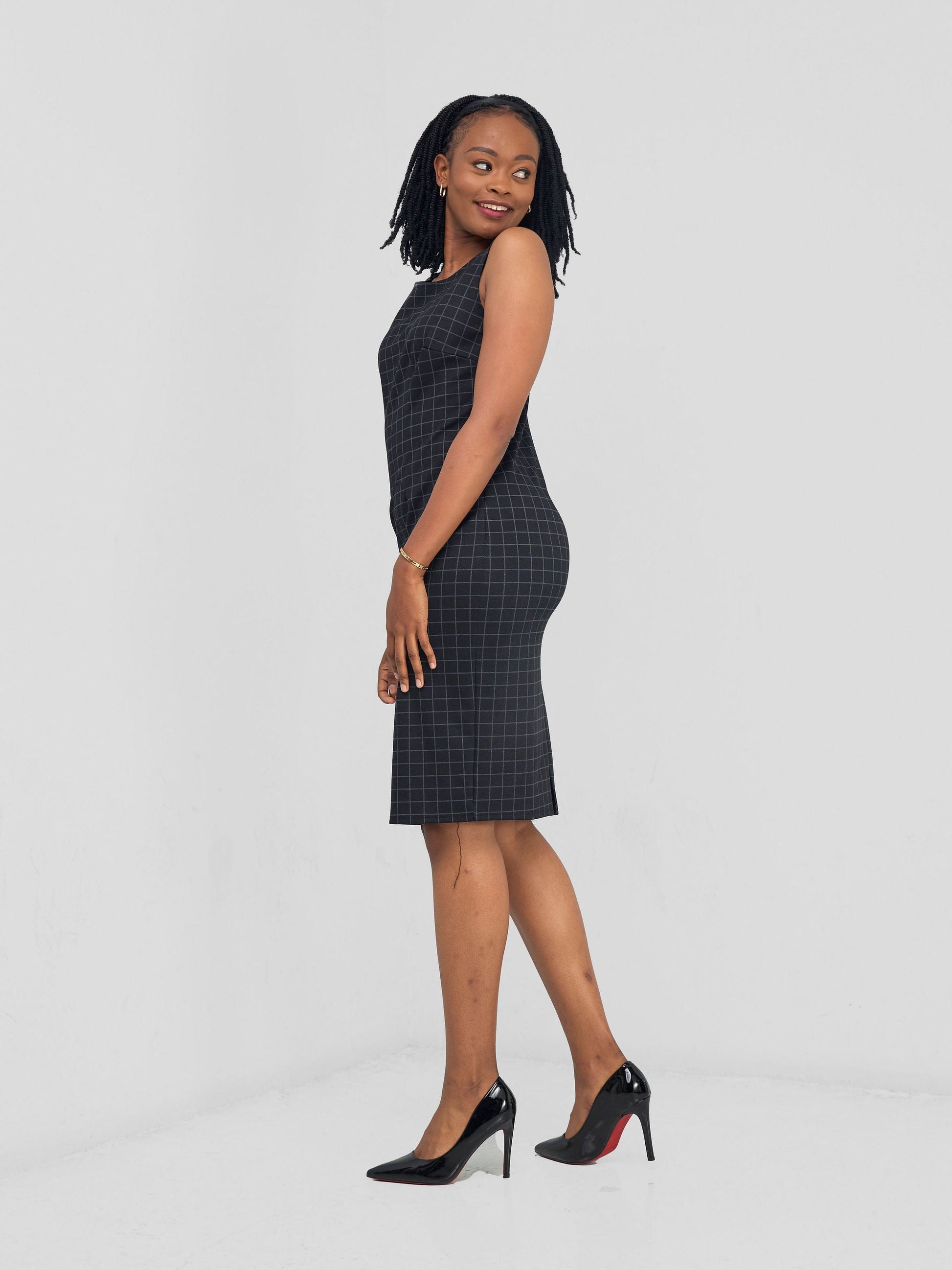 Vivo Paji Boat Neck Sheath Dress - Black Checkered Print