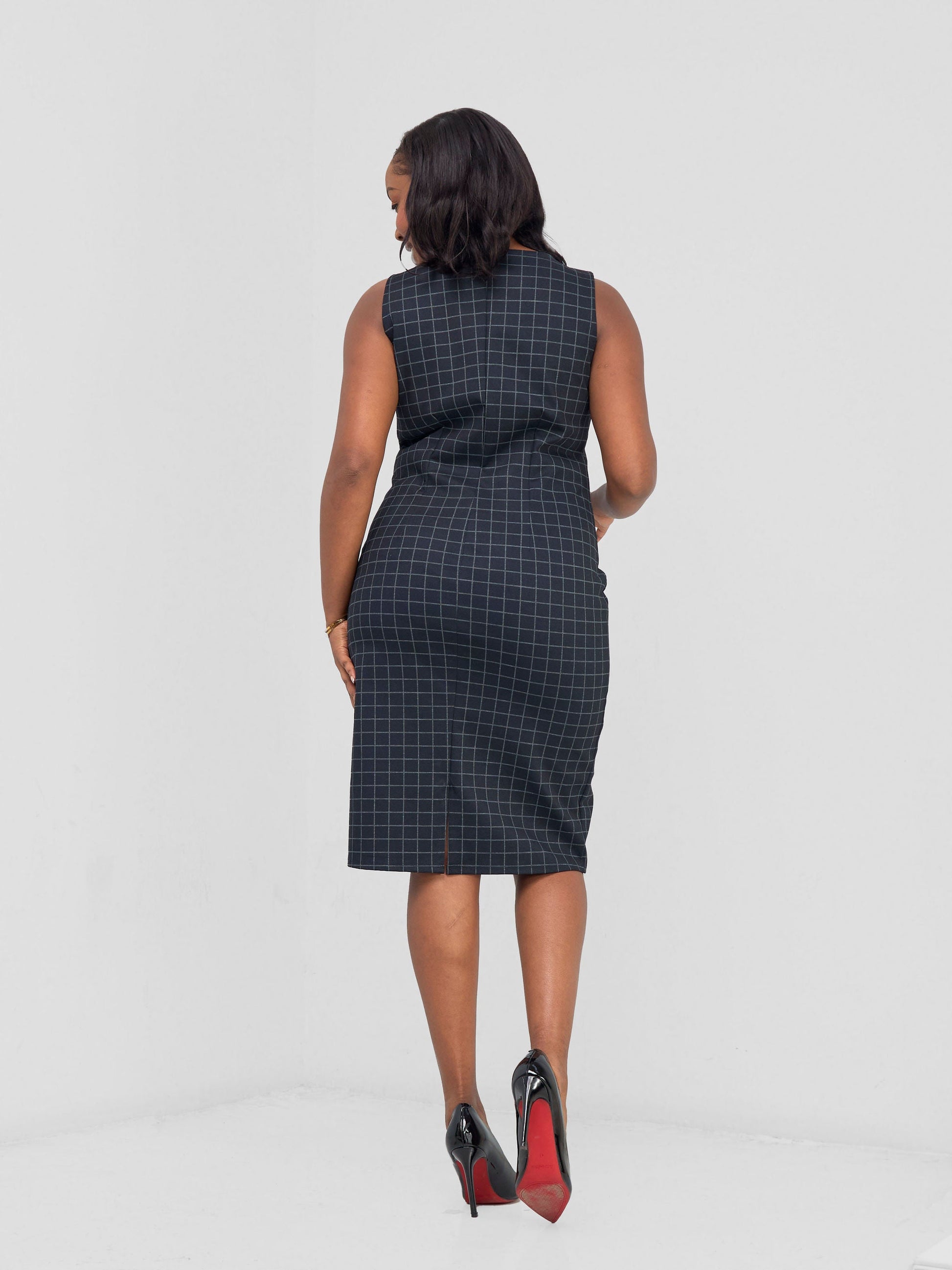 Vivo Paji Boat Neck Sheath Dress - Navy Checkered Print