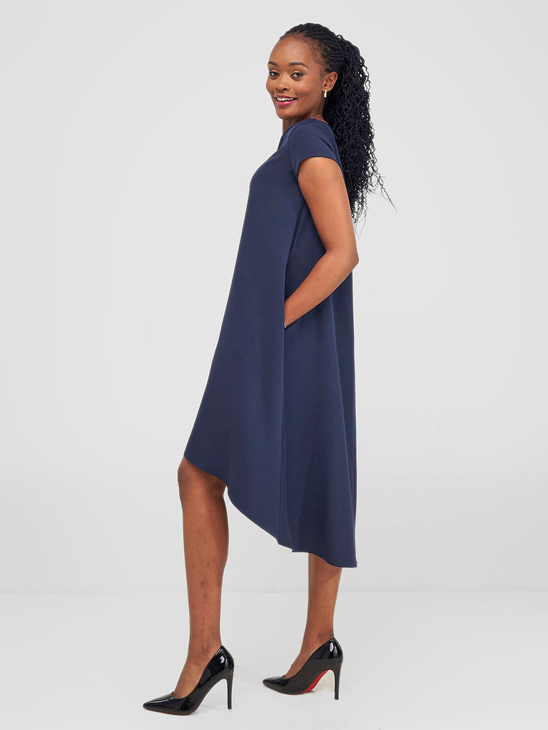 Vivo Pendo Cap Sleeve High Low Tent Dress - Navy Blue