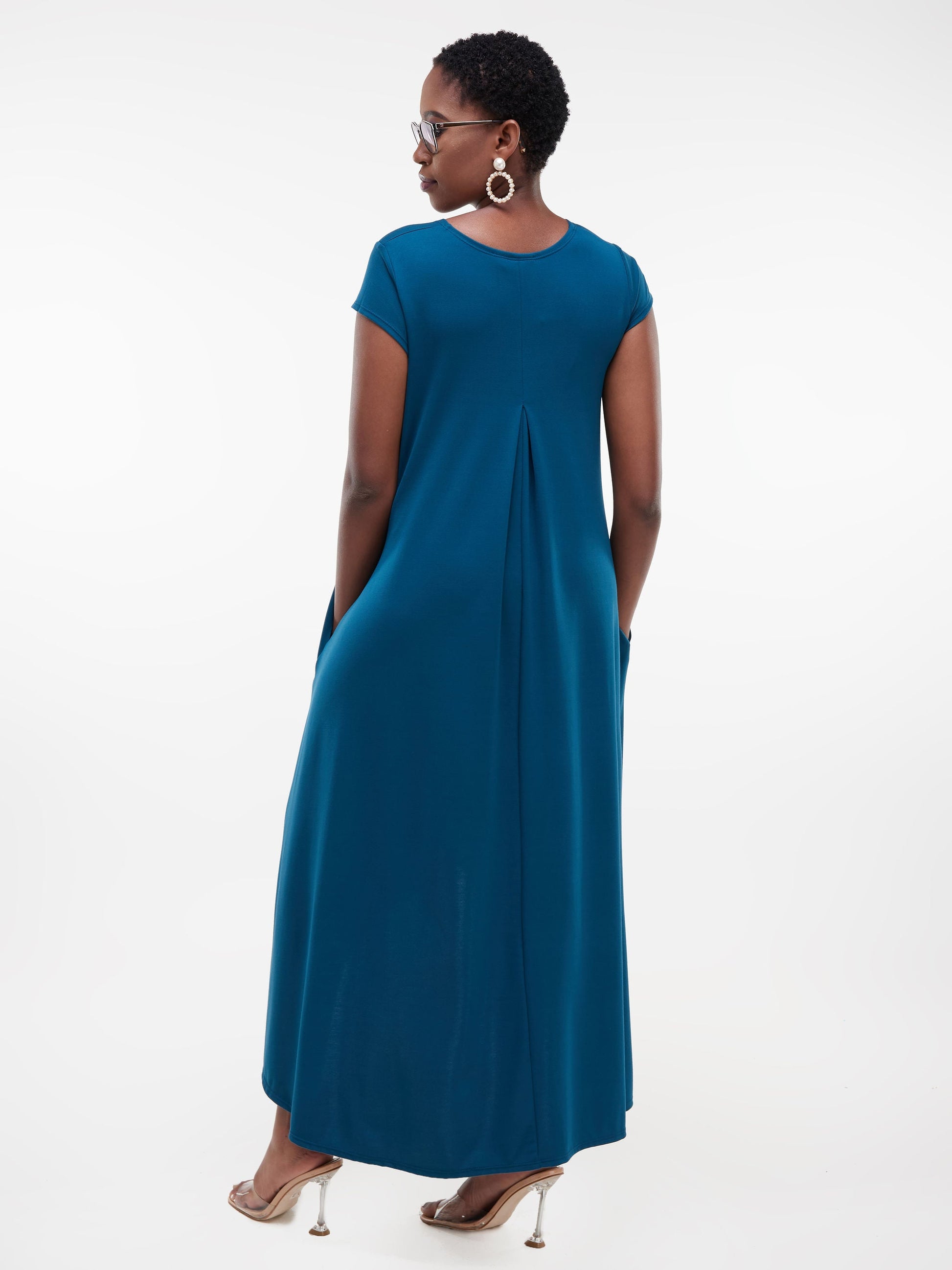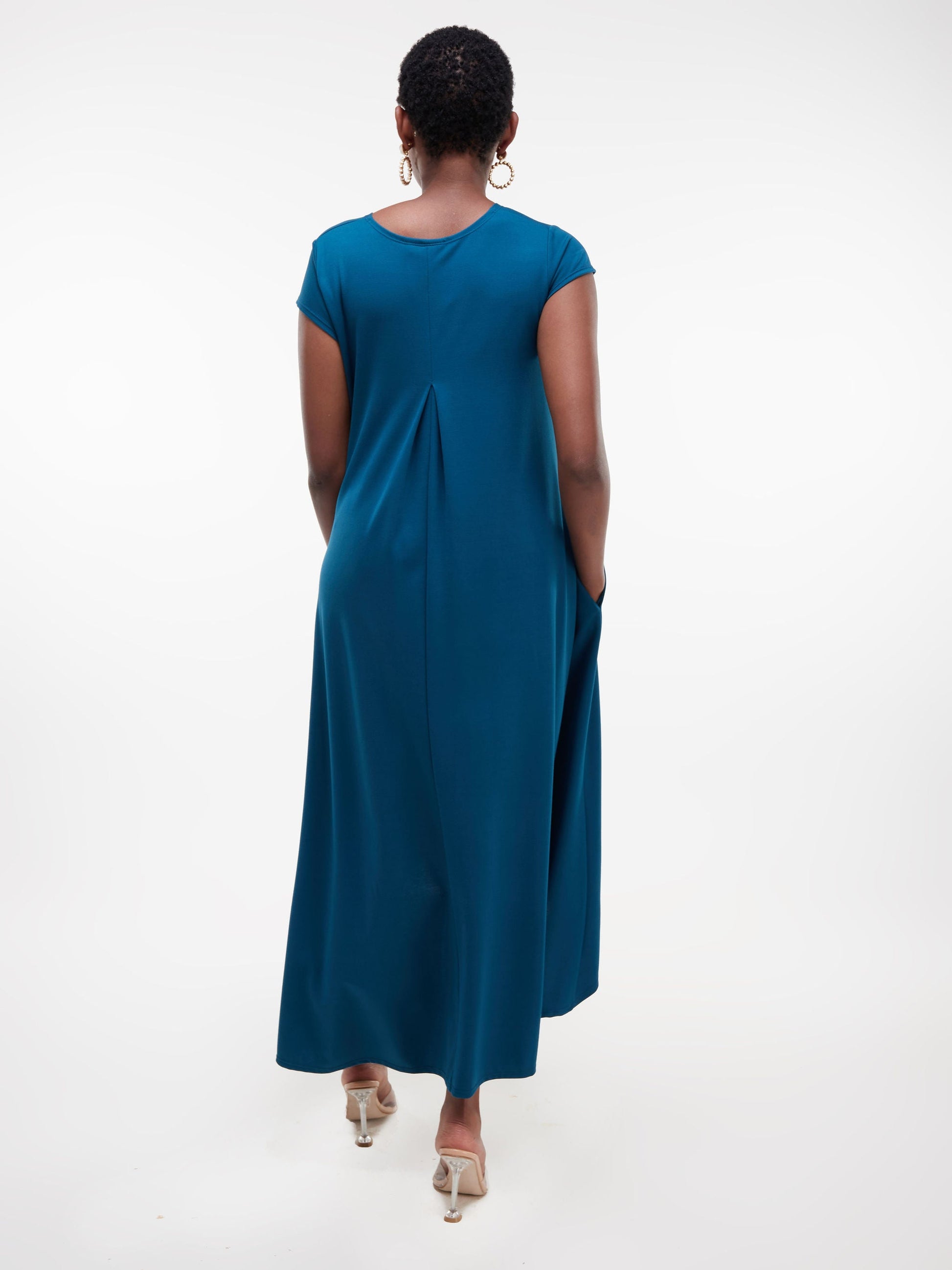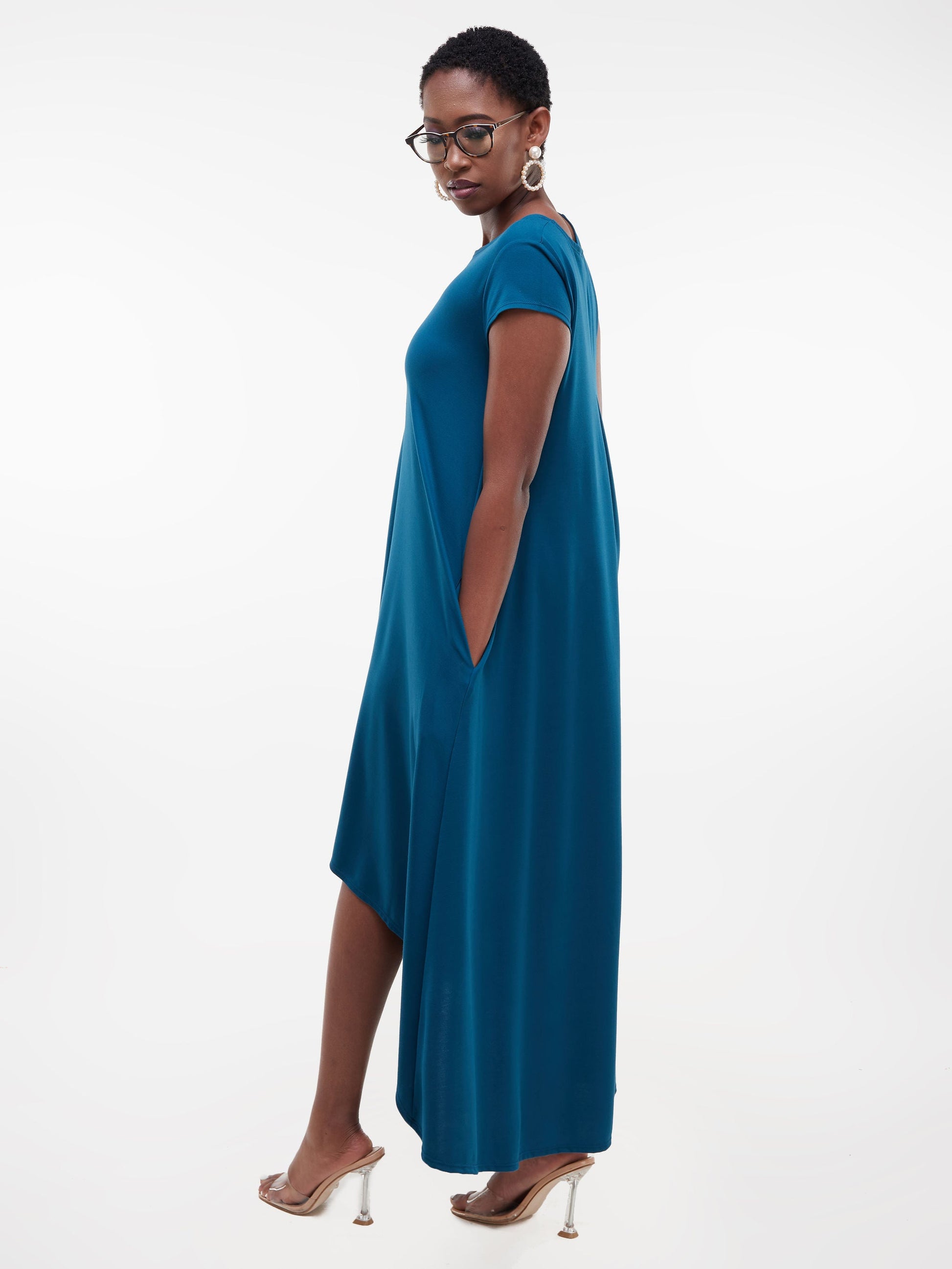 Vivo Ponte Back Pleat High Low Dress - Teal