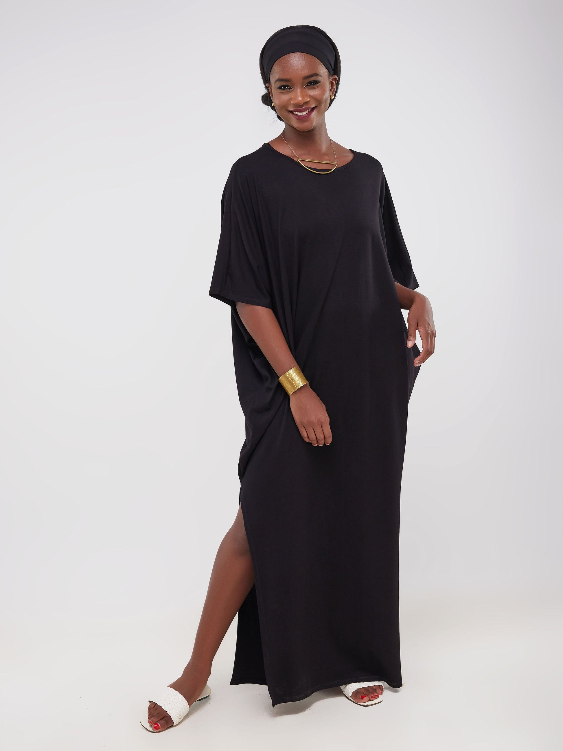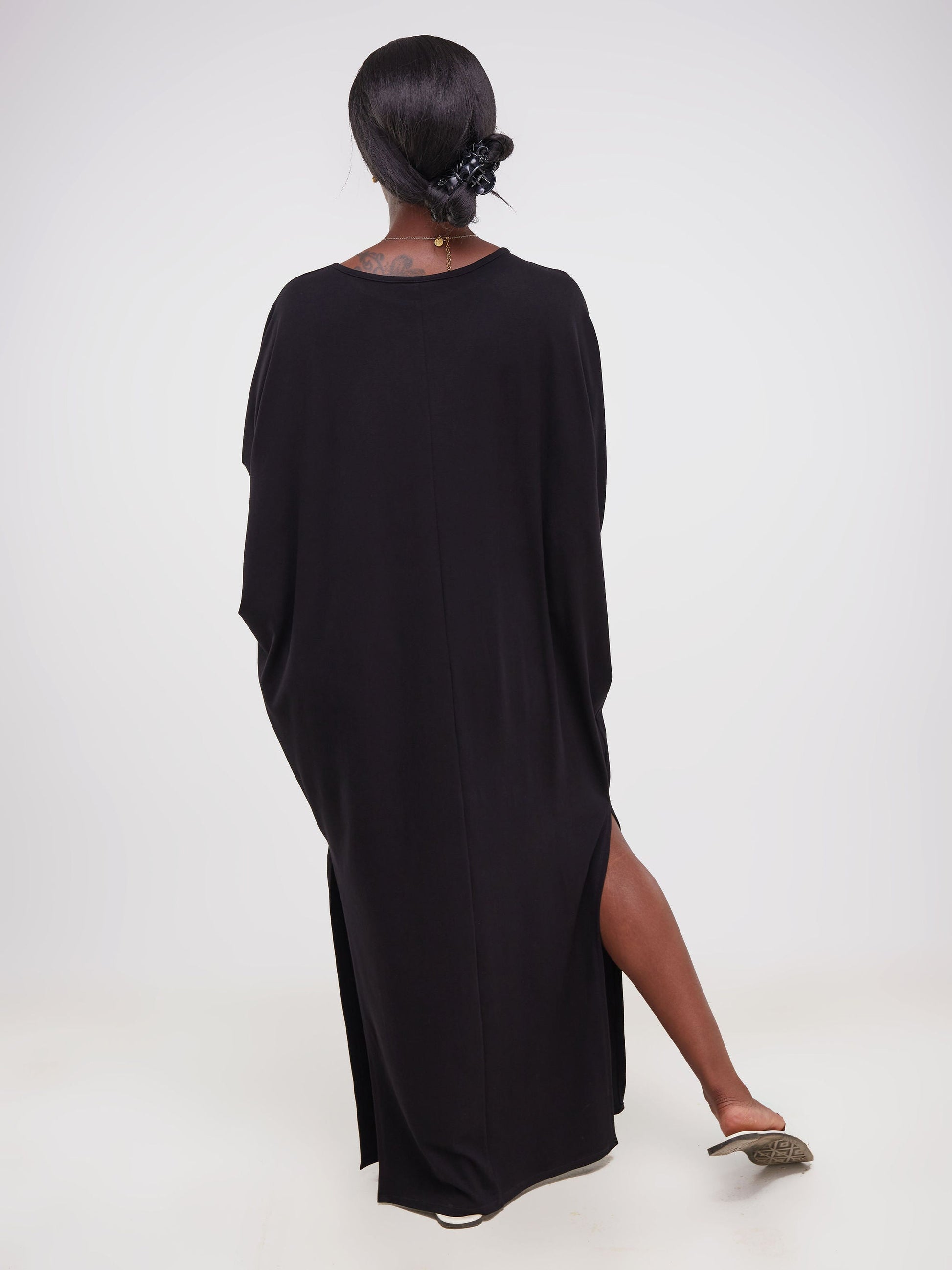 Vivo Ruwa Side Slit Dolman Maxi Dress - Black