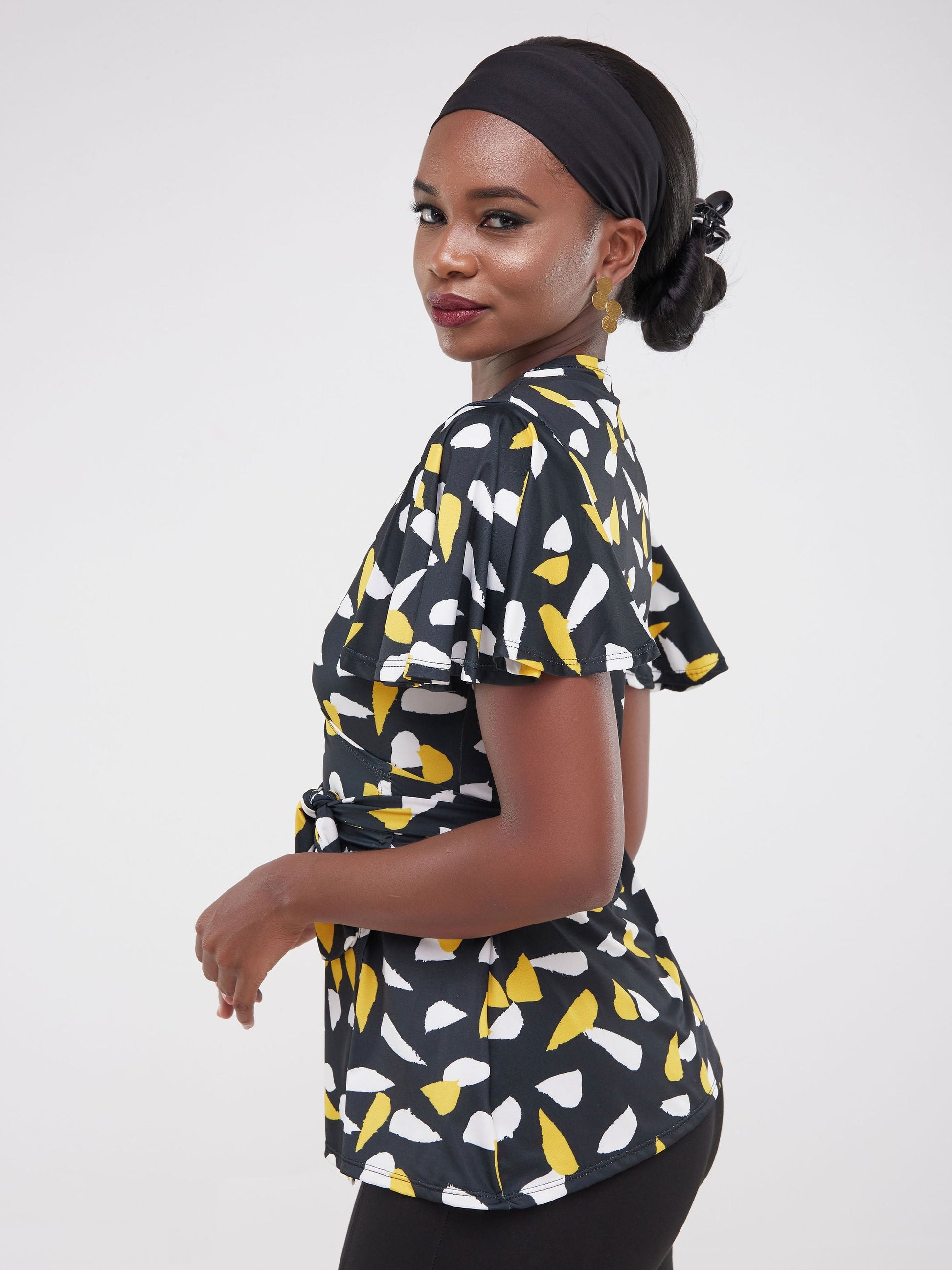 Vivo Ruwa Wrap Top - Black / Yellow Print