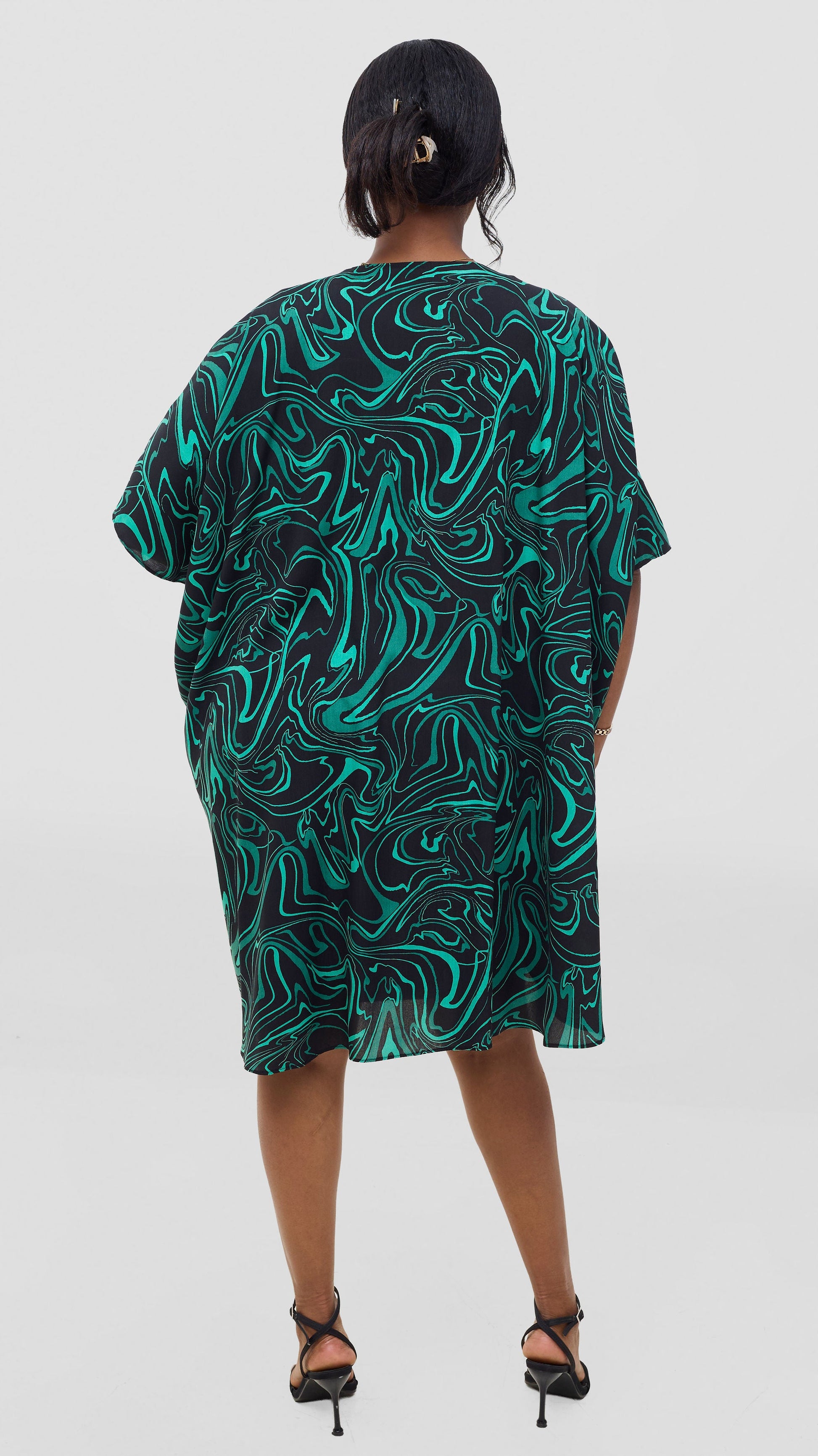 Make a statement with the Vivo Samira Wide Kimono, featuring a captivating black and green print. This relaxed-fit piece is made from stretch romario fabric that moves with you, offering comfort and flexibility throughout your day. Wear it solo over your favorite outfit or match it with the Samira pants for a coordinated ensemble. The wide silhouette creates an effortless, flowing look that works for any occasion—from casual coffee runs to evening gatherings. Versatile, comfortable, and undeniably stylish, this kimono is the perfect layering essential for your modern wardrobe.