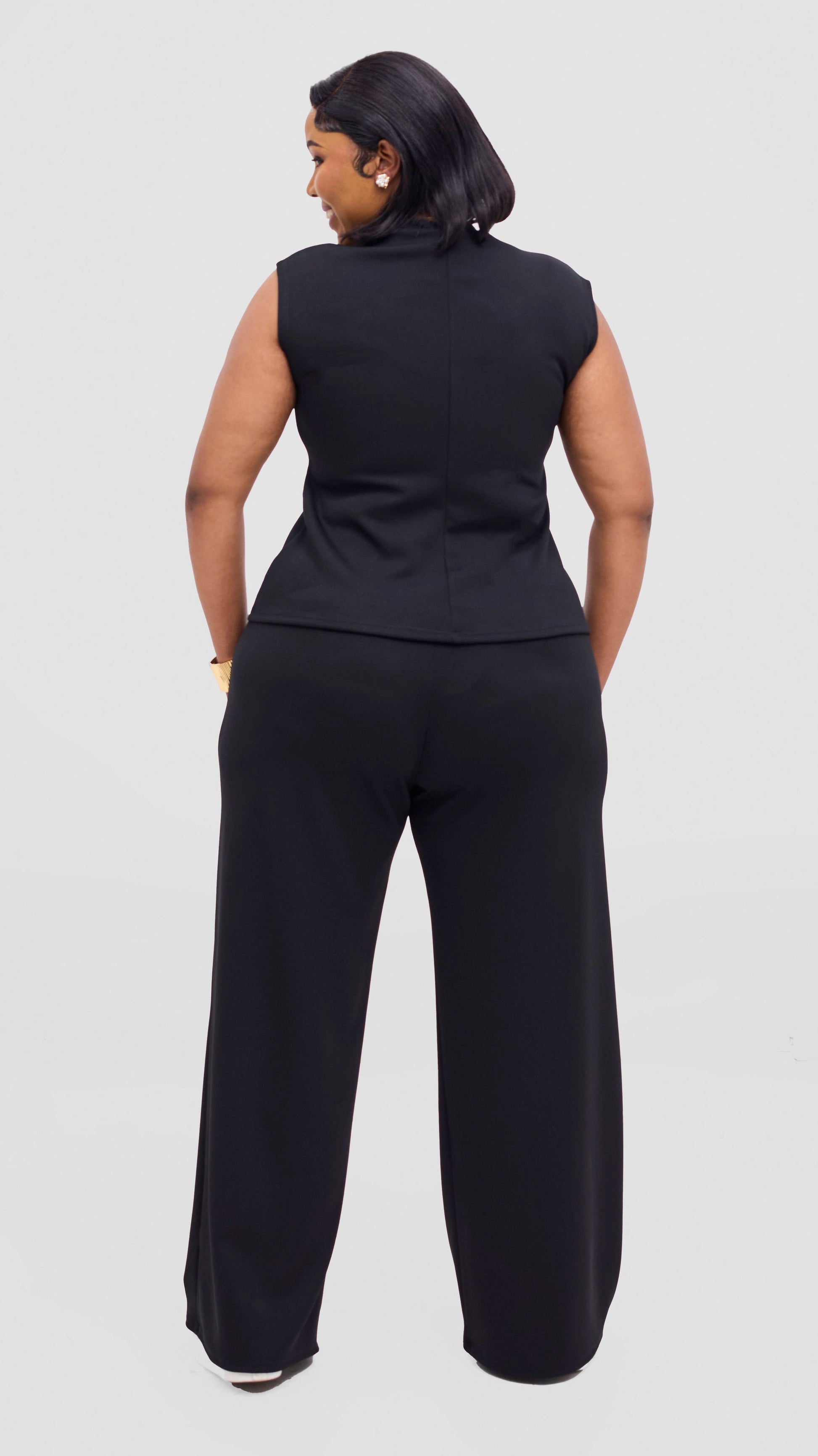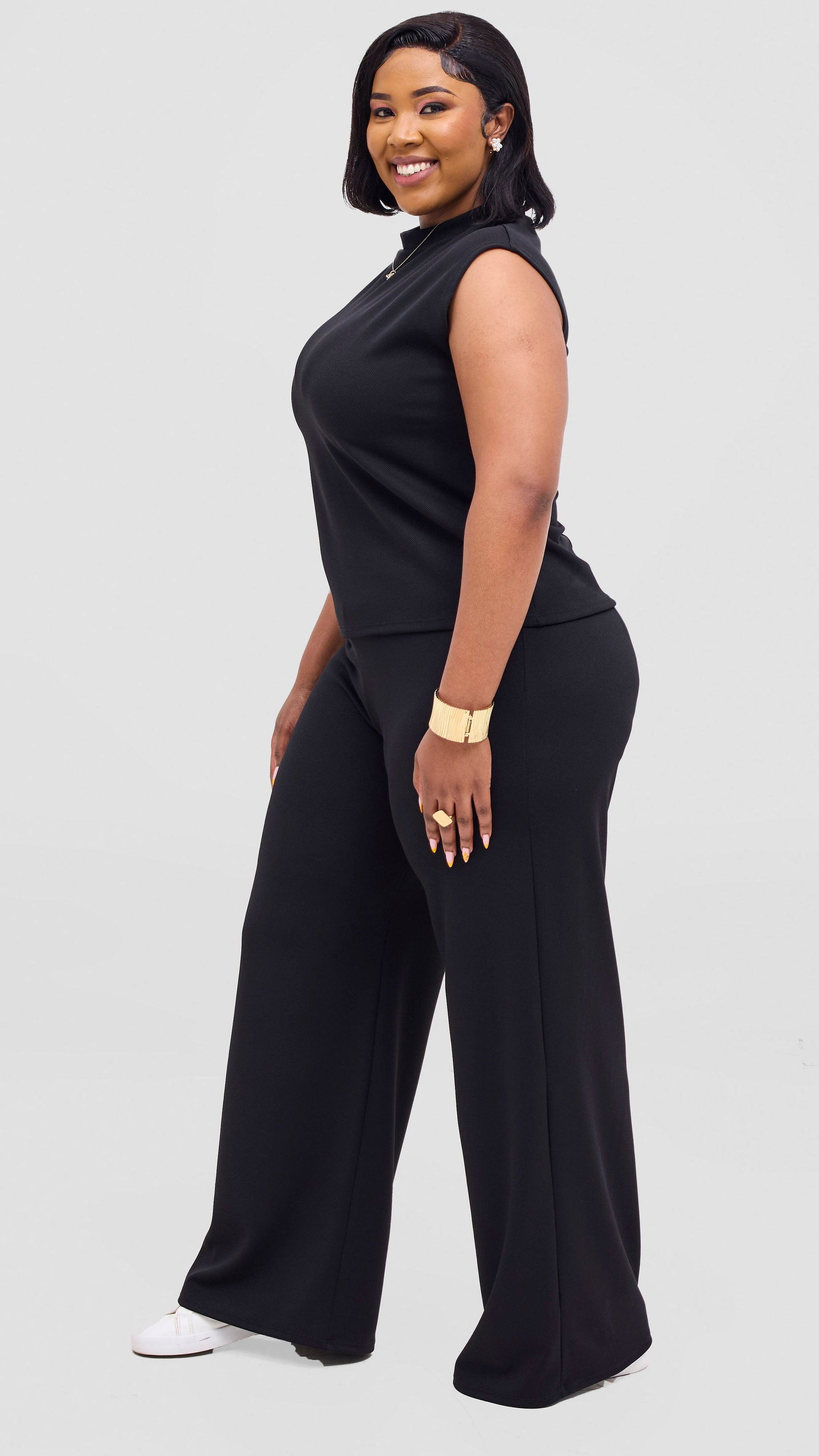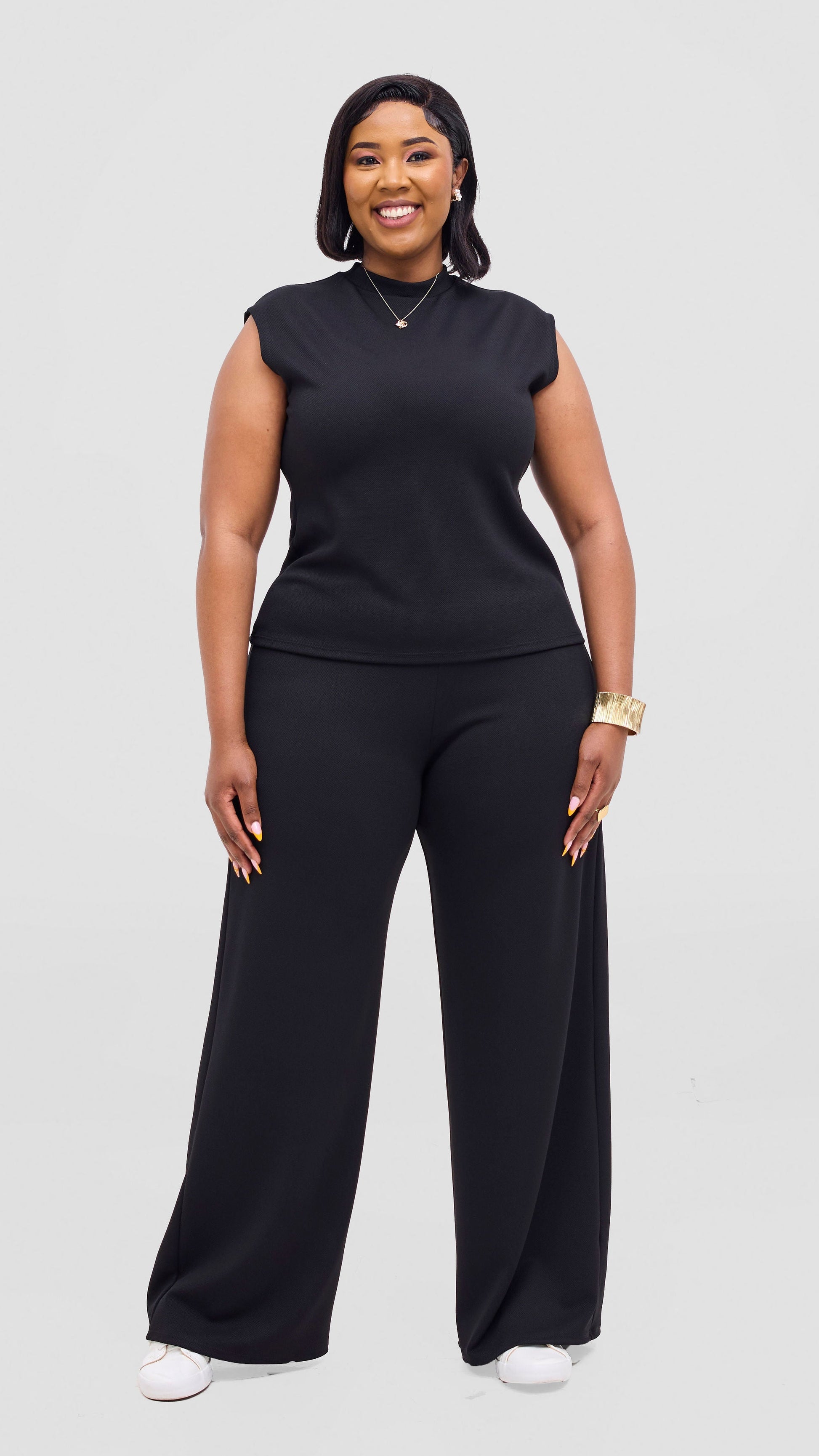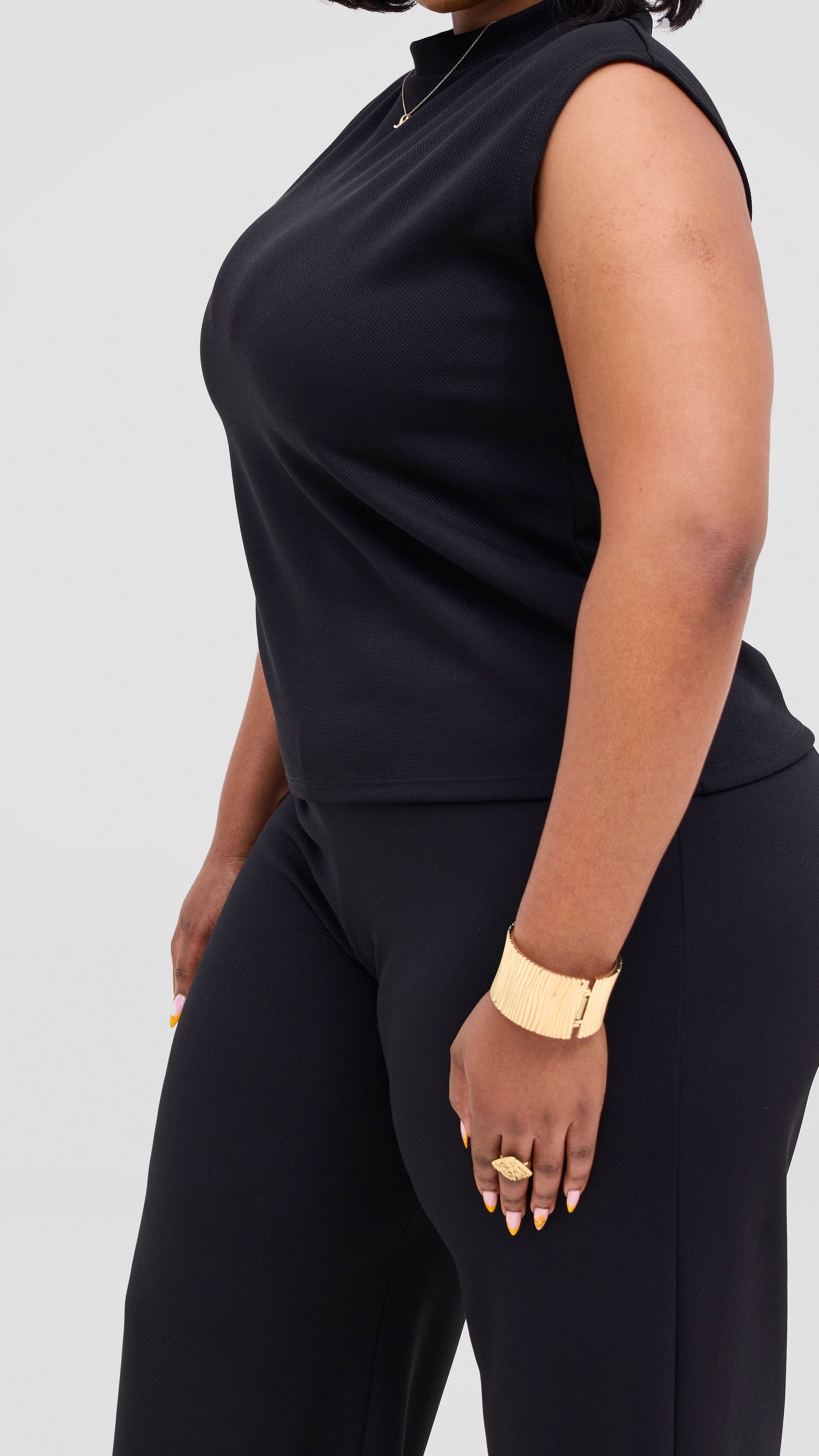 The Vivo Selah Mock Neck Top in Black offers a relaxed yet refined silhouette. Wear it with matching pants for a luxurious coordinated look or pair it with other pieces to effortlessly enhance your wardrobe. Its versatile design ensures sophistication and comfort for any occasion.
