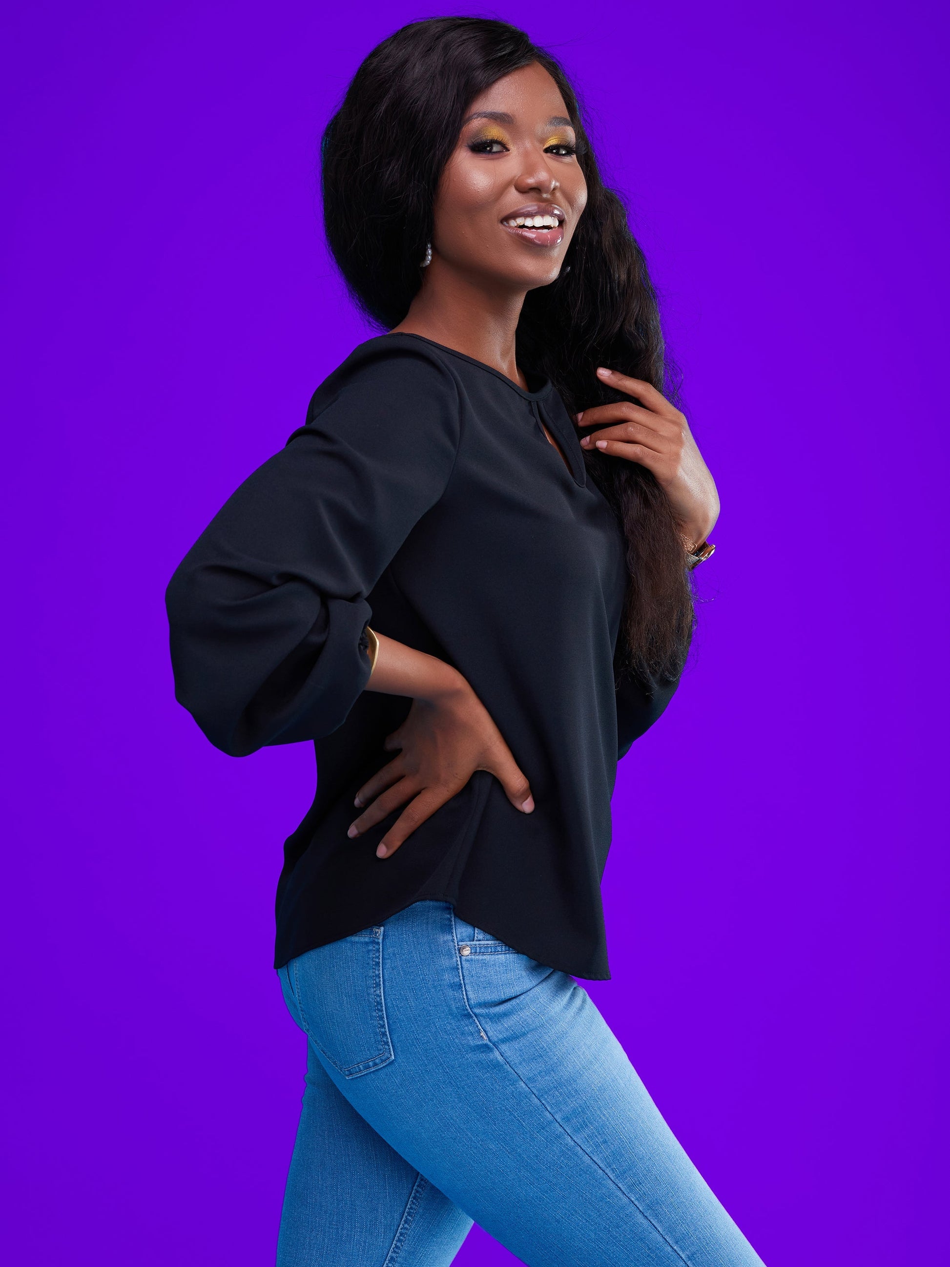 Vivo Sierra Bishop Sleeve Top - Black