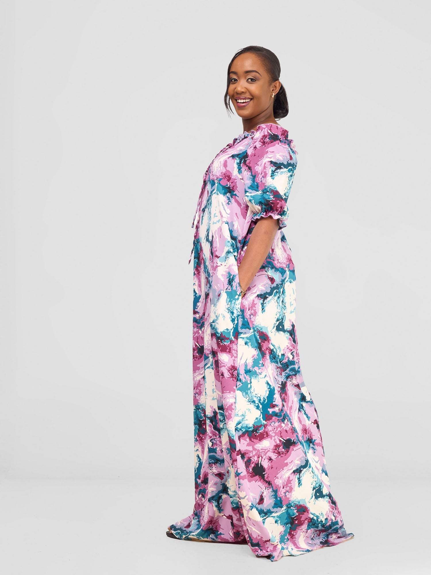 Vivo Situ Off-shoulder Tie Maxi Dress - Teal / Pink Print