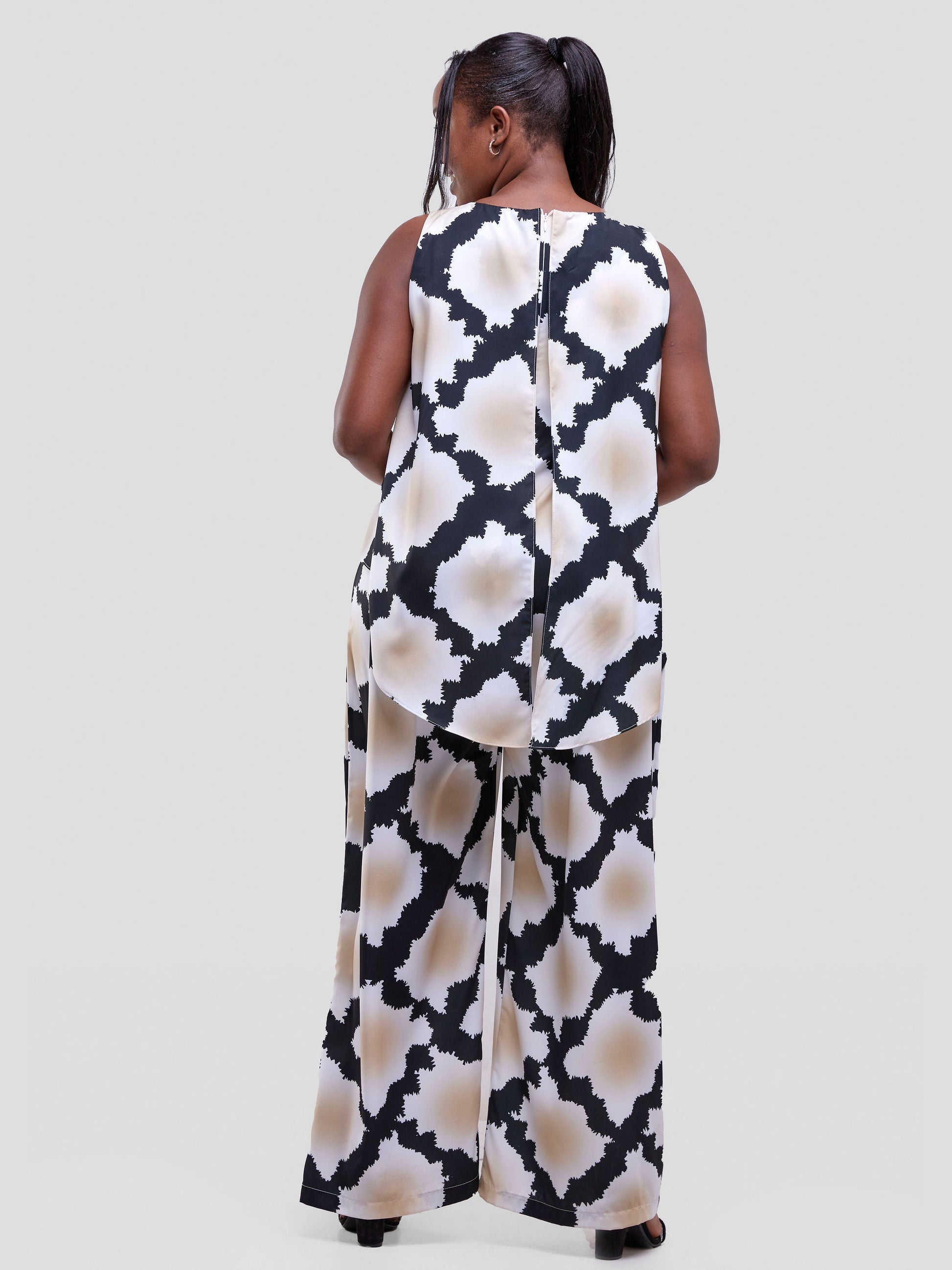 Vivo Soleil Sleeveless Drape Jumpsuit - Black / Taupe Almasi Print
