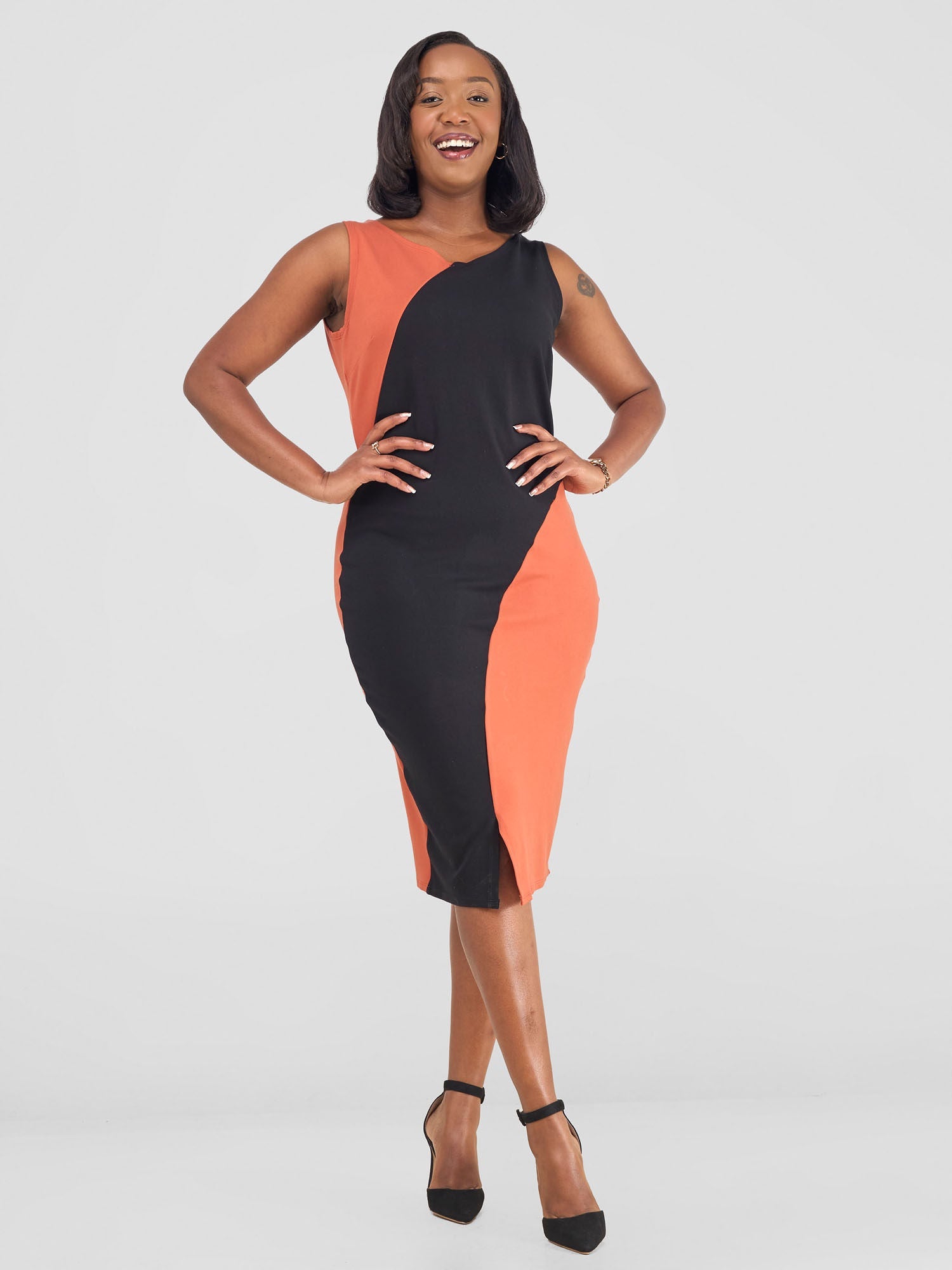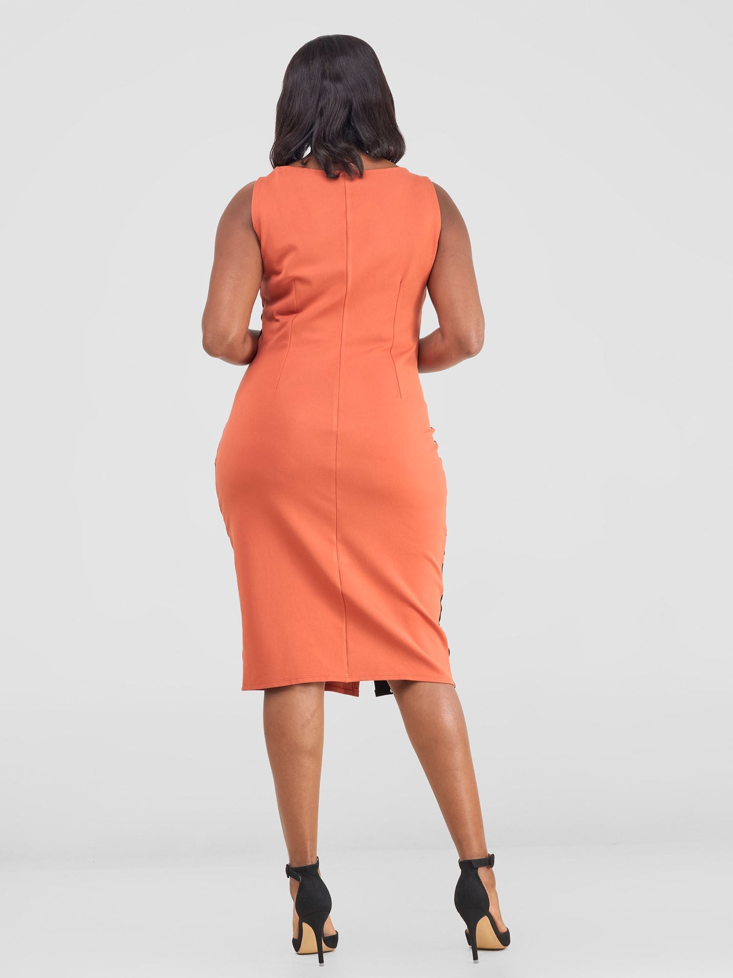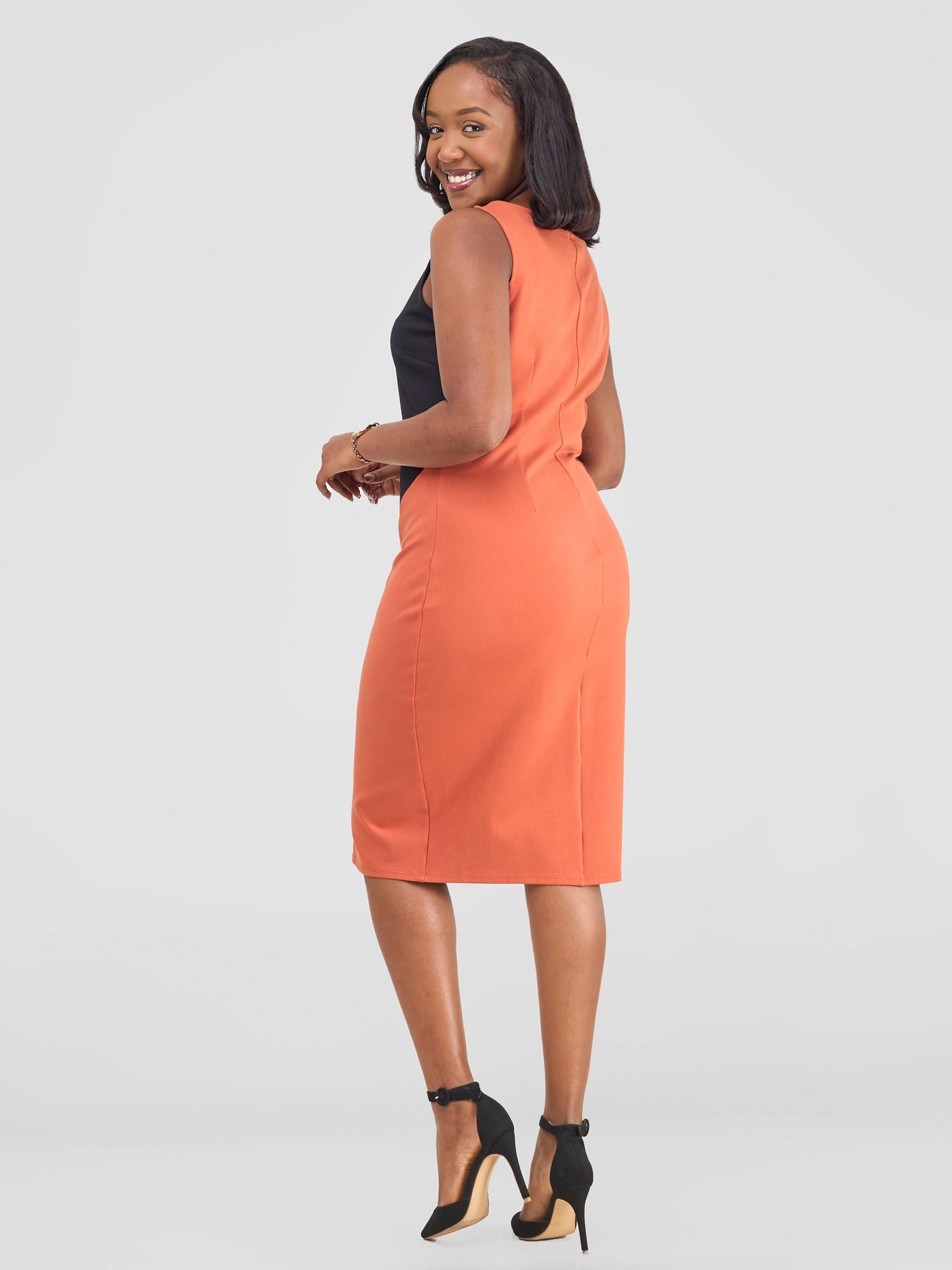 Vivo Tatari Panelled Sheath Dress - Rust / Black