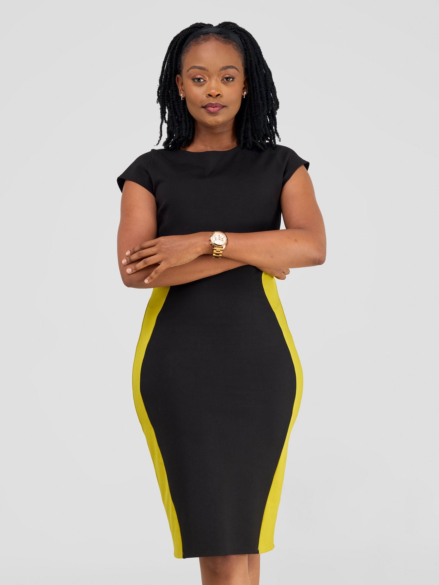 Vivo Tatari Side Panelled Sheath Dress - Black / Olive
