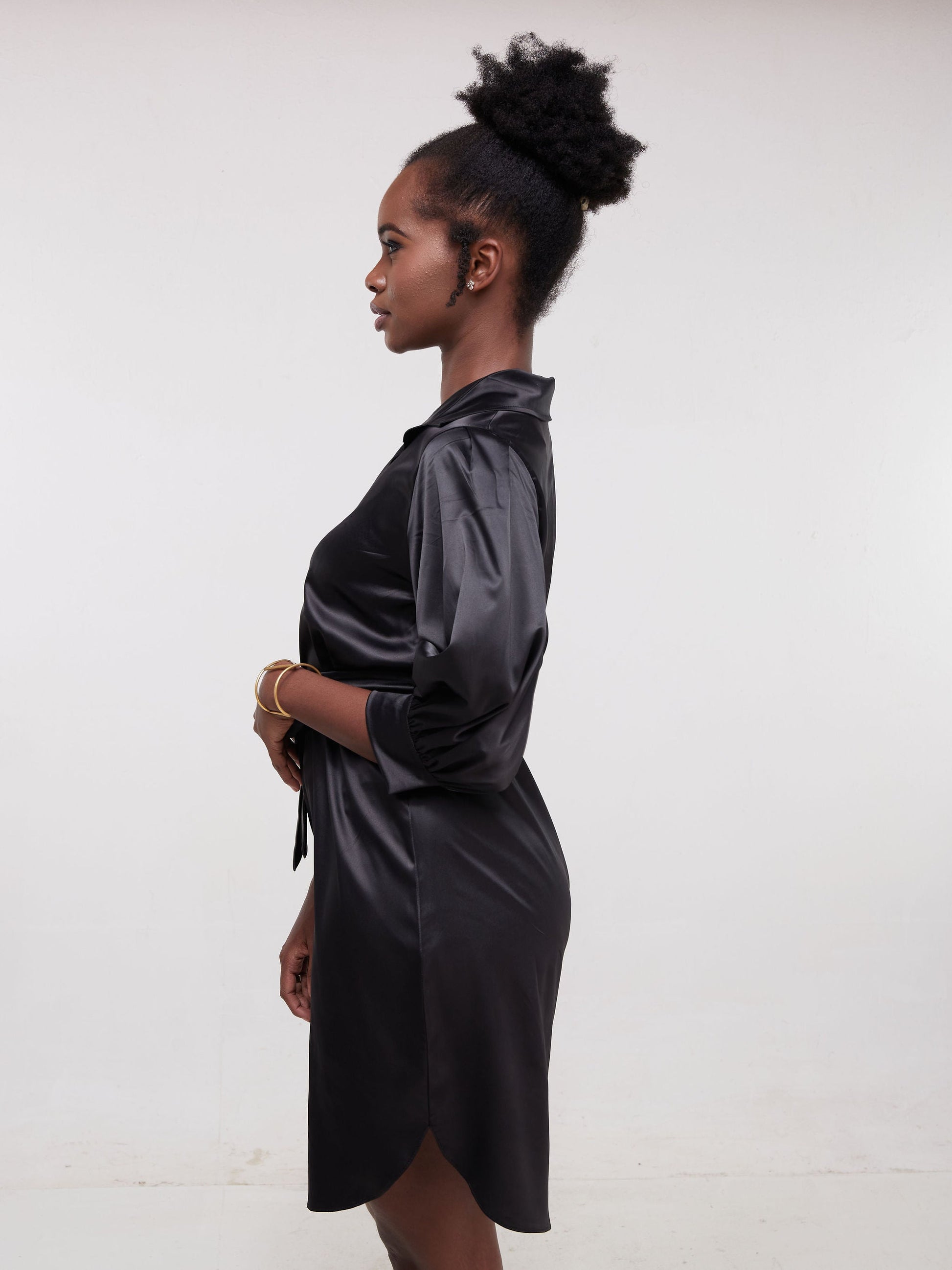 Vivo Thando 3/4 Bishop Sleeve Shirt Dress - Black