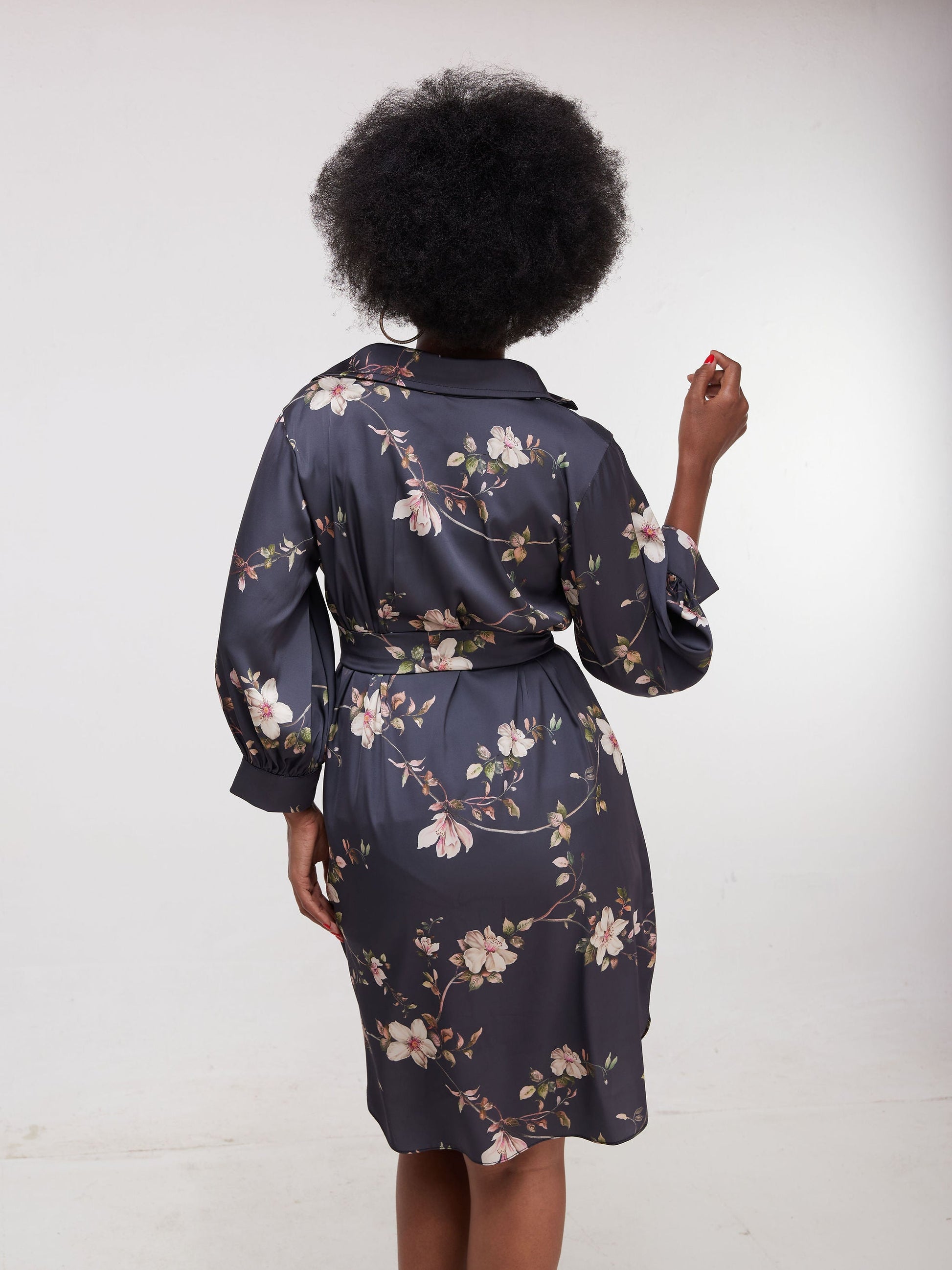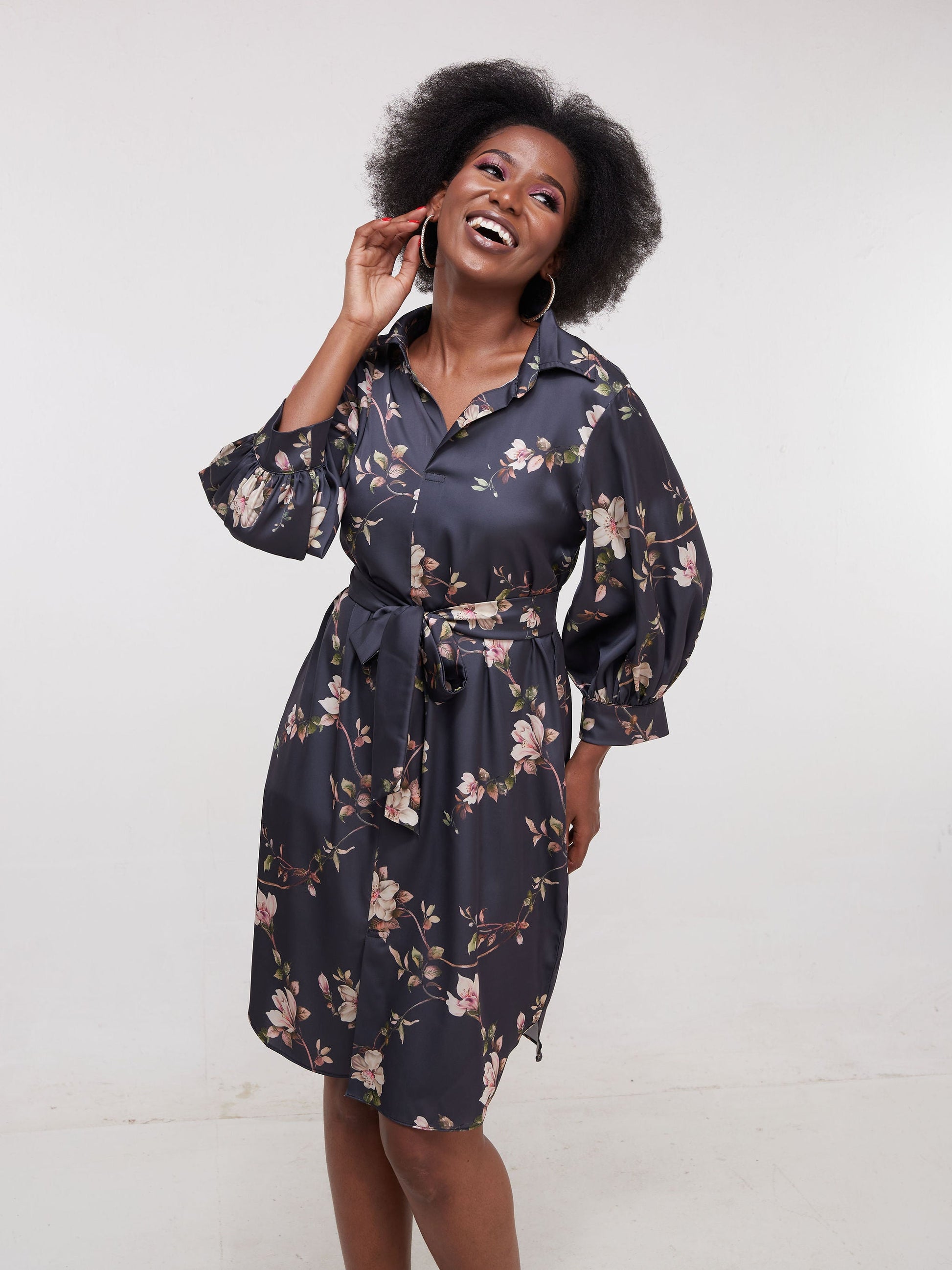 Vivo Thando 3/4 Bishop Sleeve Shirt Dress - Black Print