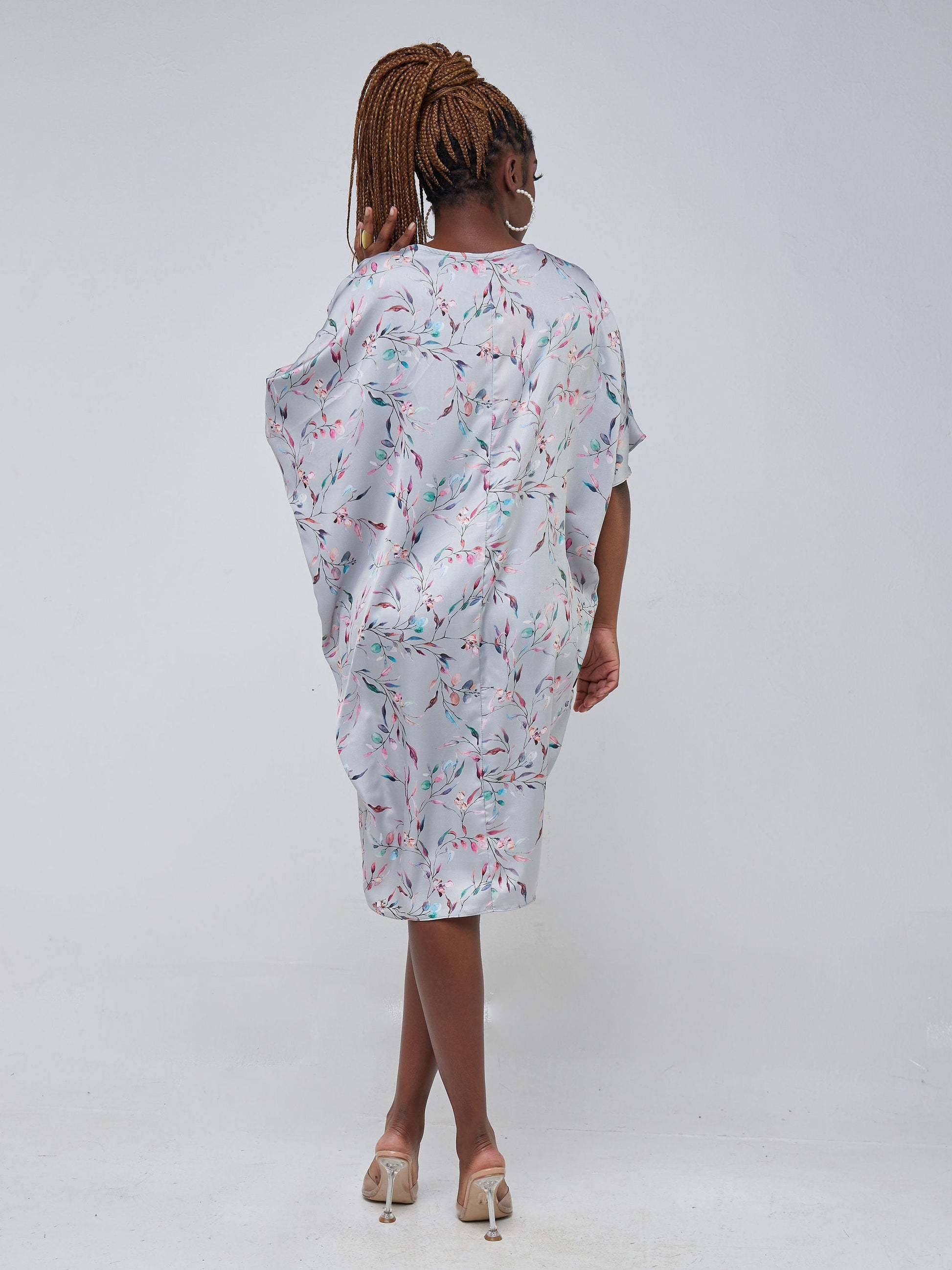 Vivo Thando Dolman Knee Length Dress - Grey / Orange Floral Print
