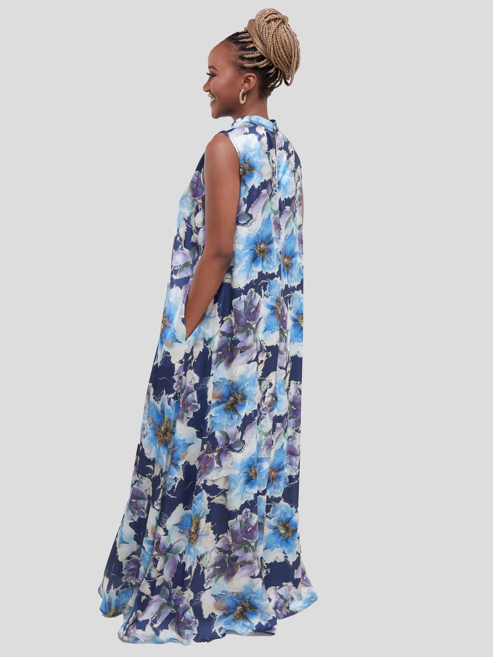Vivo Thando Mock Neck Maxi Dress - Floral Blue