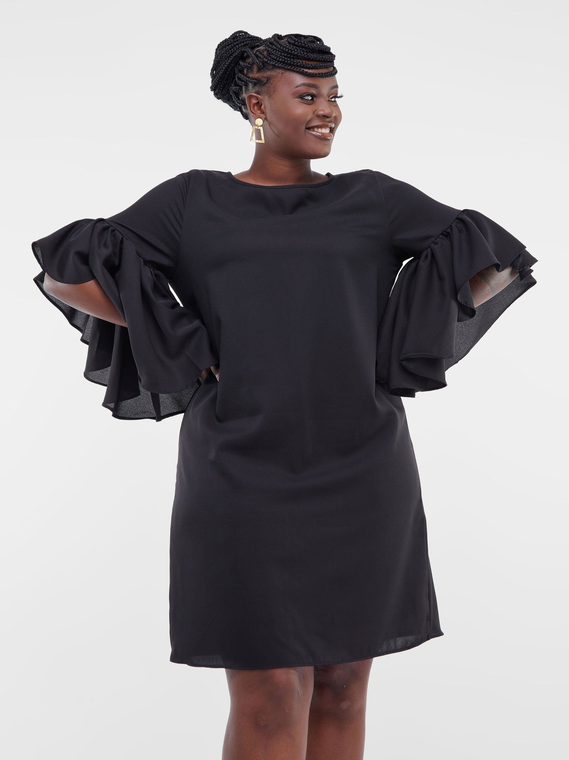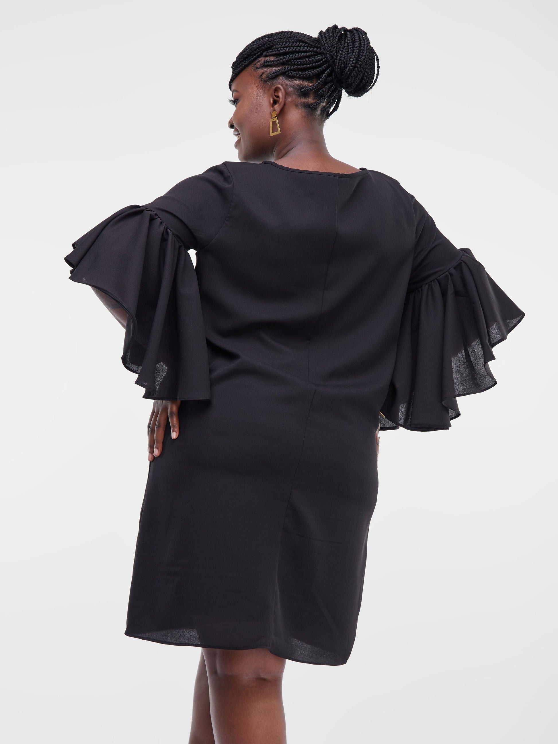 Vivo Thando Tent Flounce Sleeve Knee Length Dress - Black
