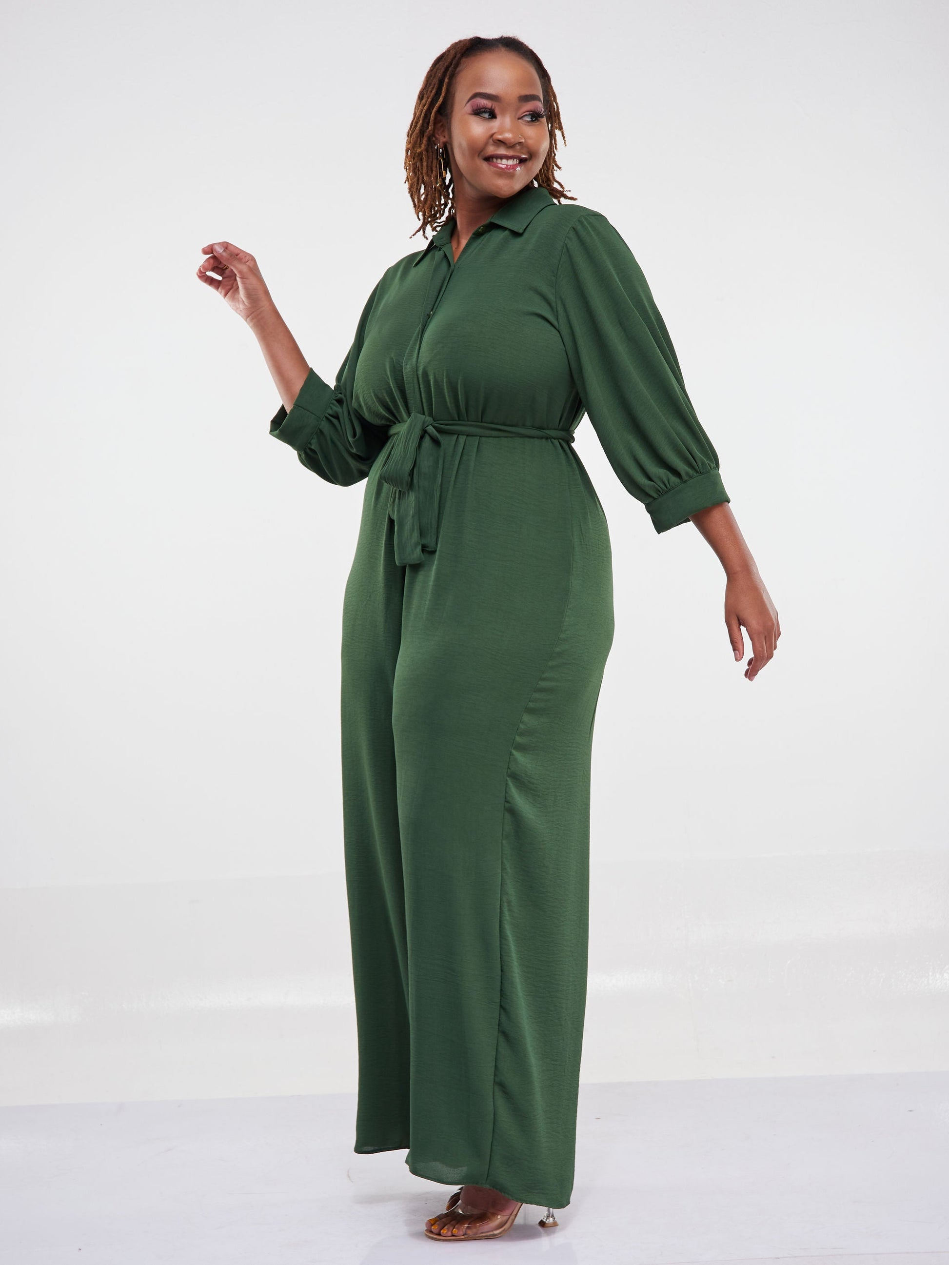 Vivo Tunu Long Sleeve Collar Jumpsuit - Green