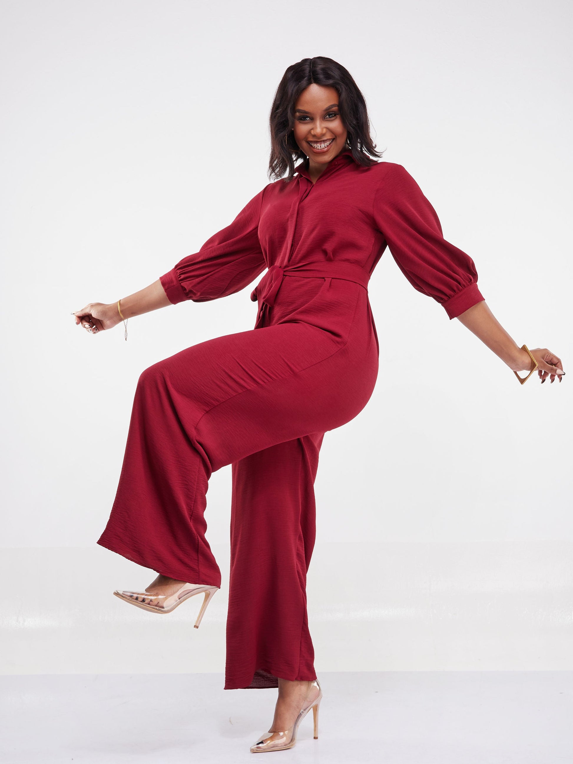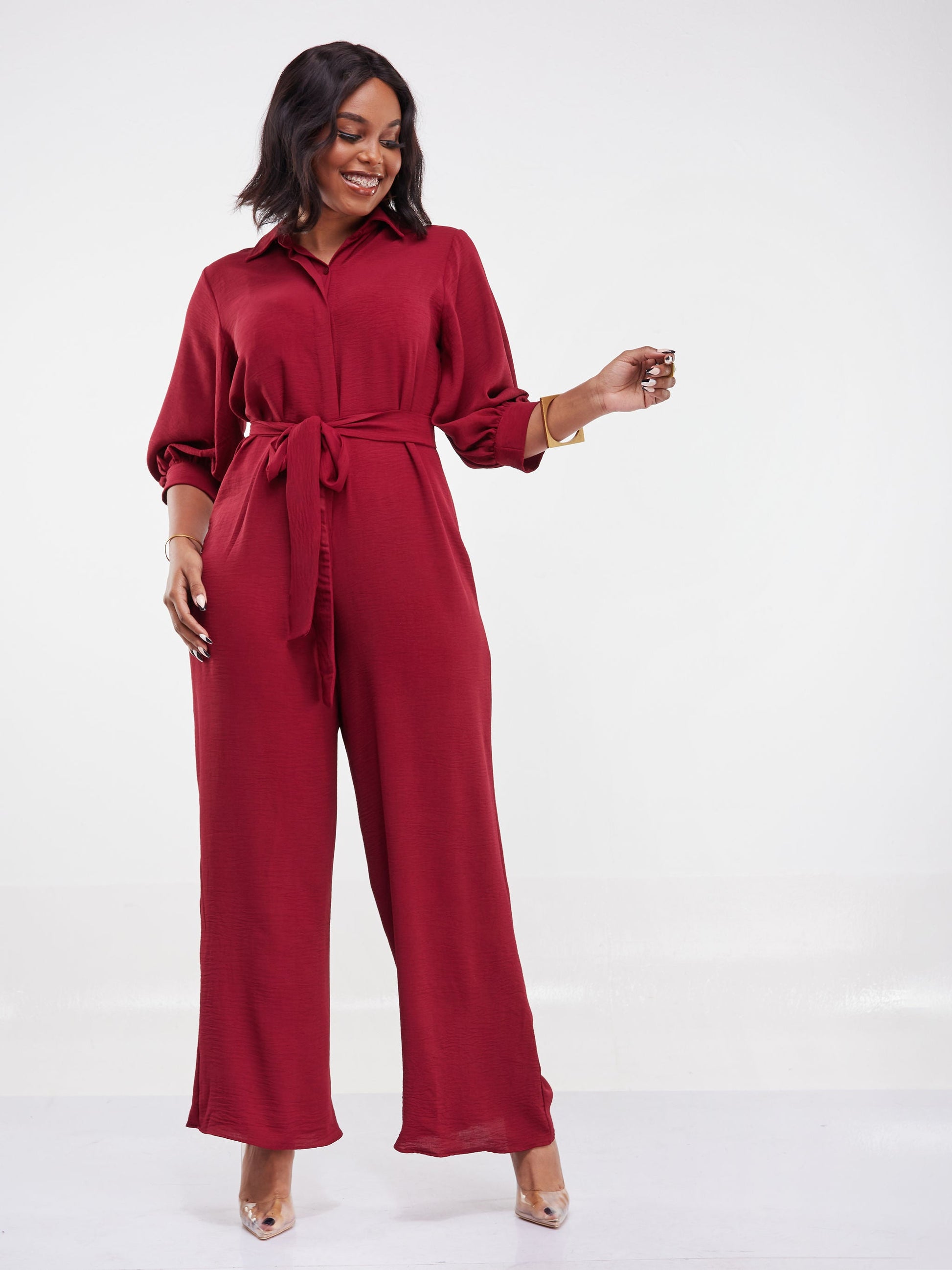 Vivo Tunu Long Sleeve Collar Jumpsuit - Maroon